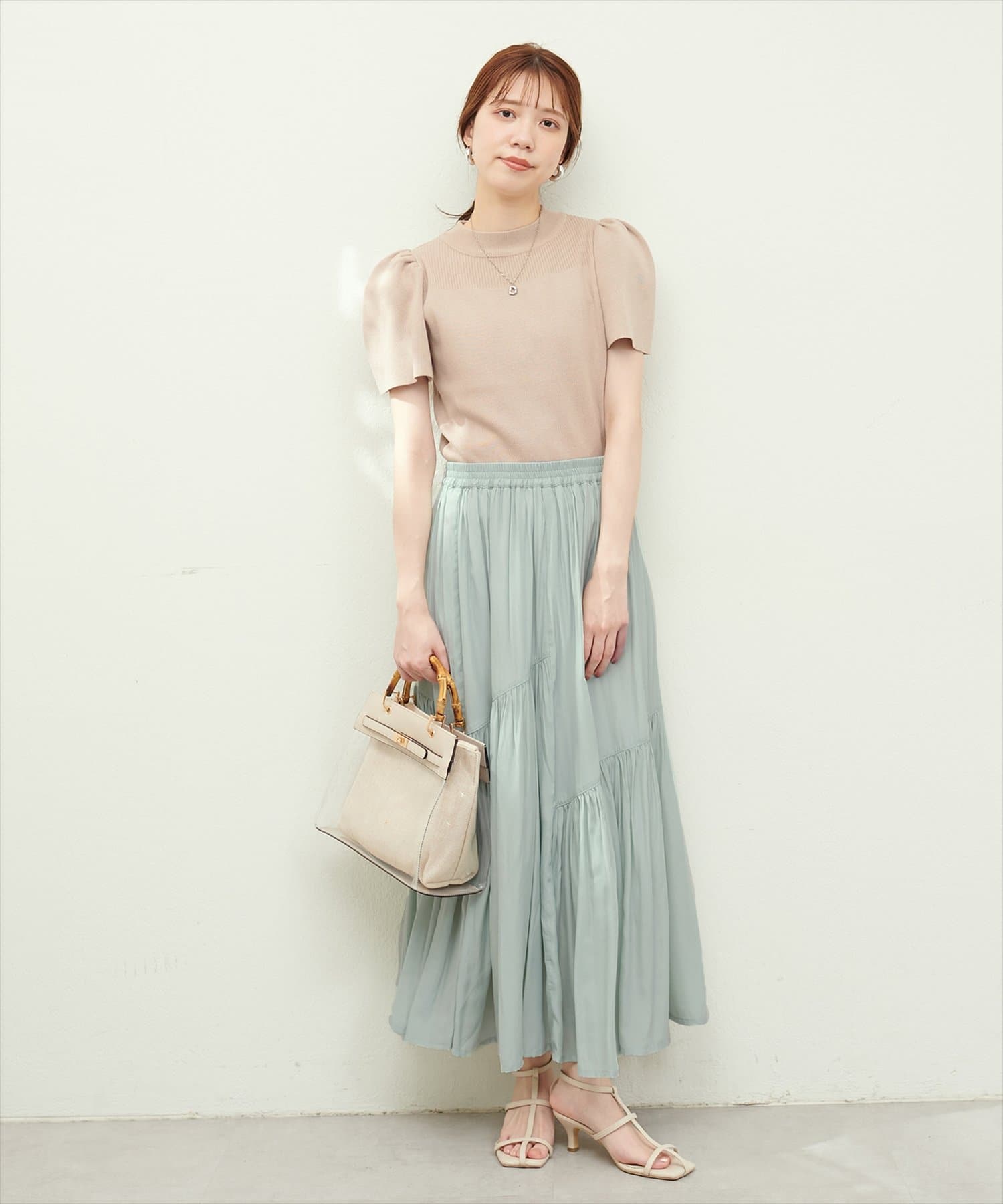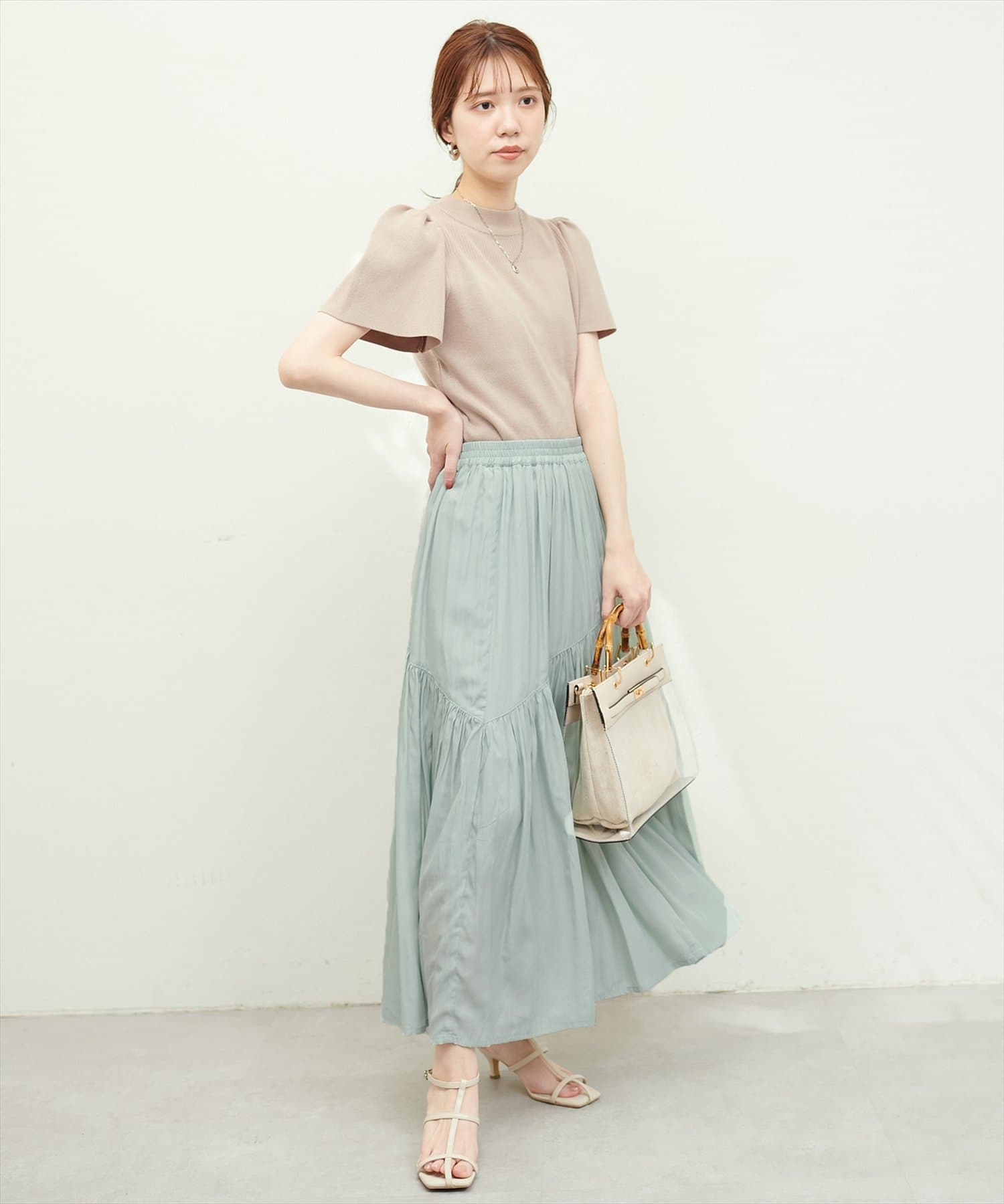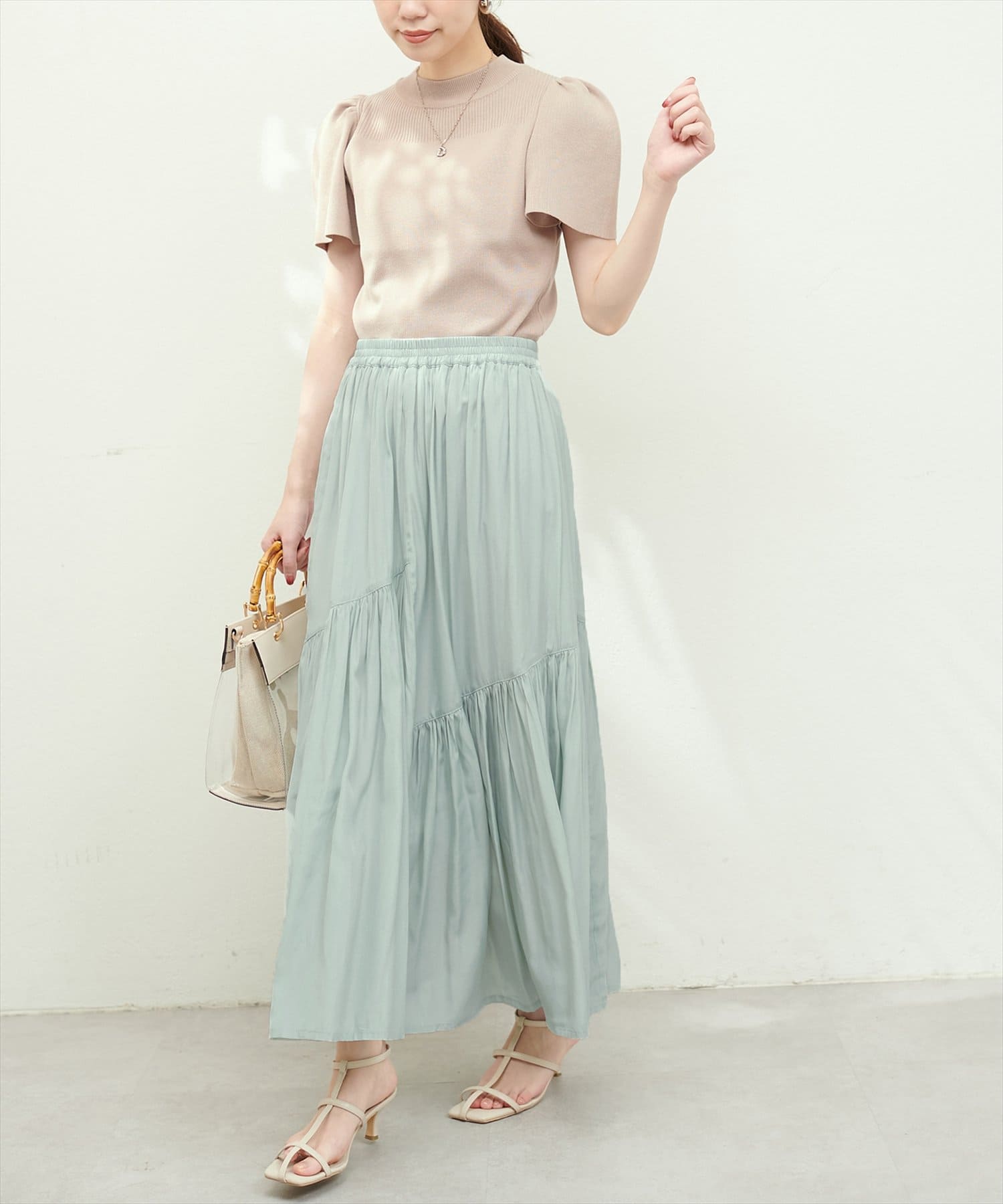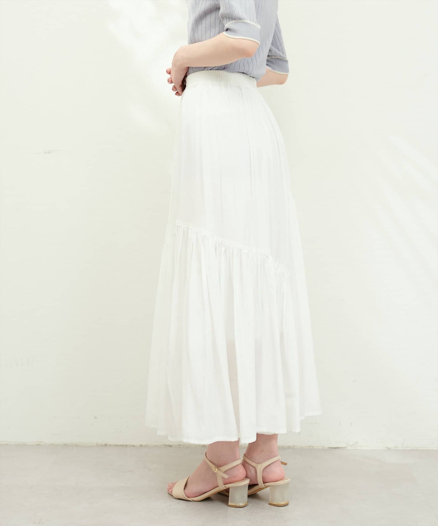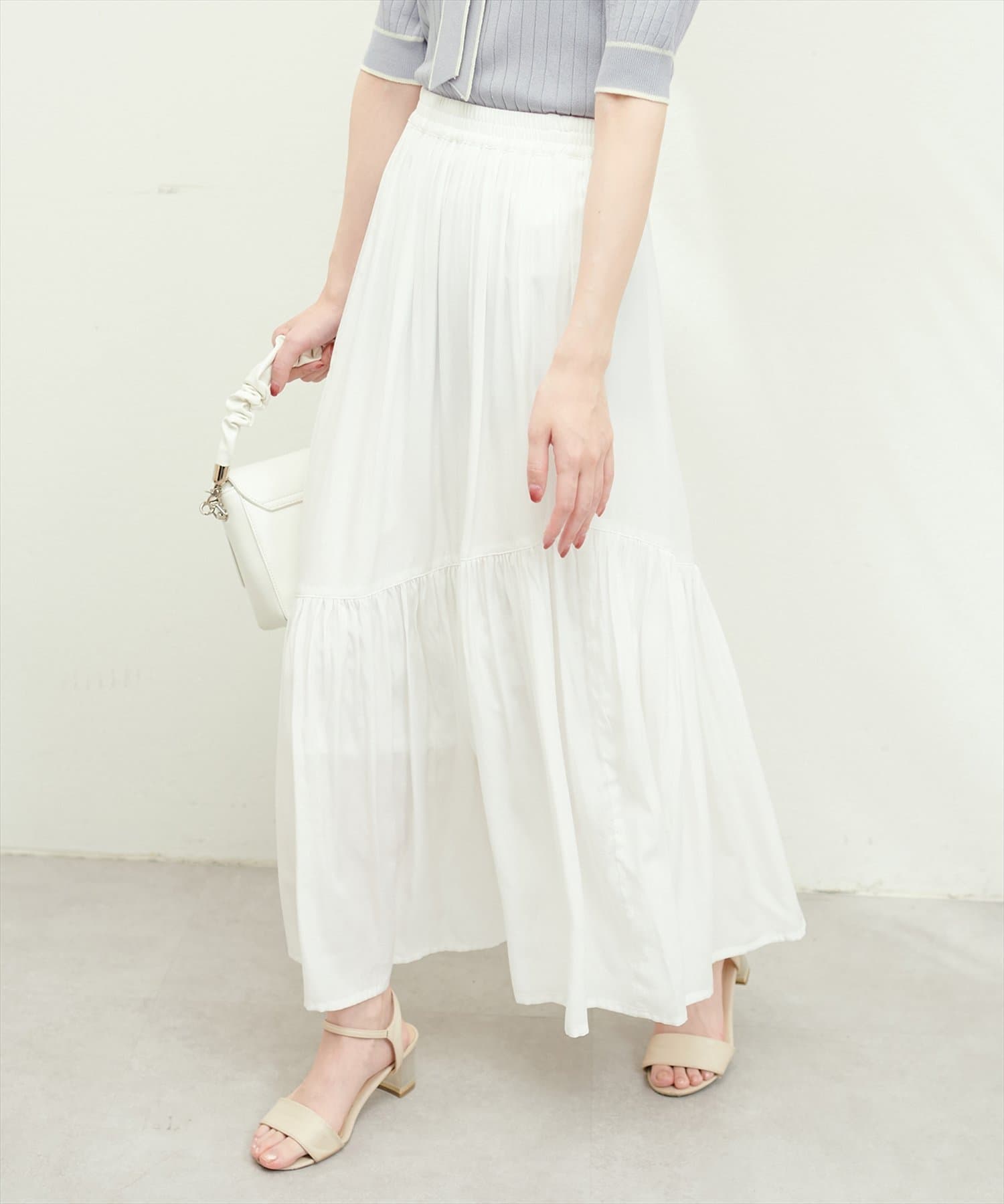 滑らかで柔らかい生地と艶やかな表面感のスカート。