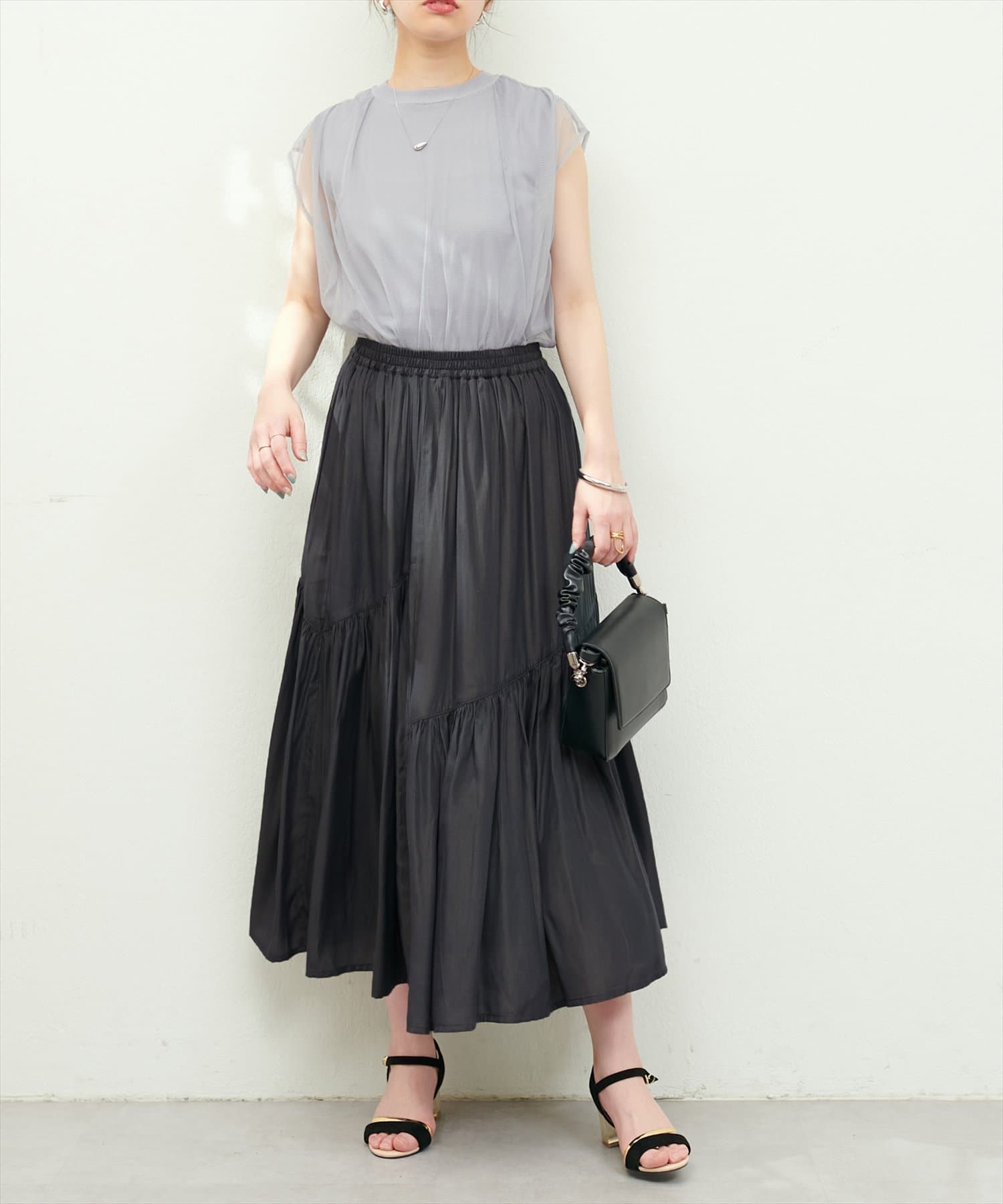 アシメ切替つやっとスカート