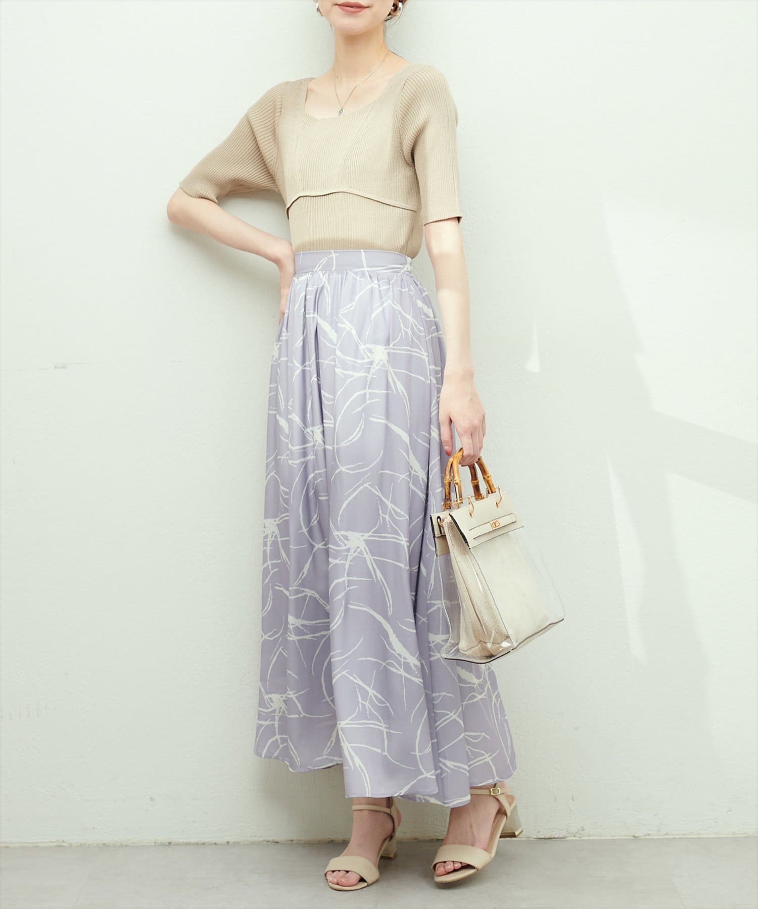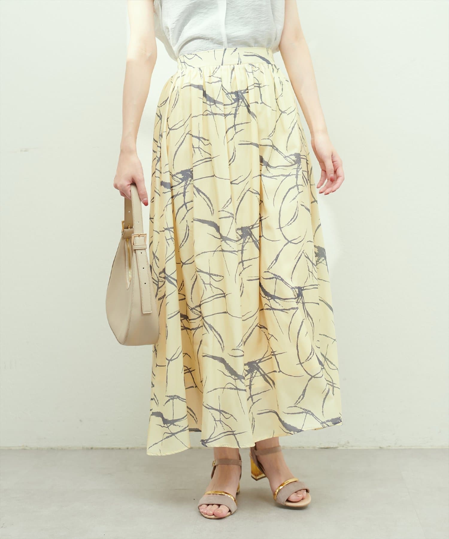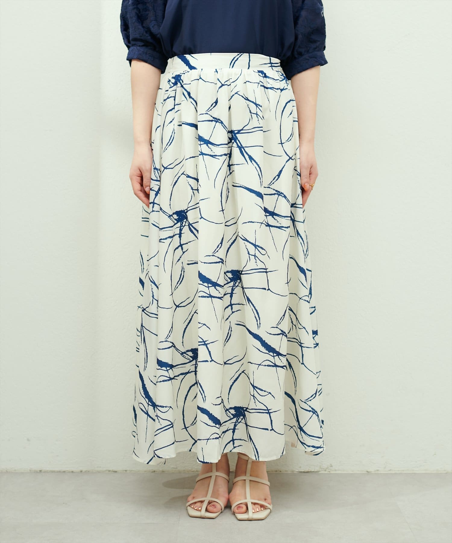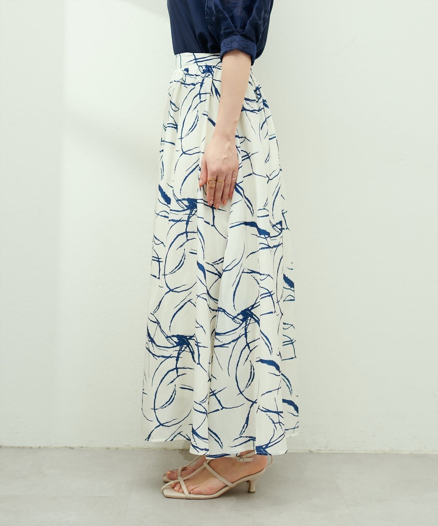 絵の具でペイントしたようなニュアンスたっぷりのアートな大人柄スカート。
