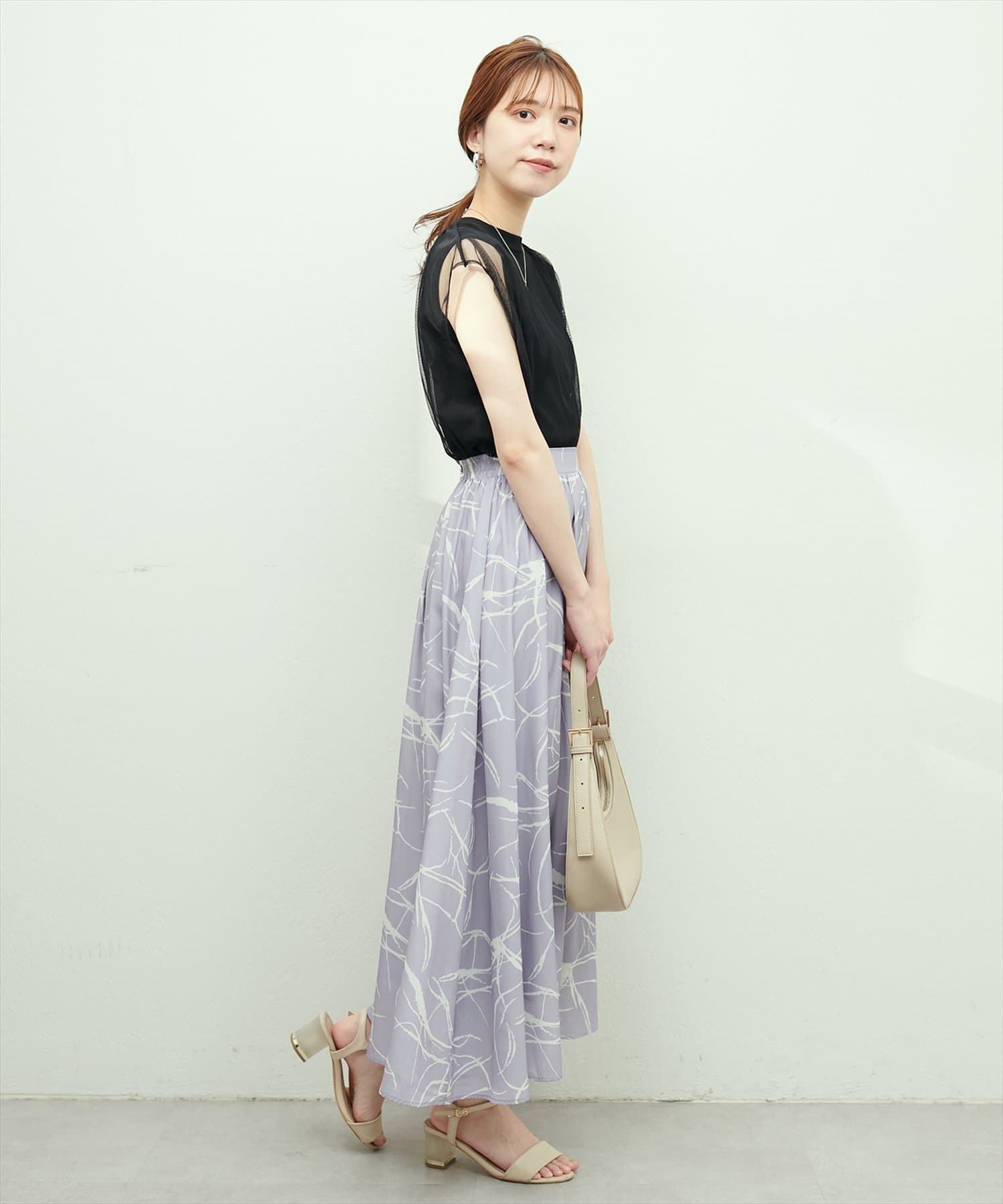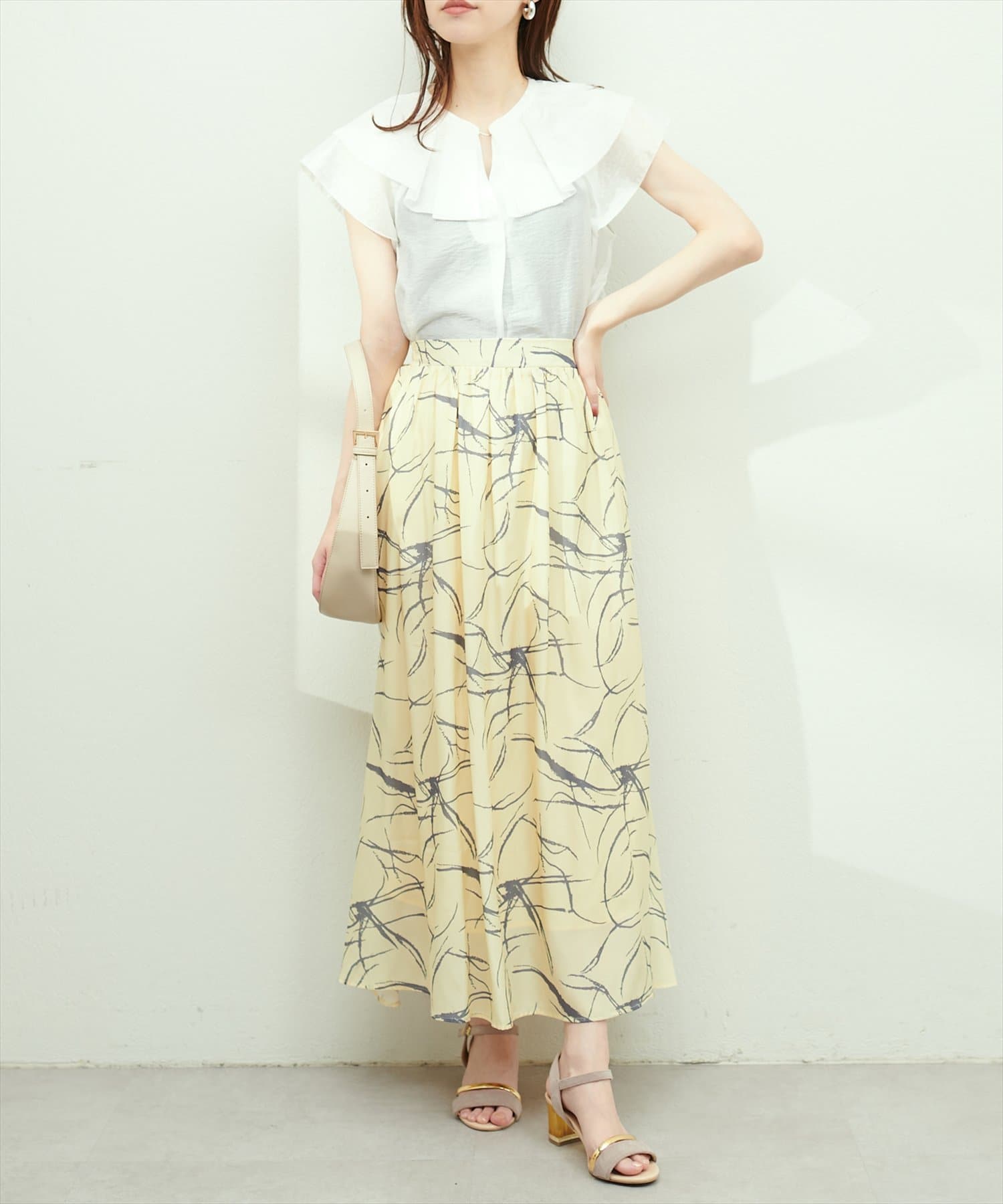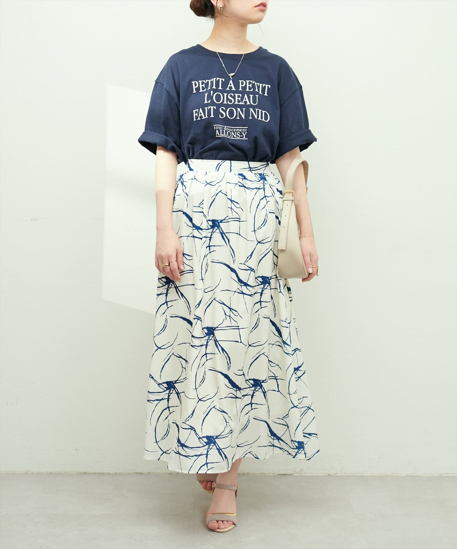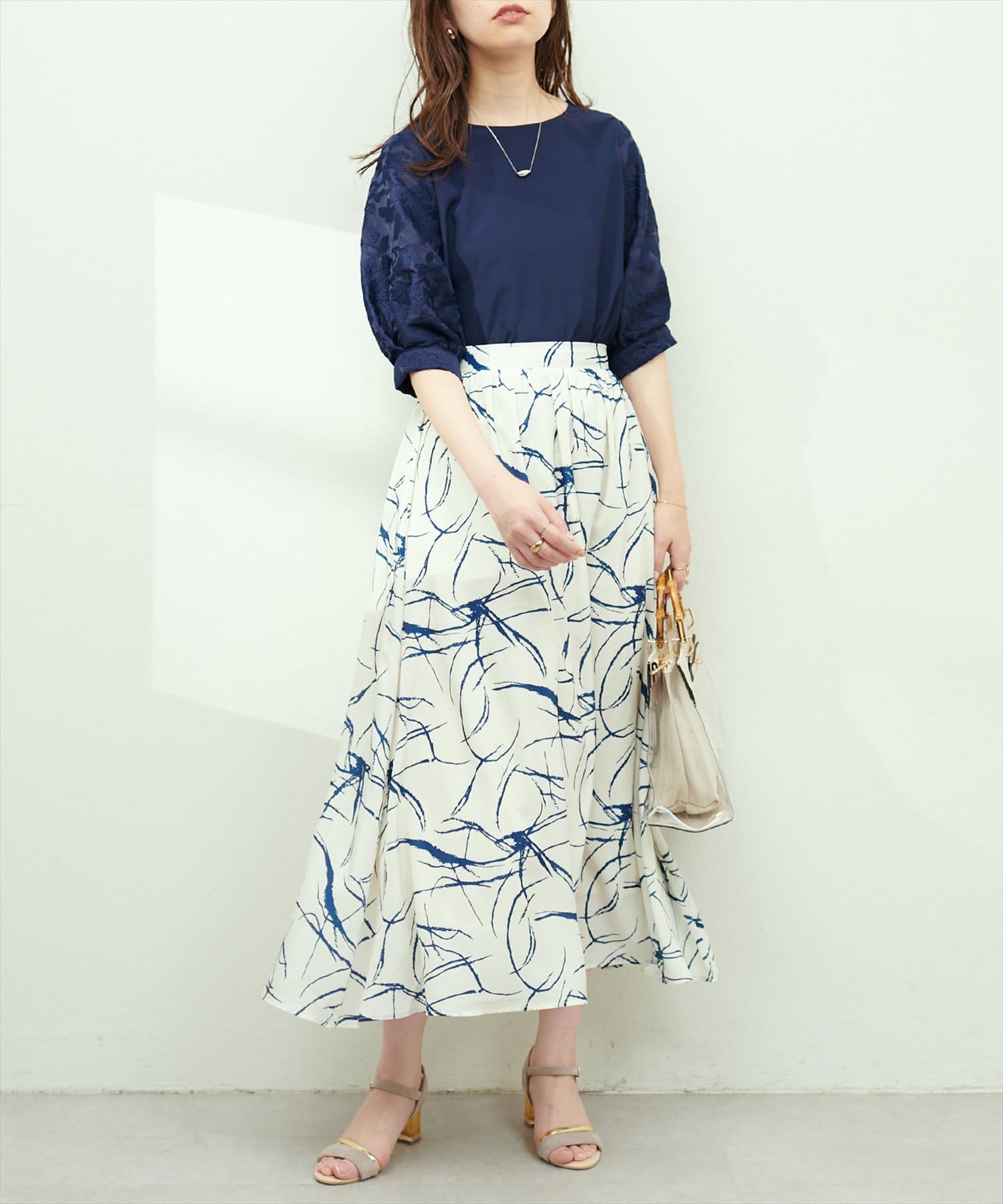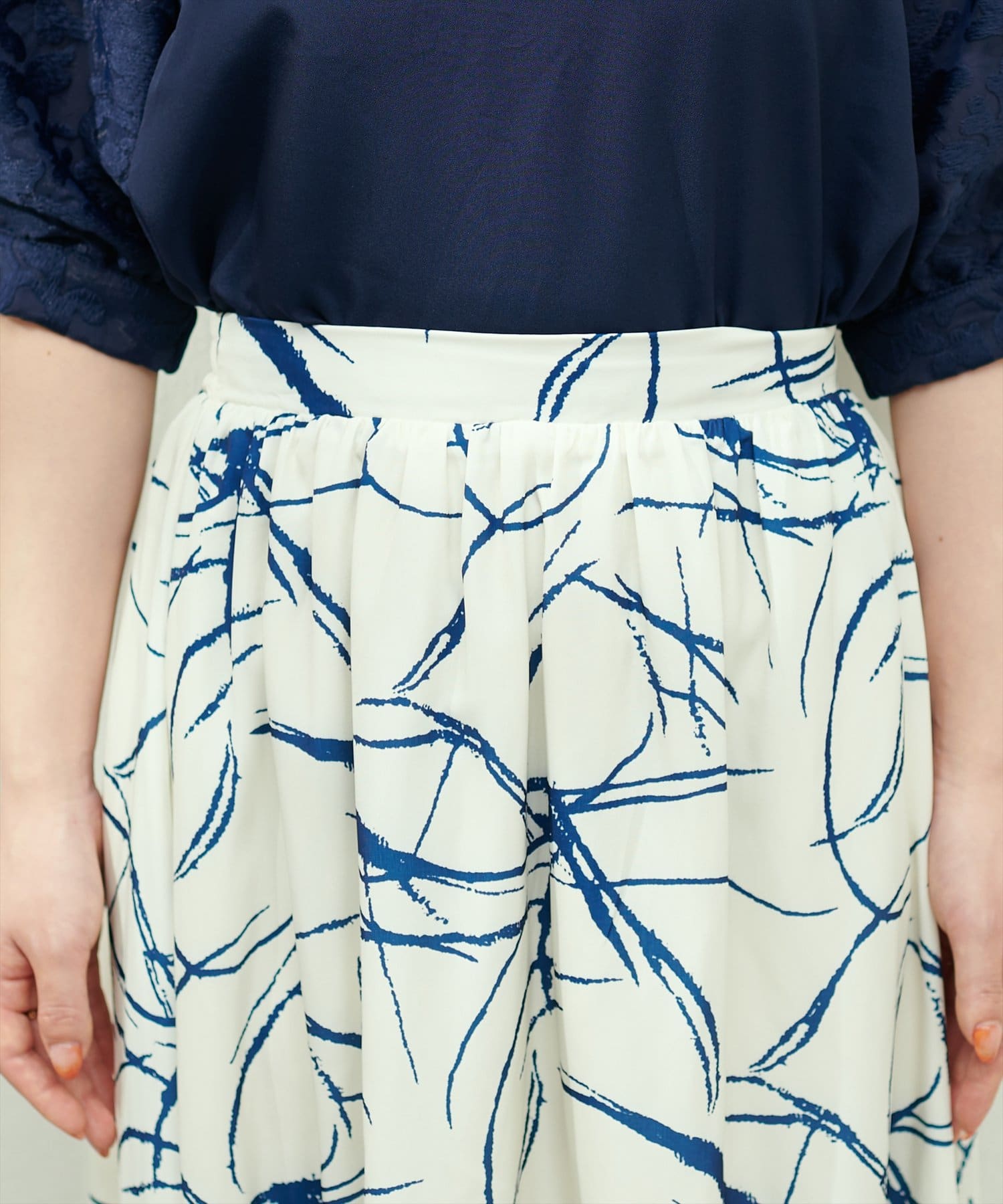 絵の具でペイントしたようなニュアンスたっぷりのアートな大人柄スカート。