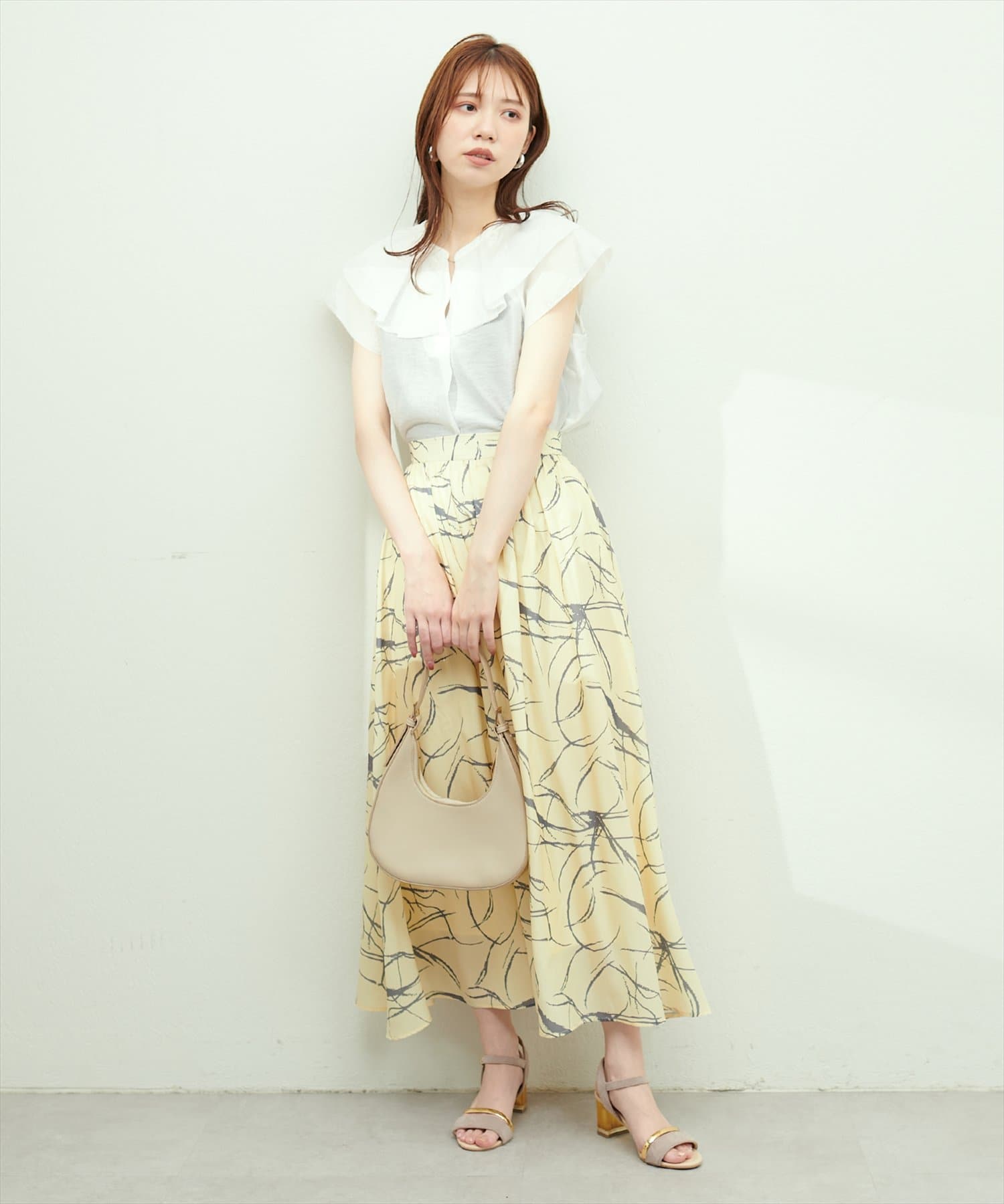 きれいめブラウスと合わせたフェミニンコーデから、Tシャツと合わせたカジュアルミックスコーデまで、幅広く着回しが効くアイテムです。