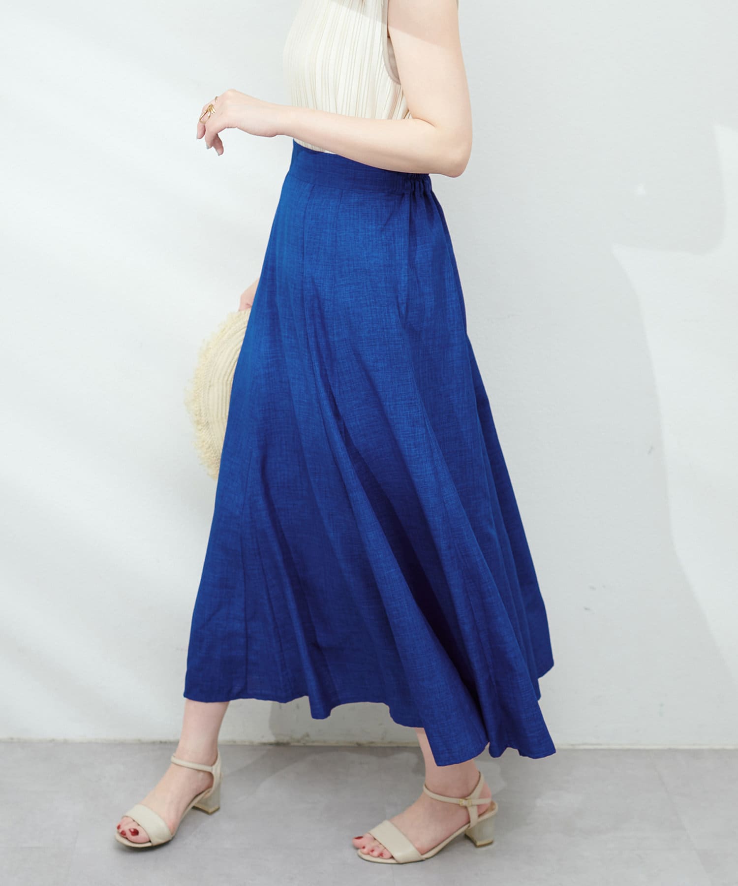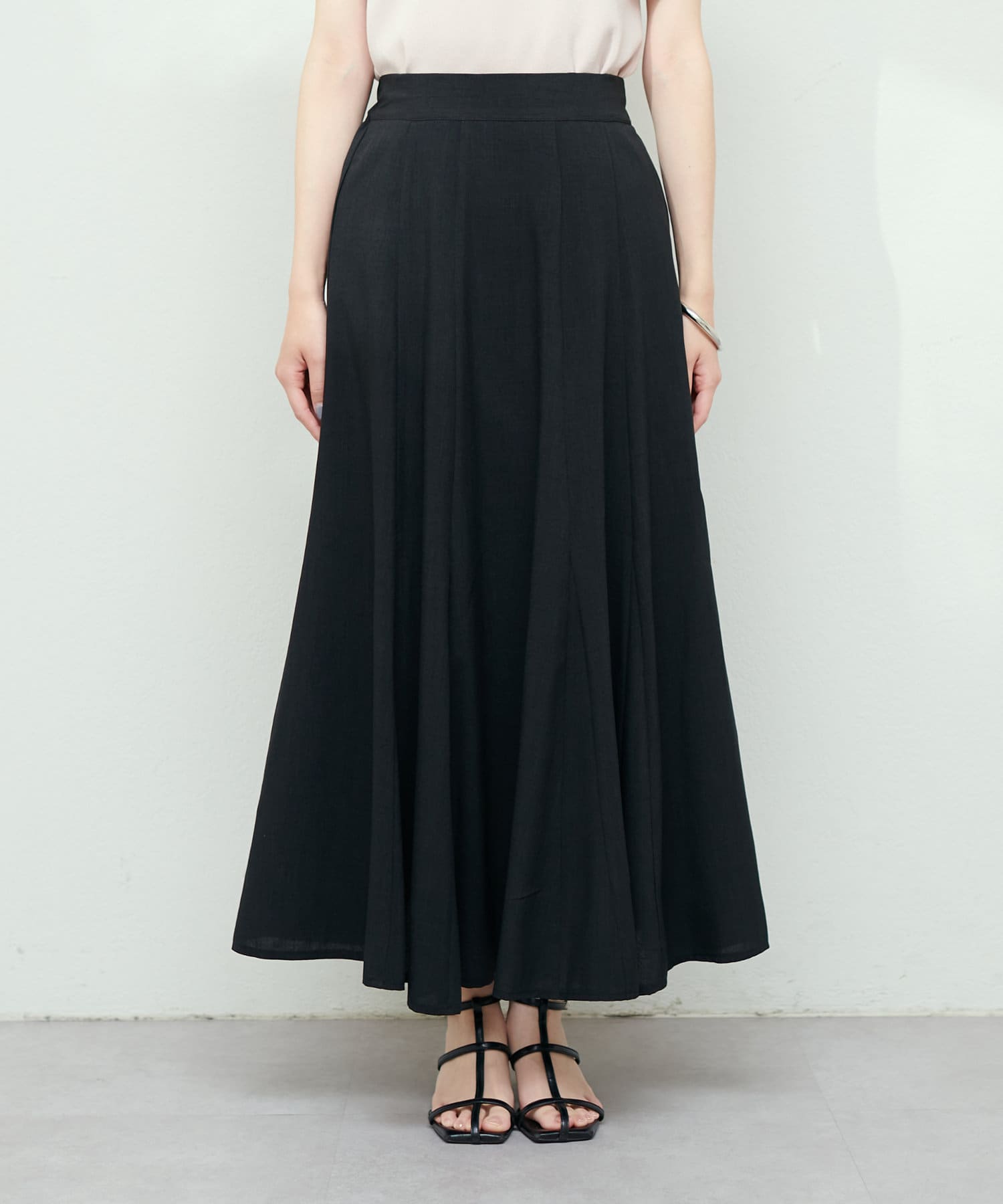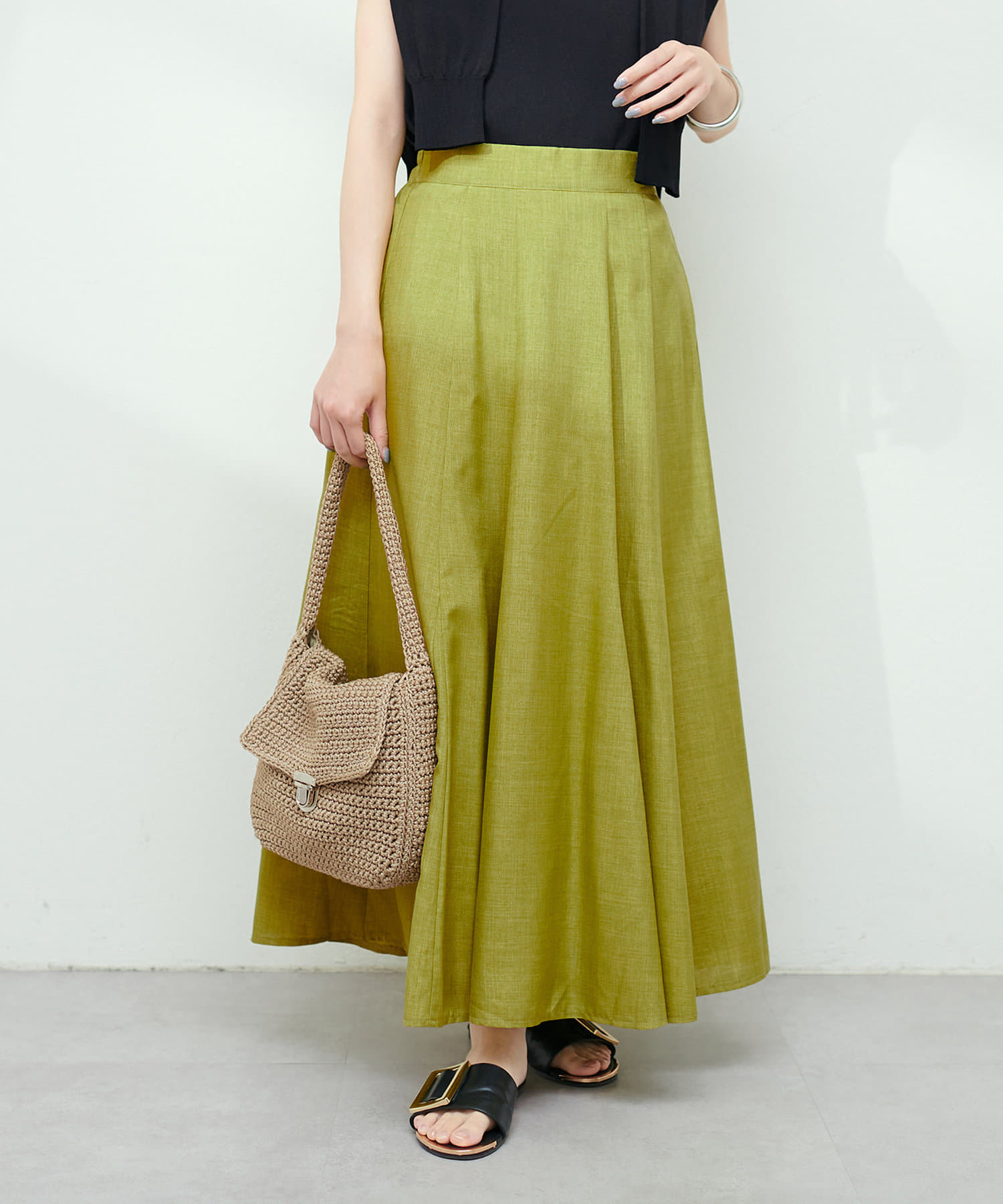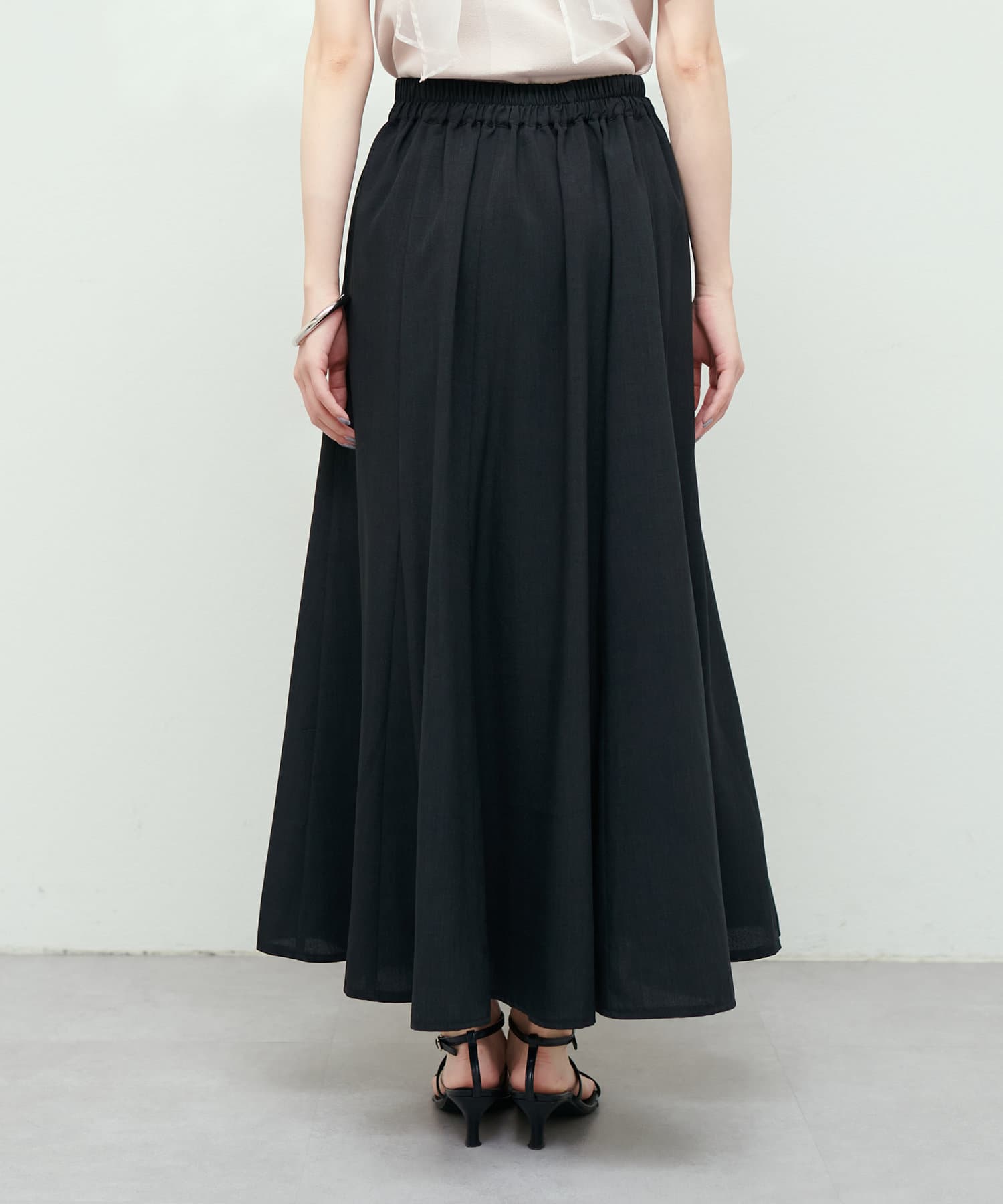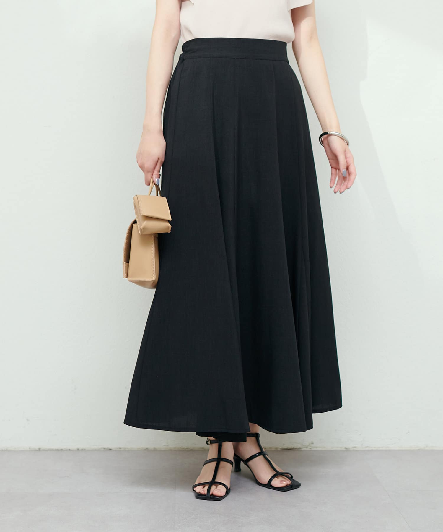 ハリ感のあるさらりとした素材で、裾にかけてふんだんに生地を使用したマーメイドスカート。