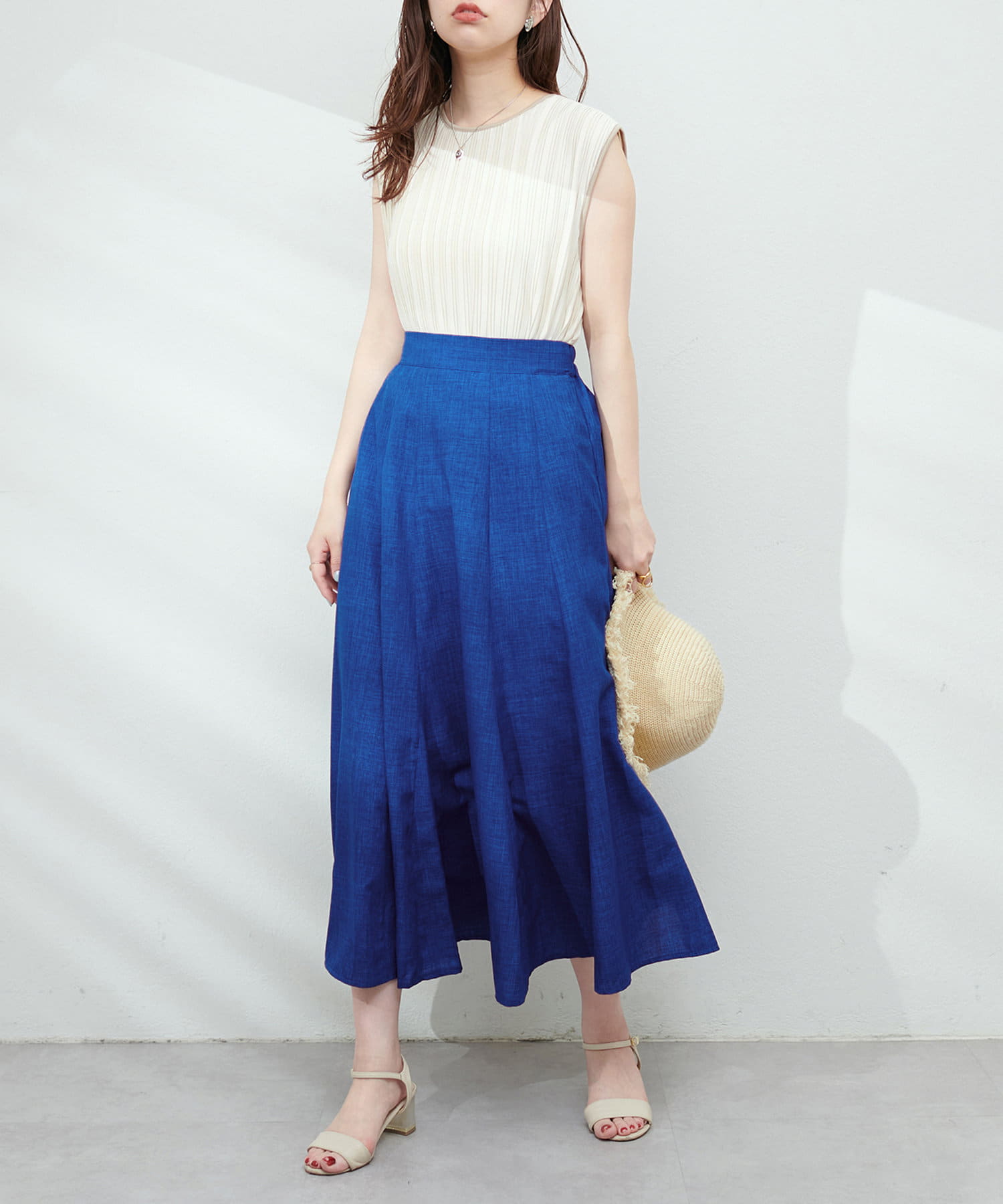 きちんとした印象ながらも、リネンライクの風合いで夏らしさが楽しめる1枚です。