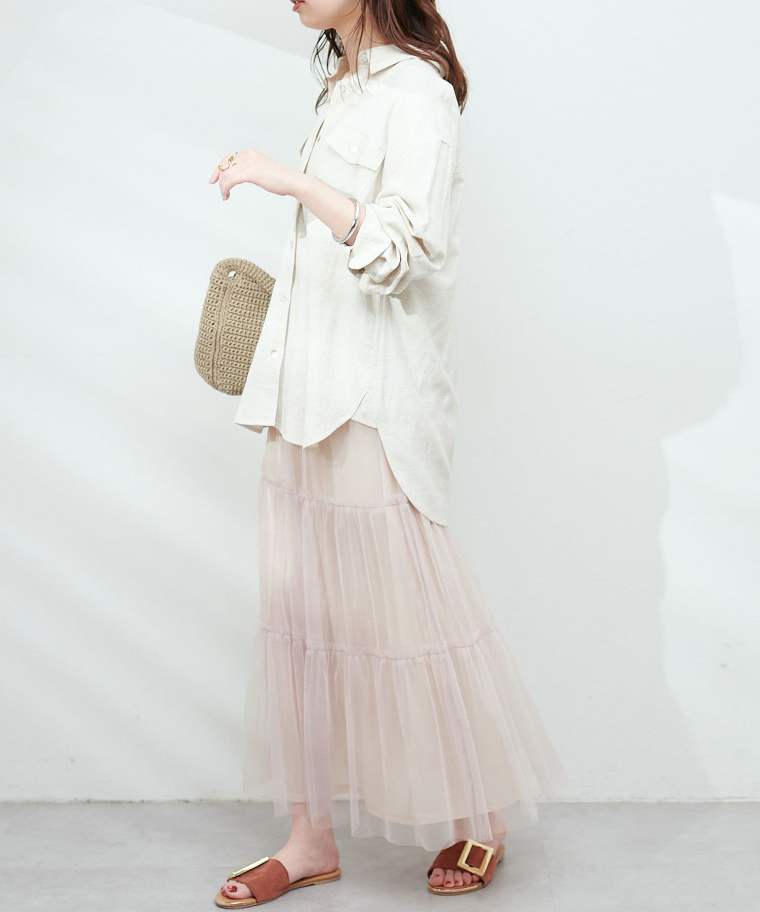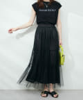 動くたびにふわっと揺れる柔らかなチュール素材のティアードスカート。