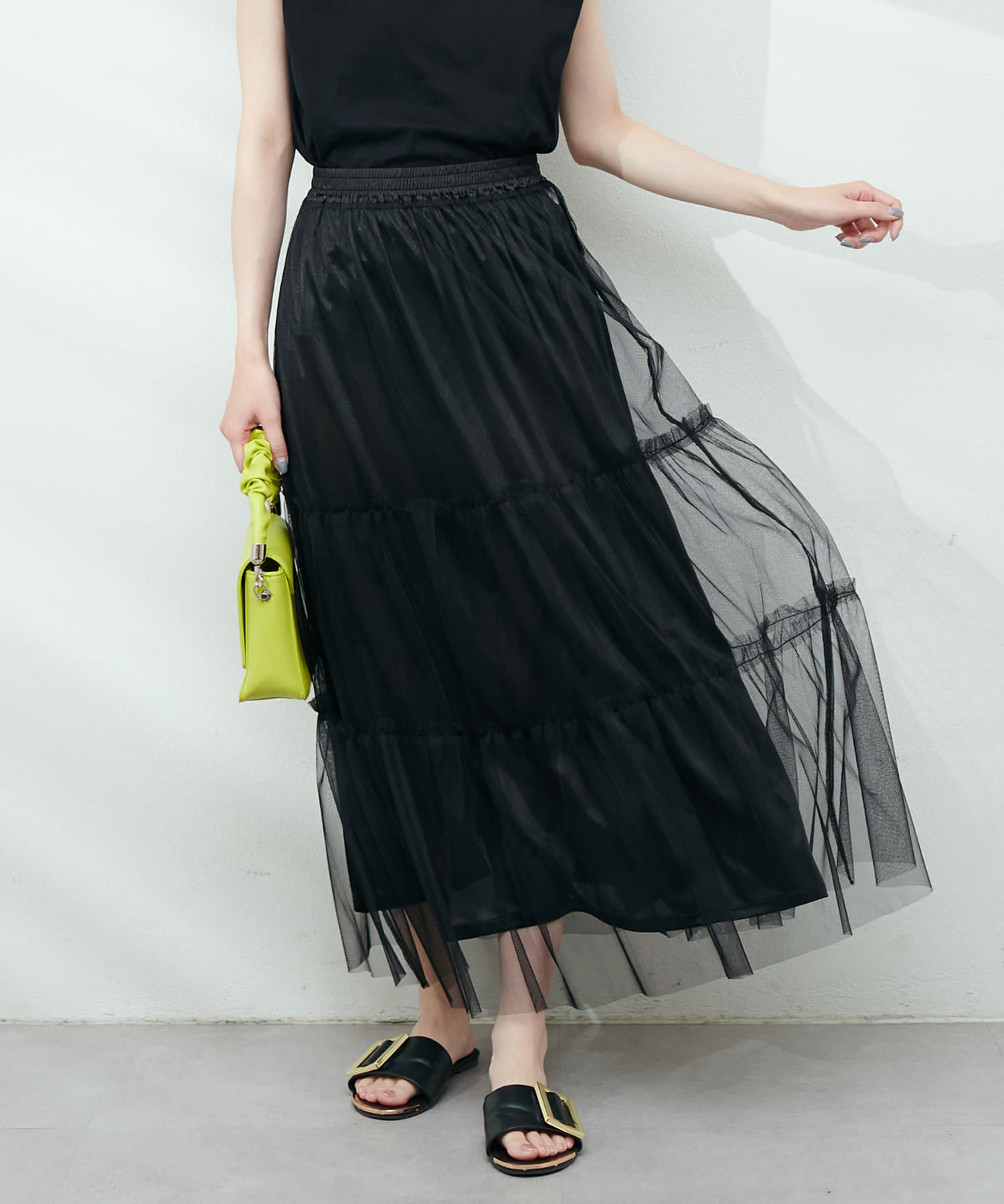 チュールティアードスカート