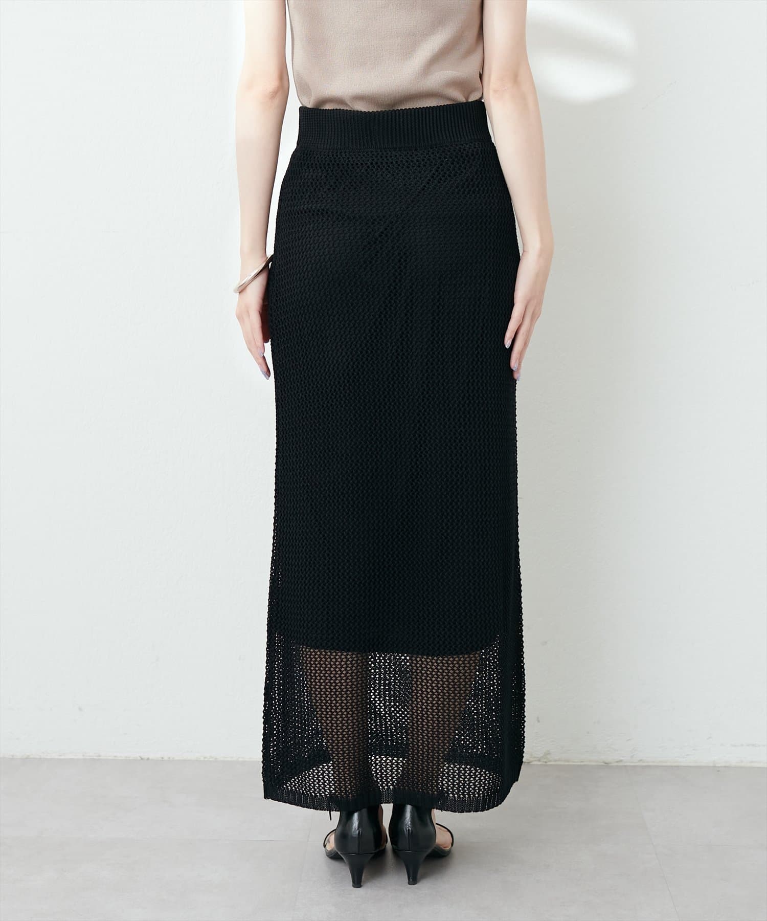 メッシュ編みニットスカート