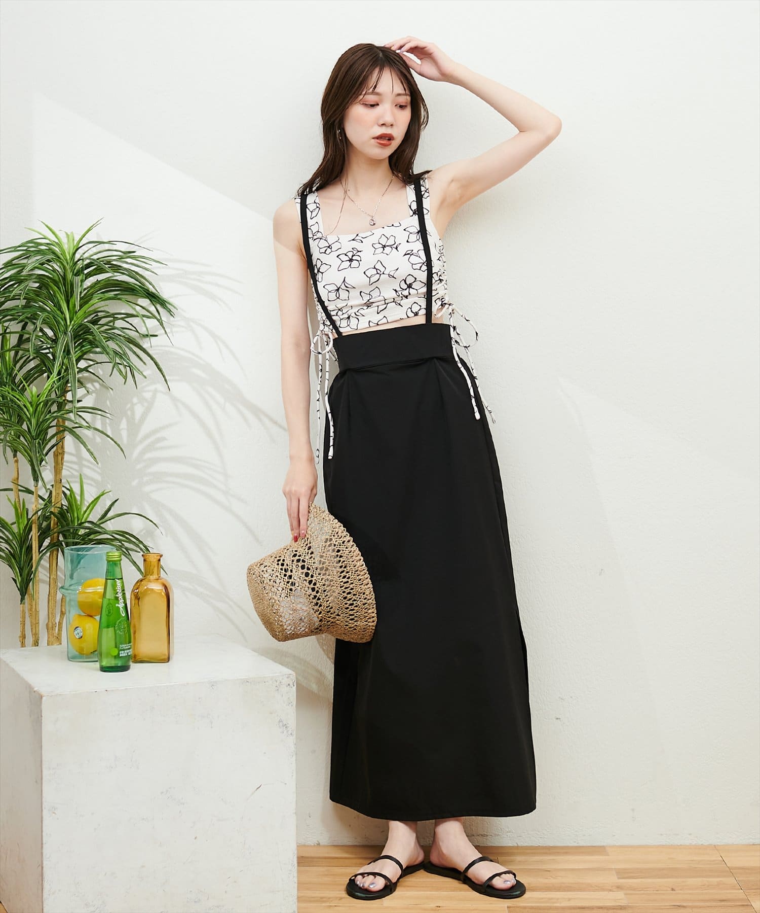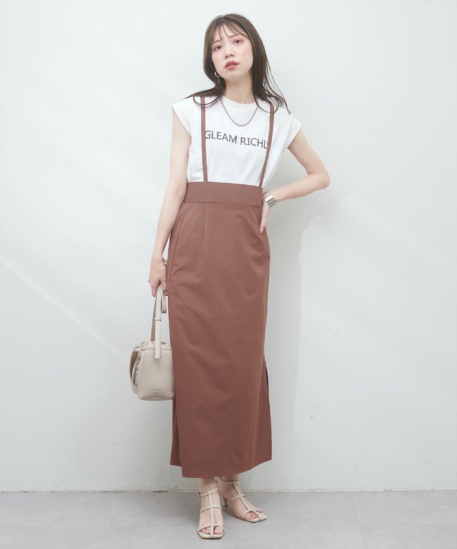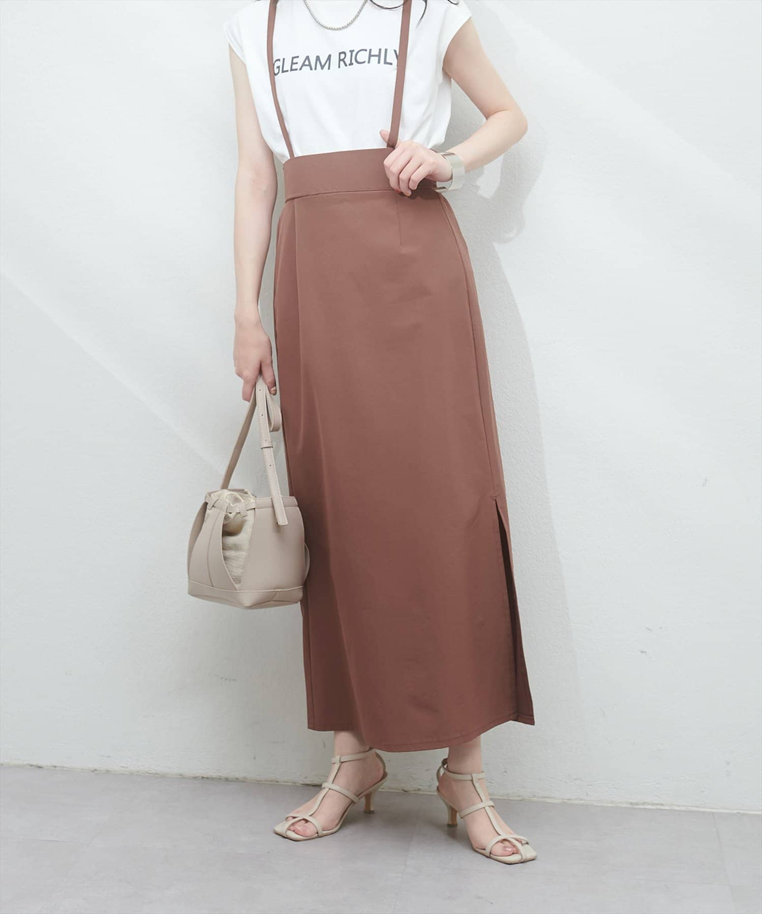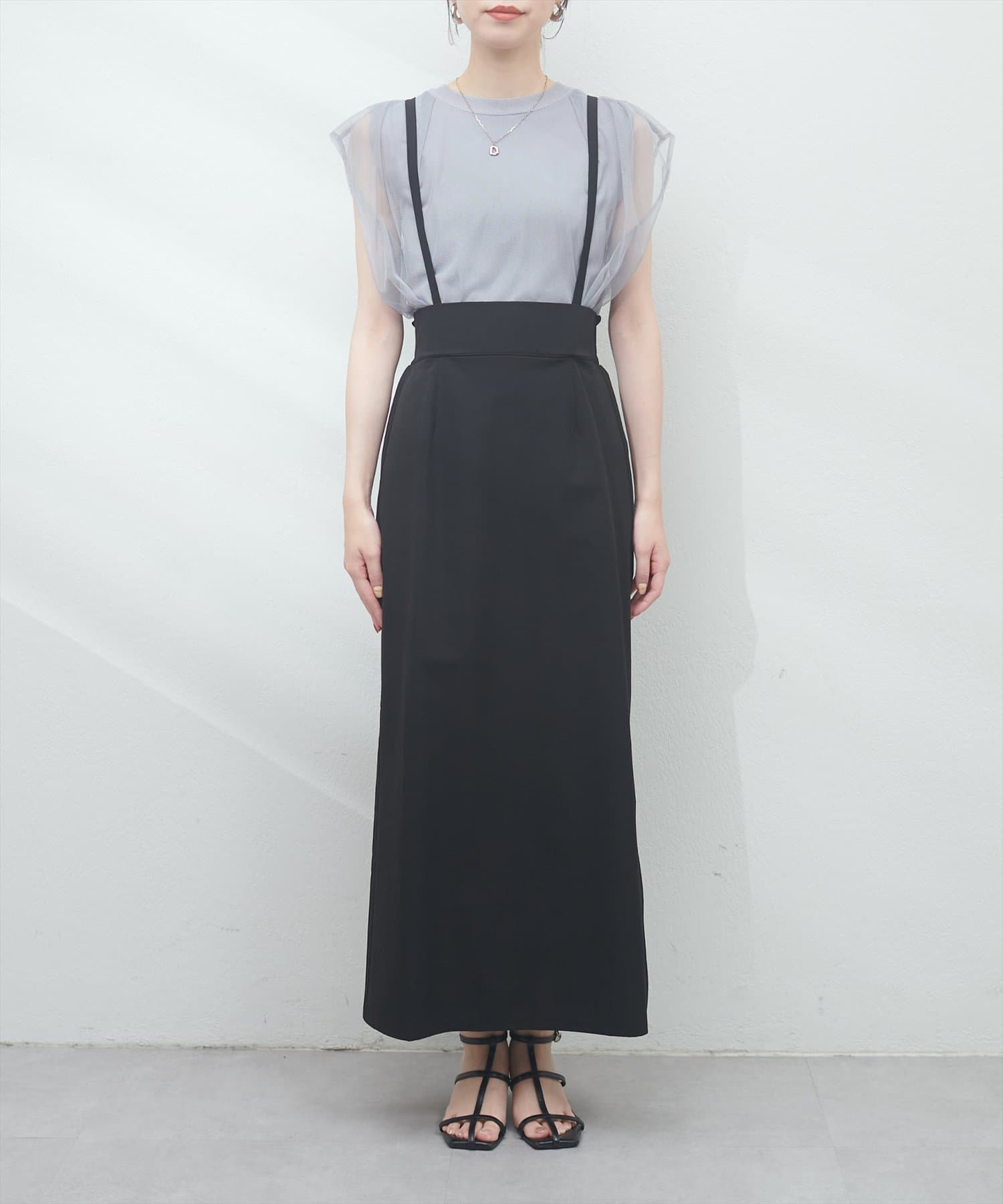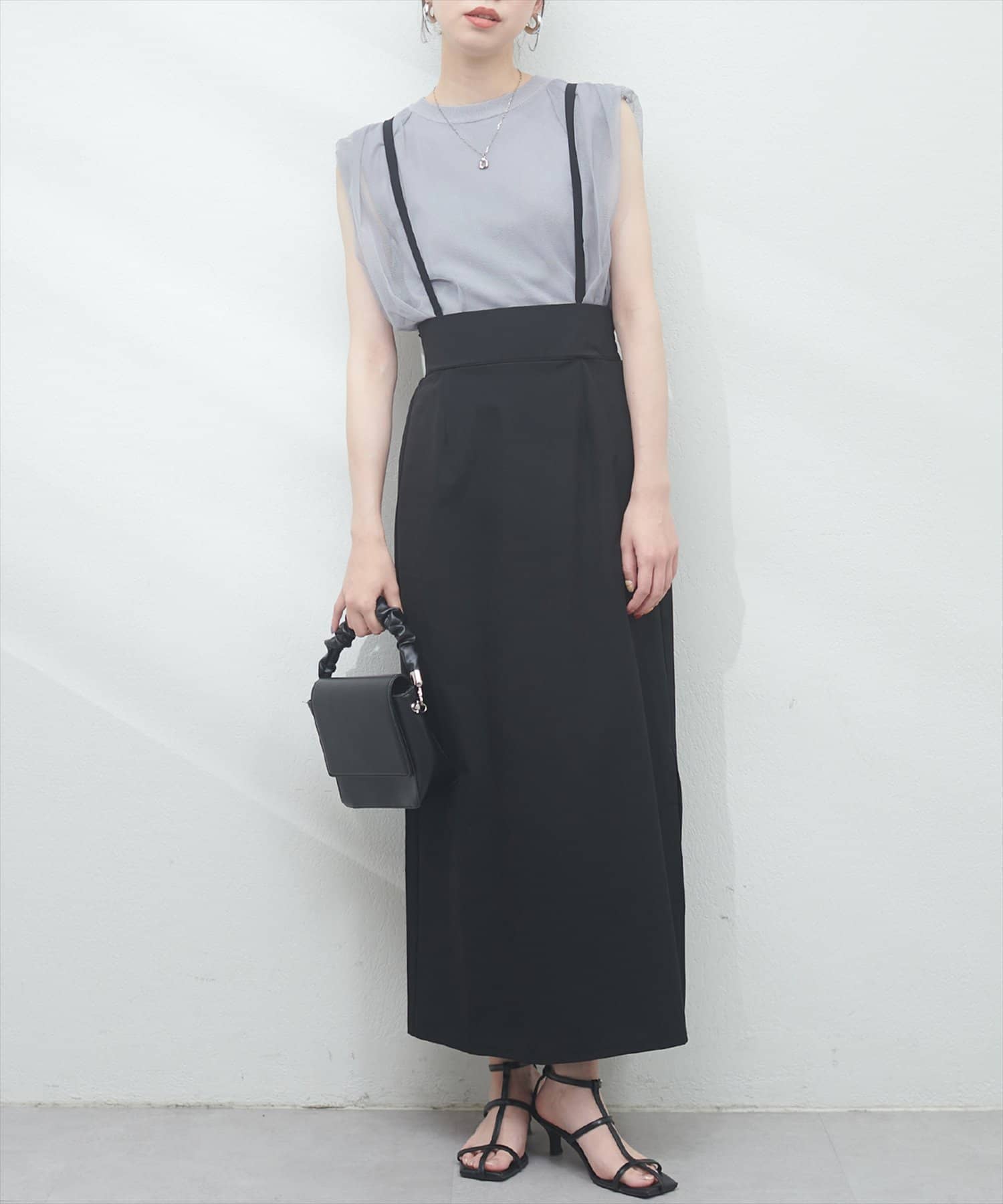 サスペンダー付きマキシスカート