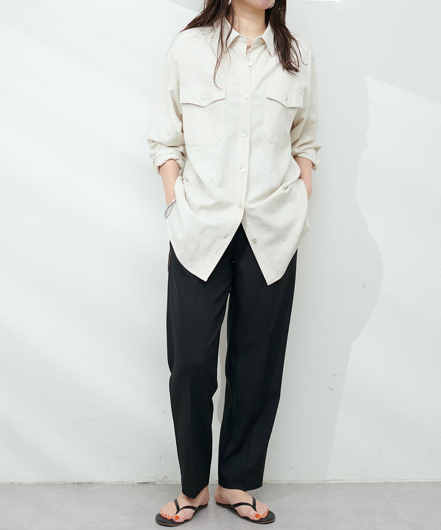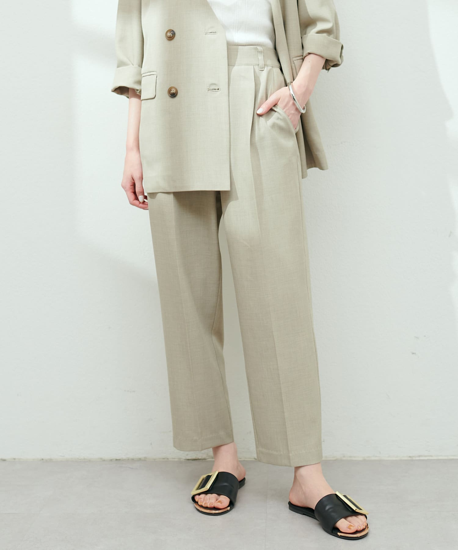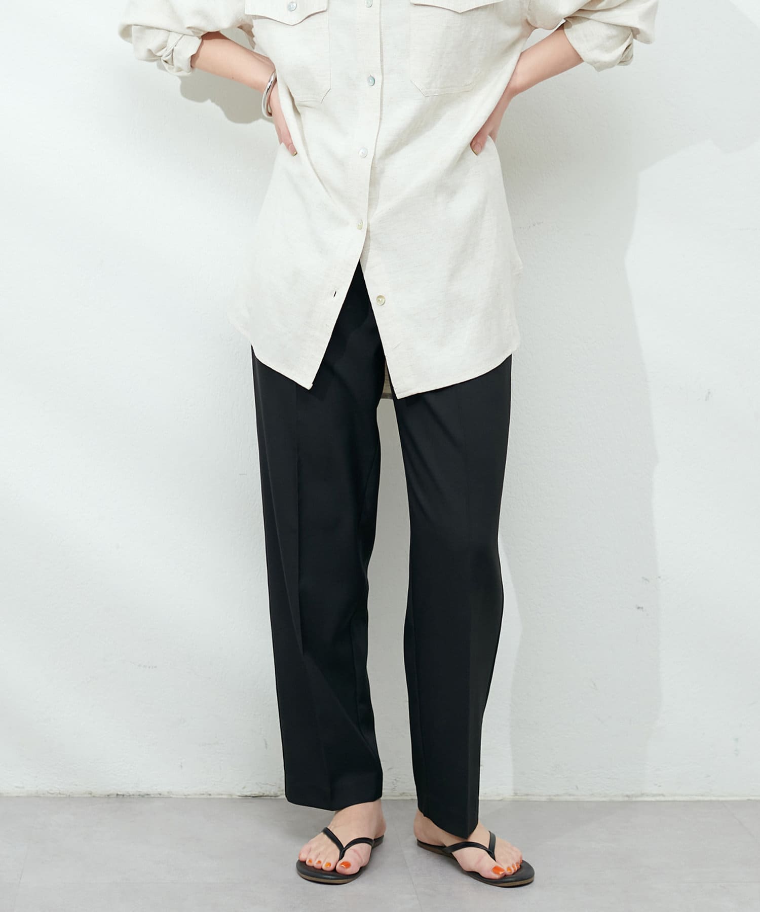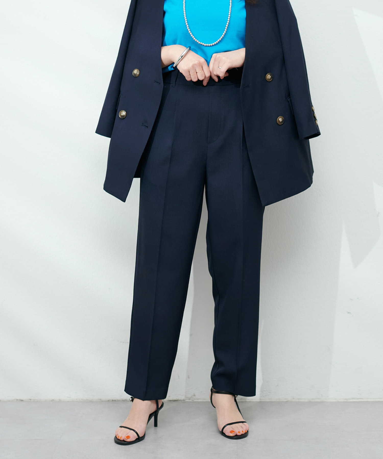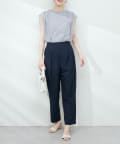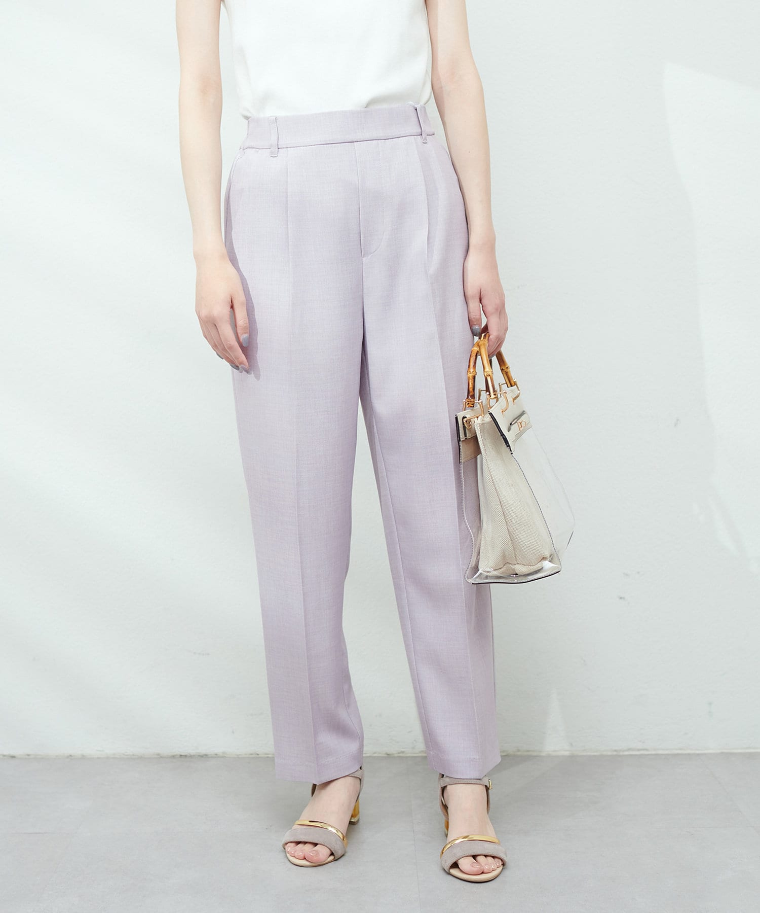 麻調の素材を使用した清涼感溢れるテーパードパンツ