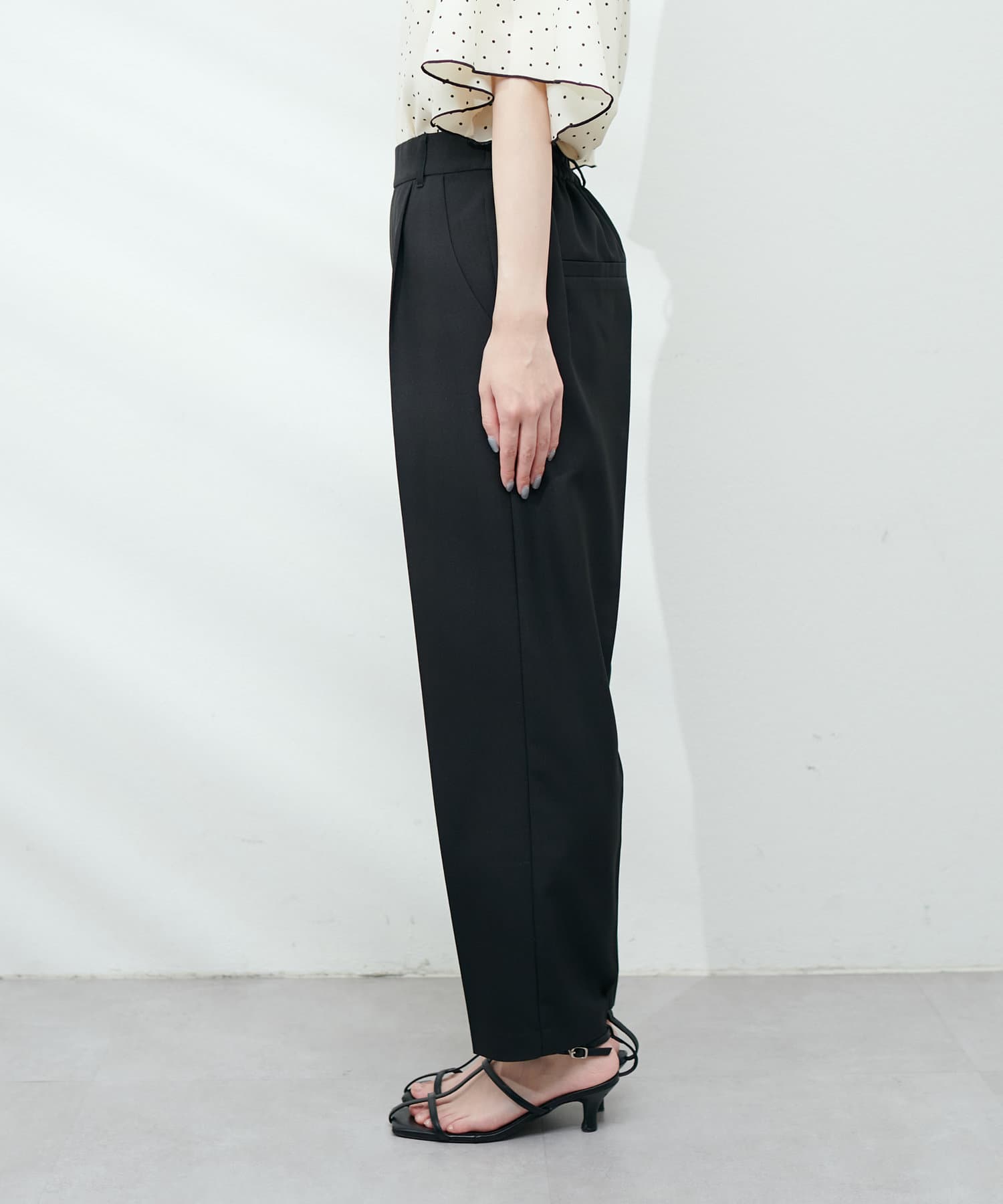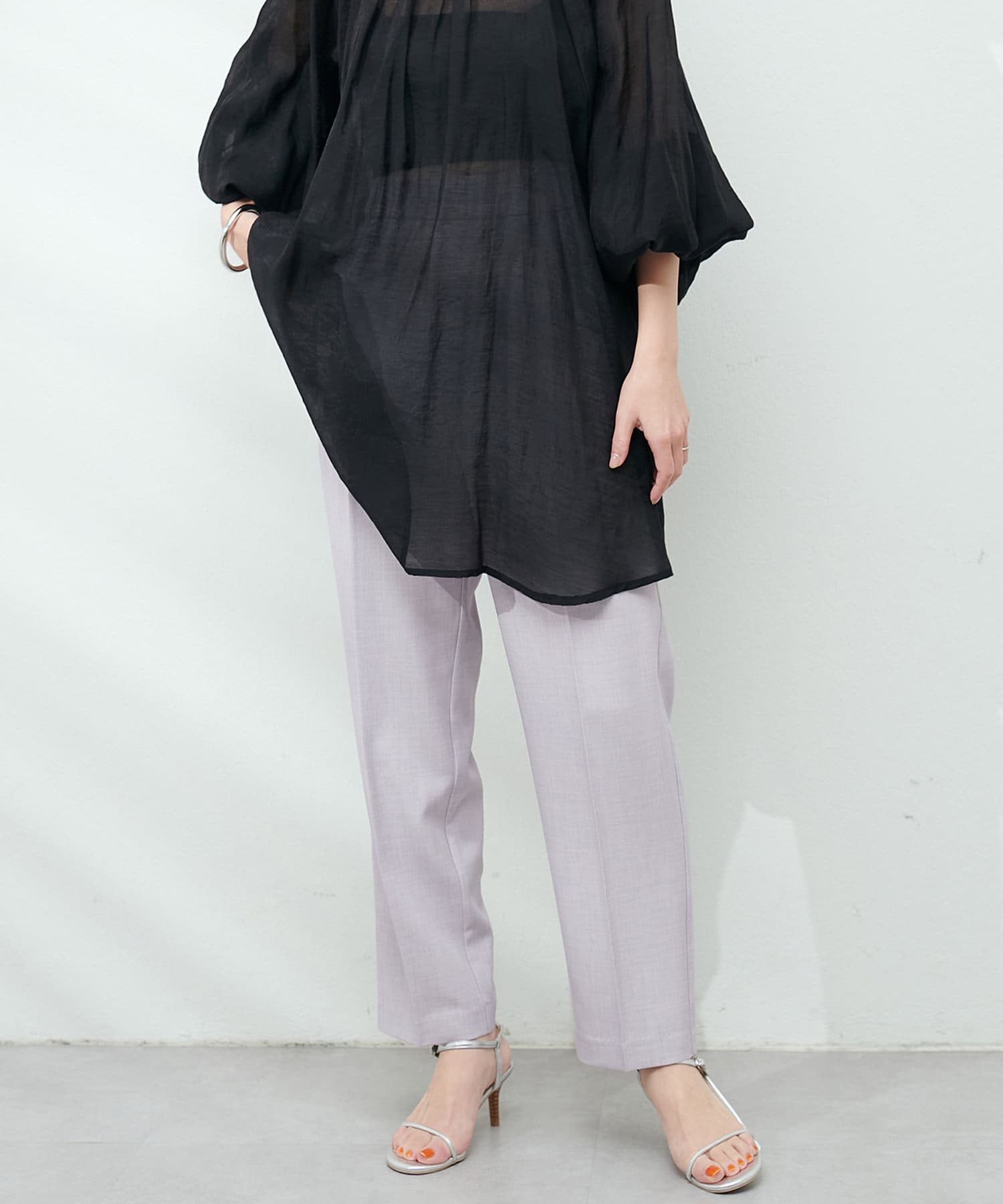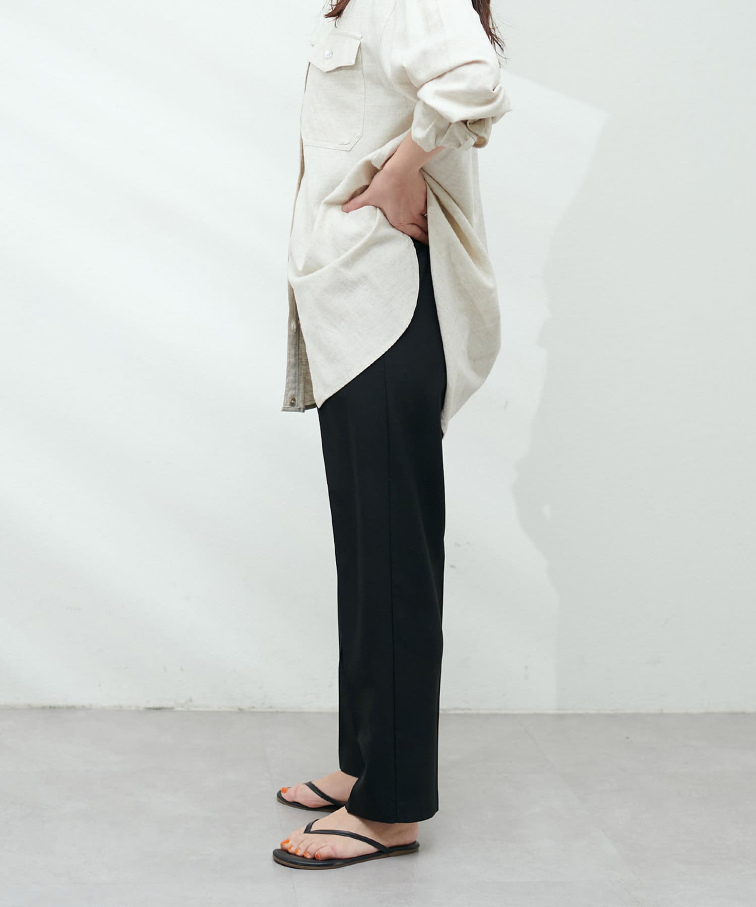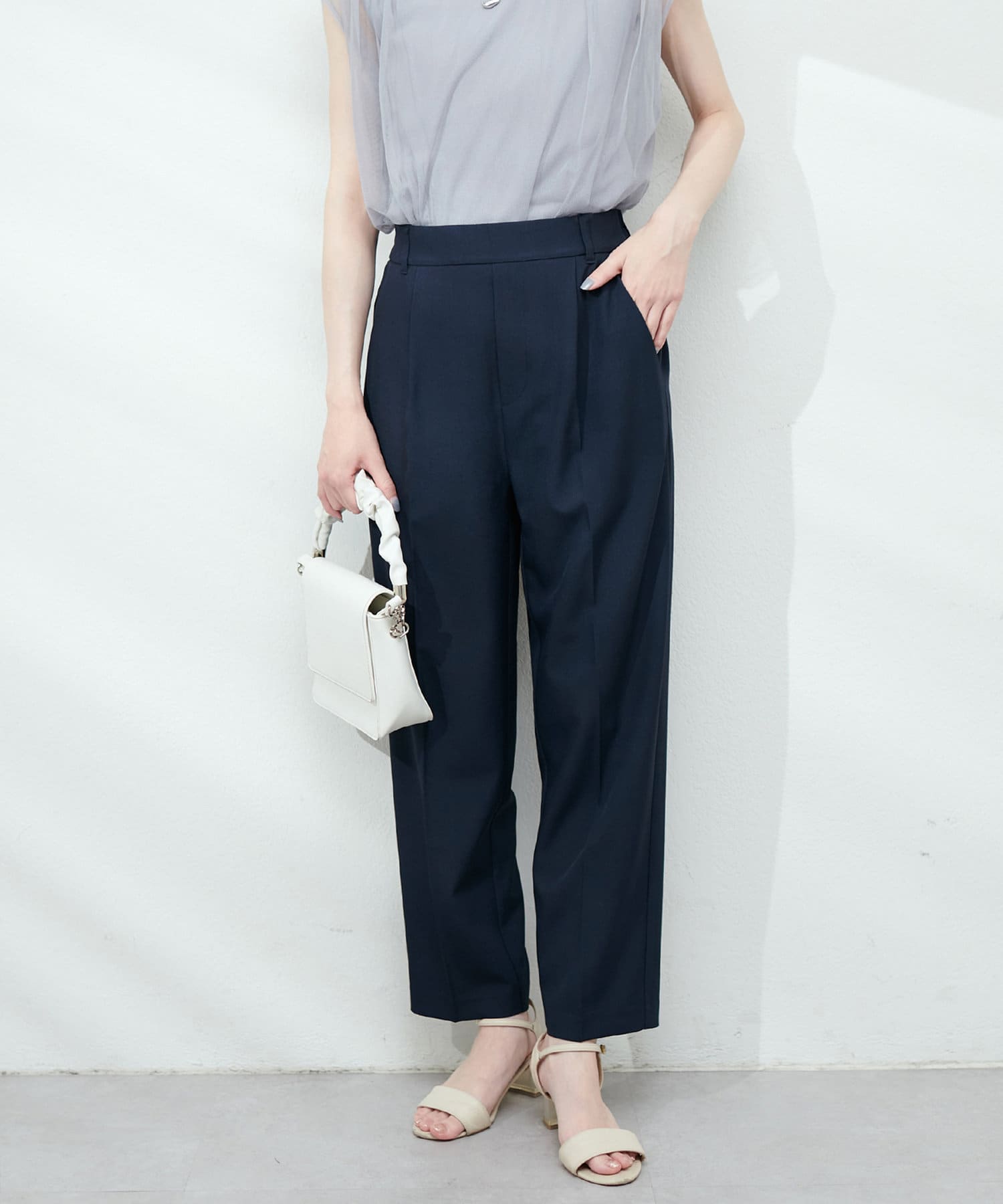 麻調の素材を使用した清涼感溢れるテーパードパンツ