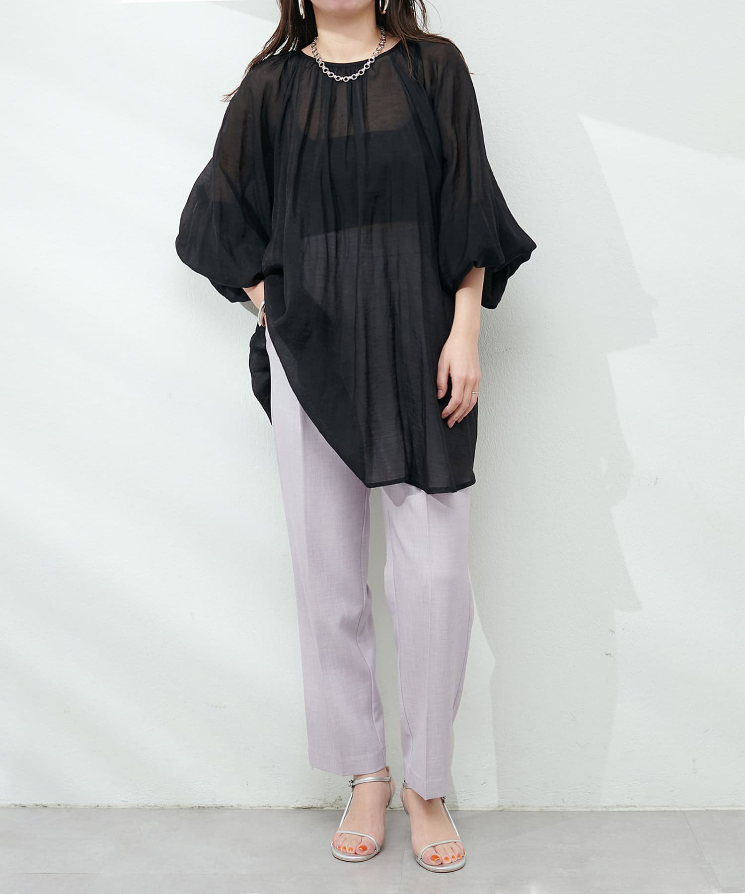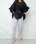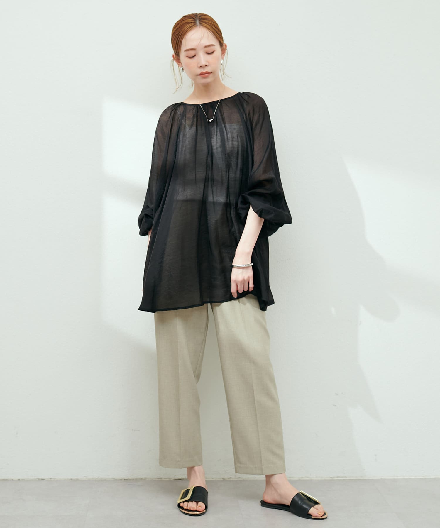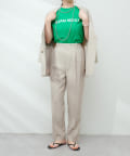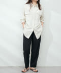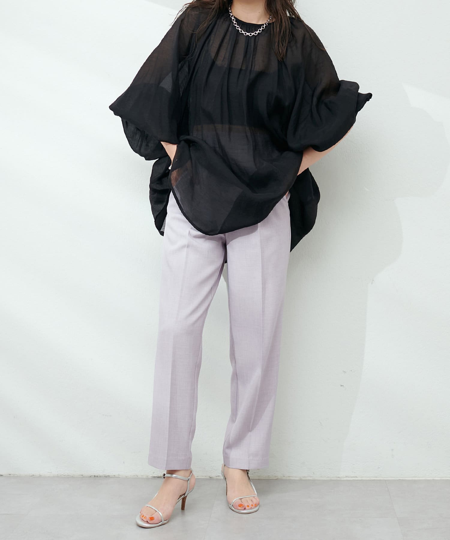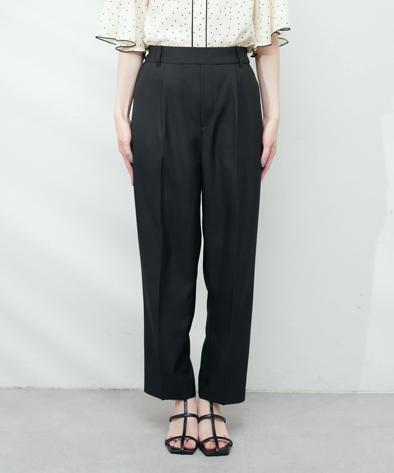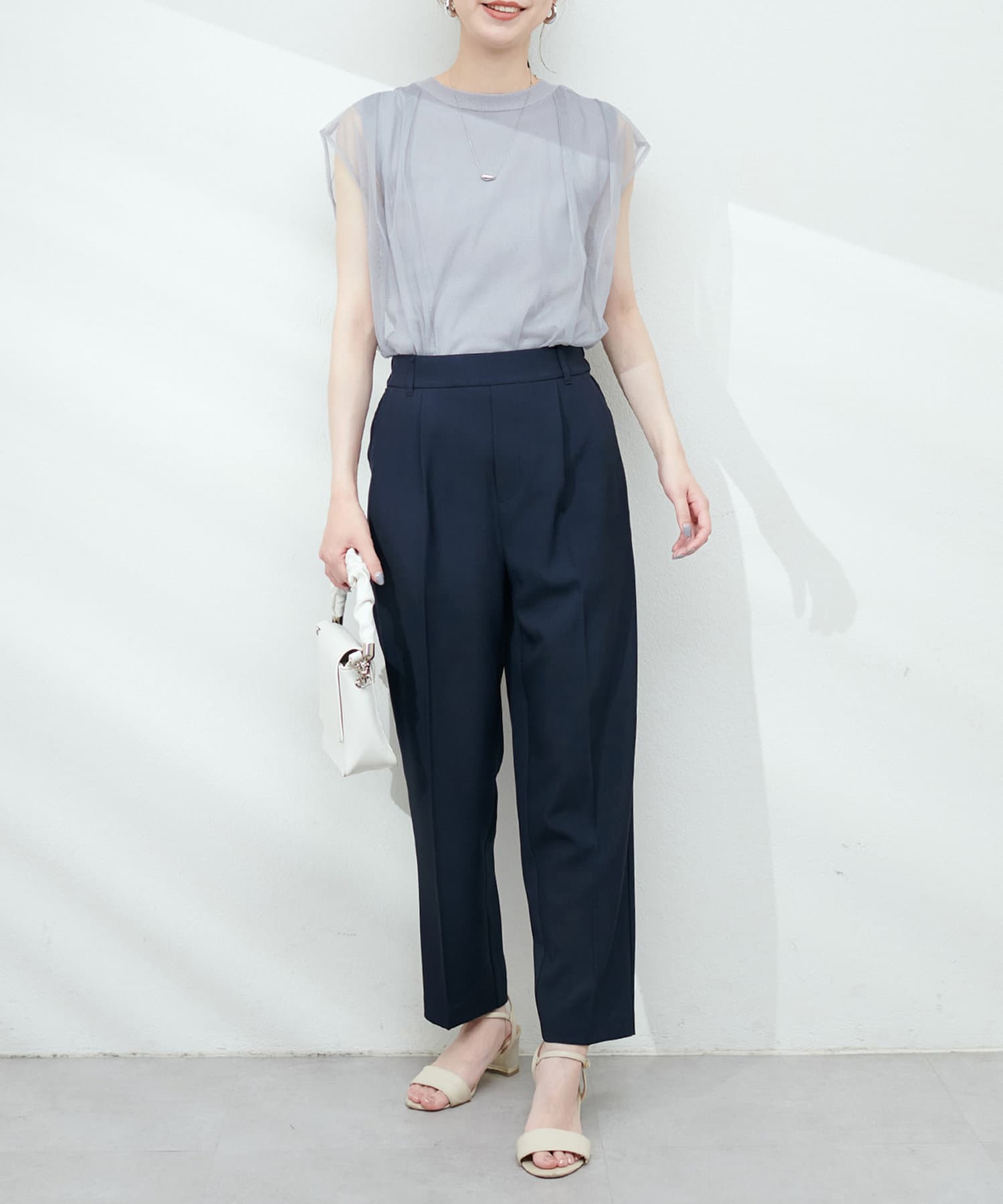 麻調の素材を使用した清涼感溢れるテーパードパンツ