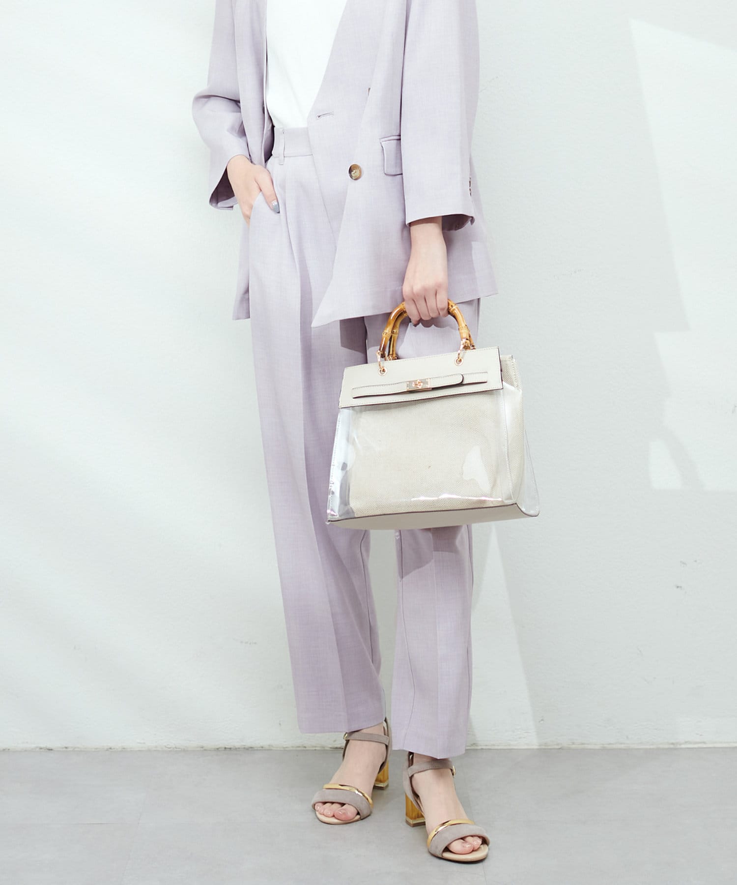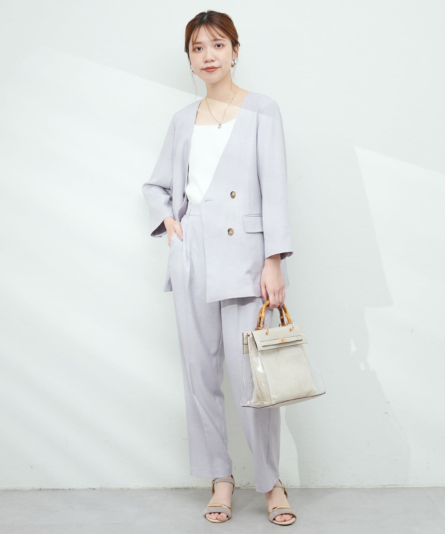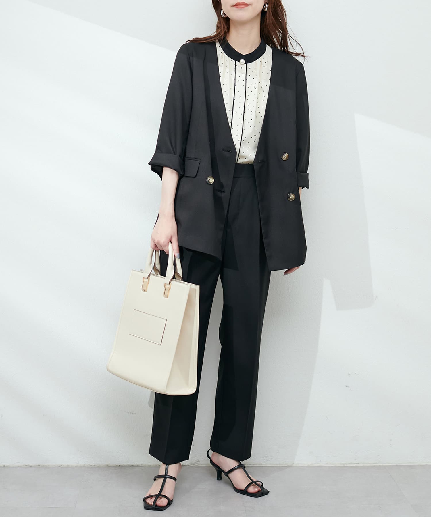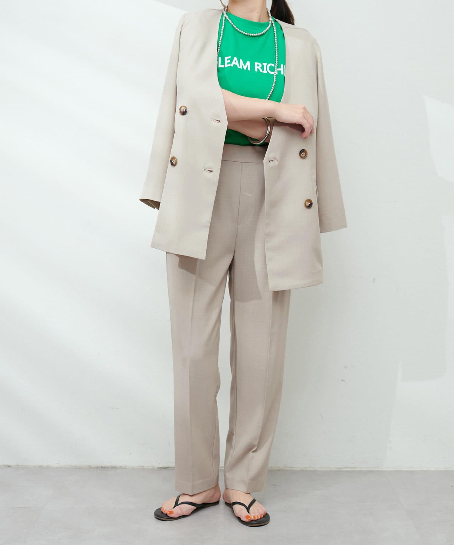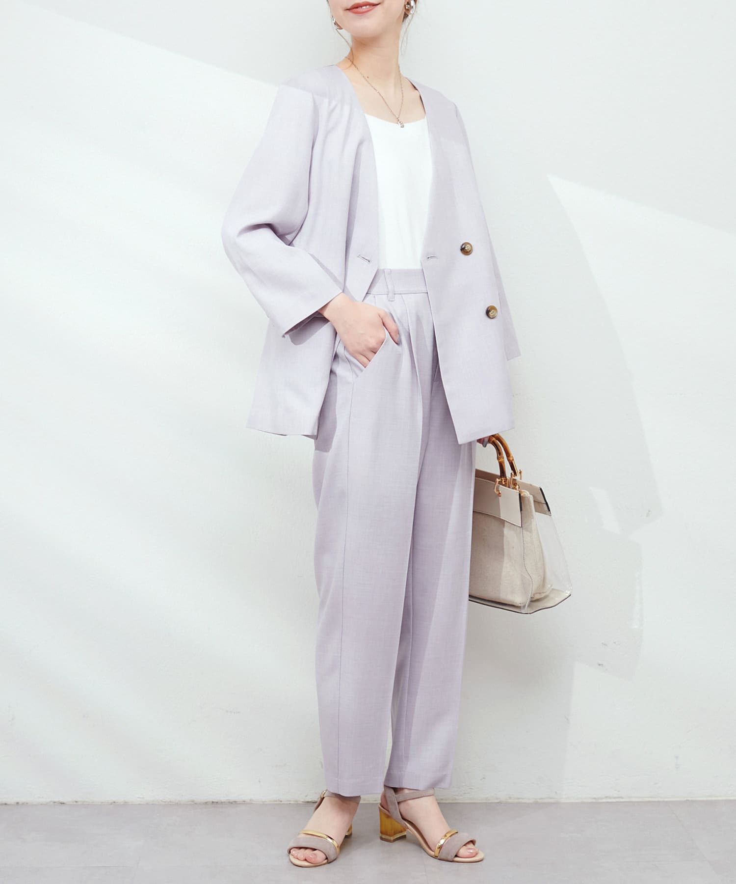 シリーズの麻調ノーカラーおしゃれジャケットと合わせると、セットアップでお召し頂けます。