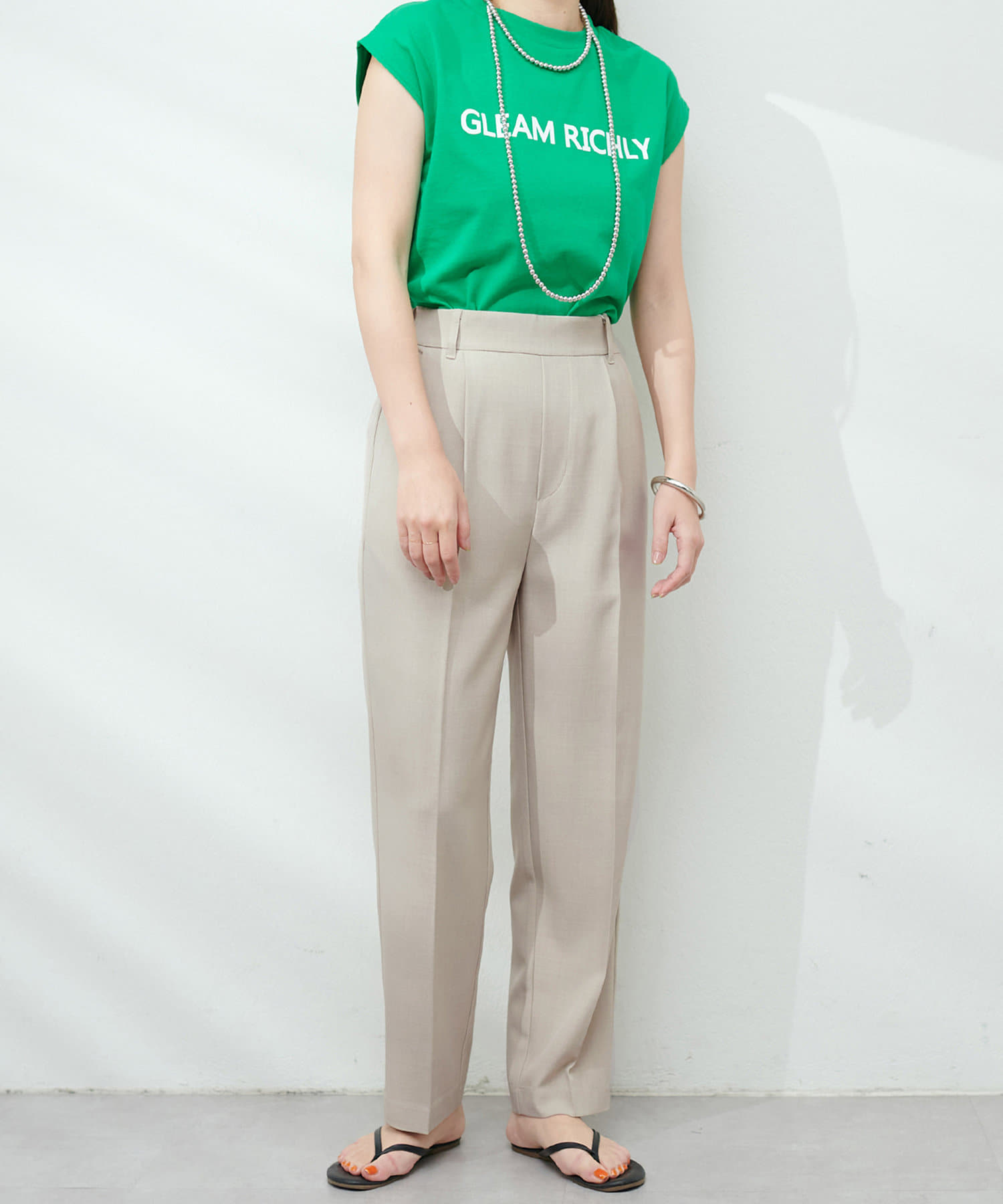 リネンのようなさらりとした風合いの合繊を使用した、春夏にぴったりのパンツ。