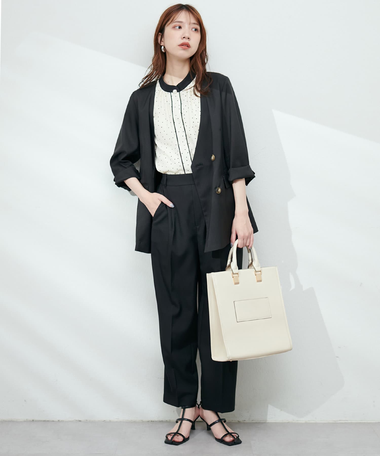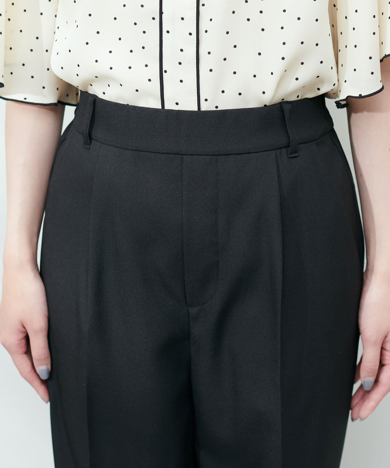 フロントタックとセンタープレスですっきりときれいなラインのシルエットに仕上げました。