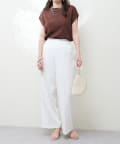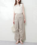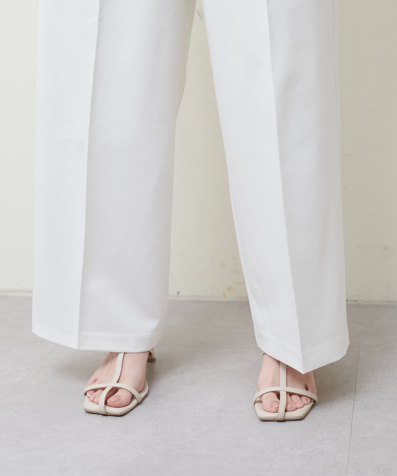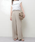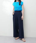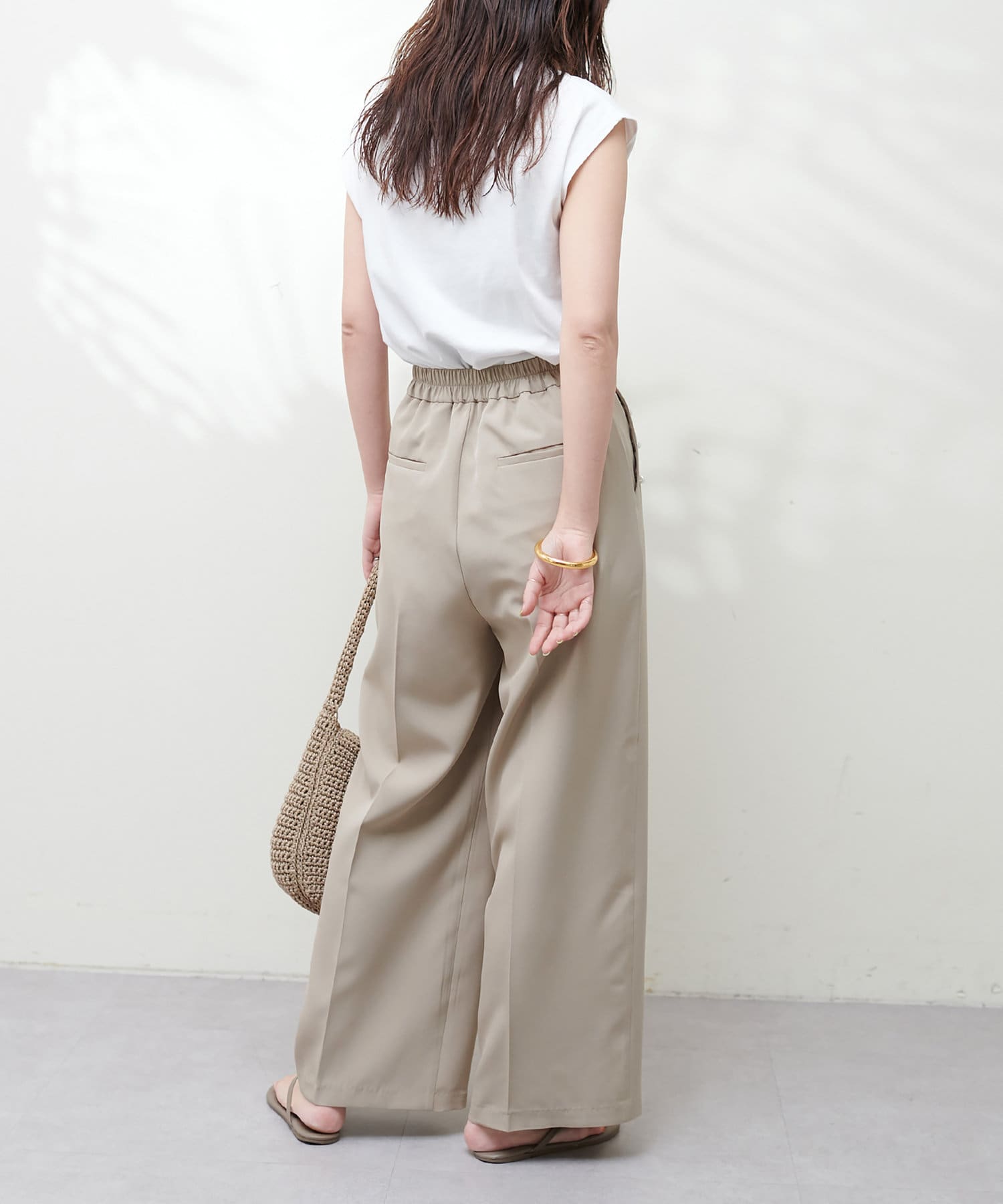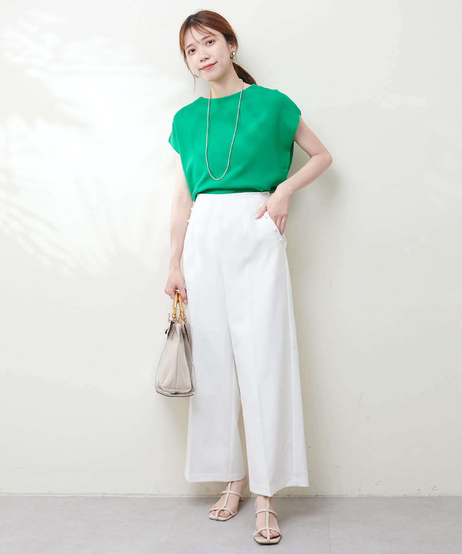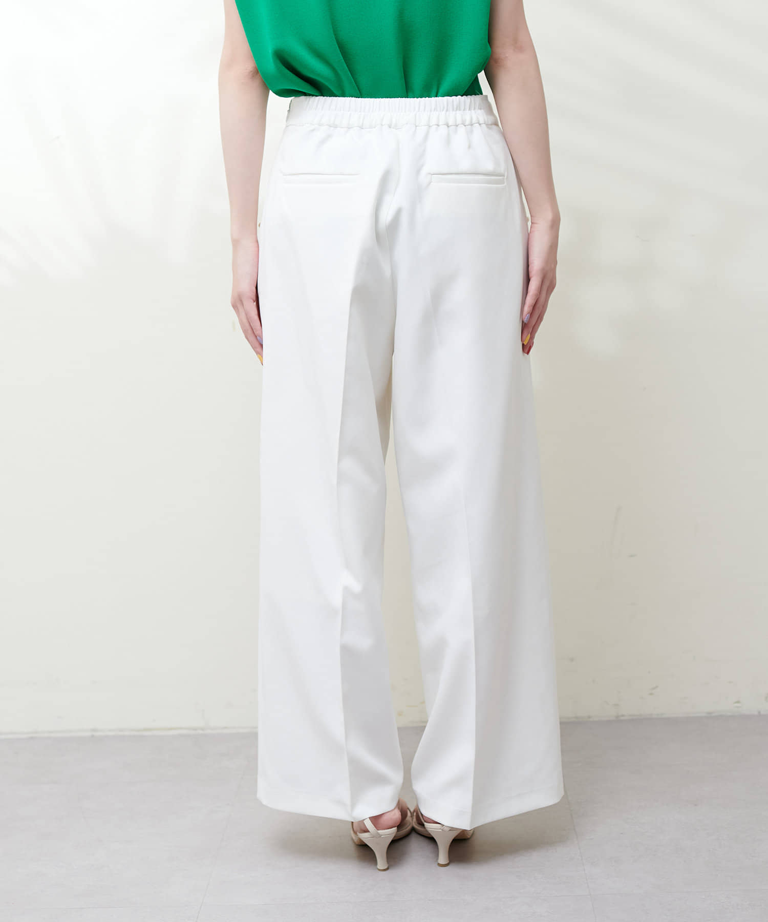タックとセンタープレスですっきりときれいなラインに仕上げ、オフィスでも活躍する1枚に。
