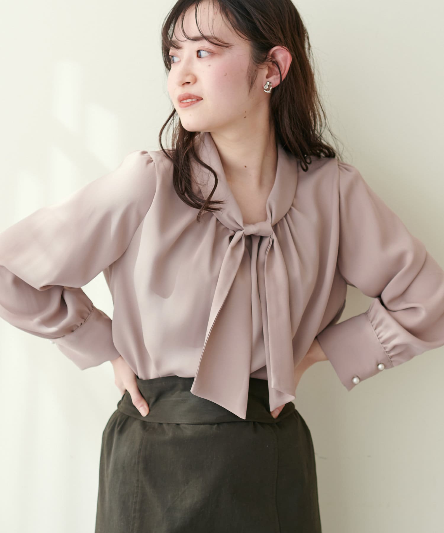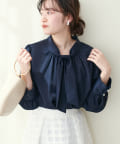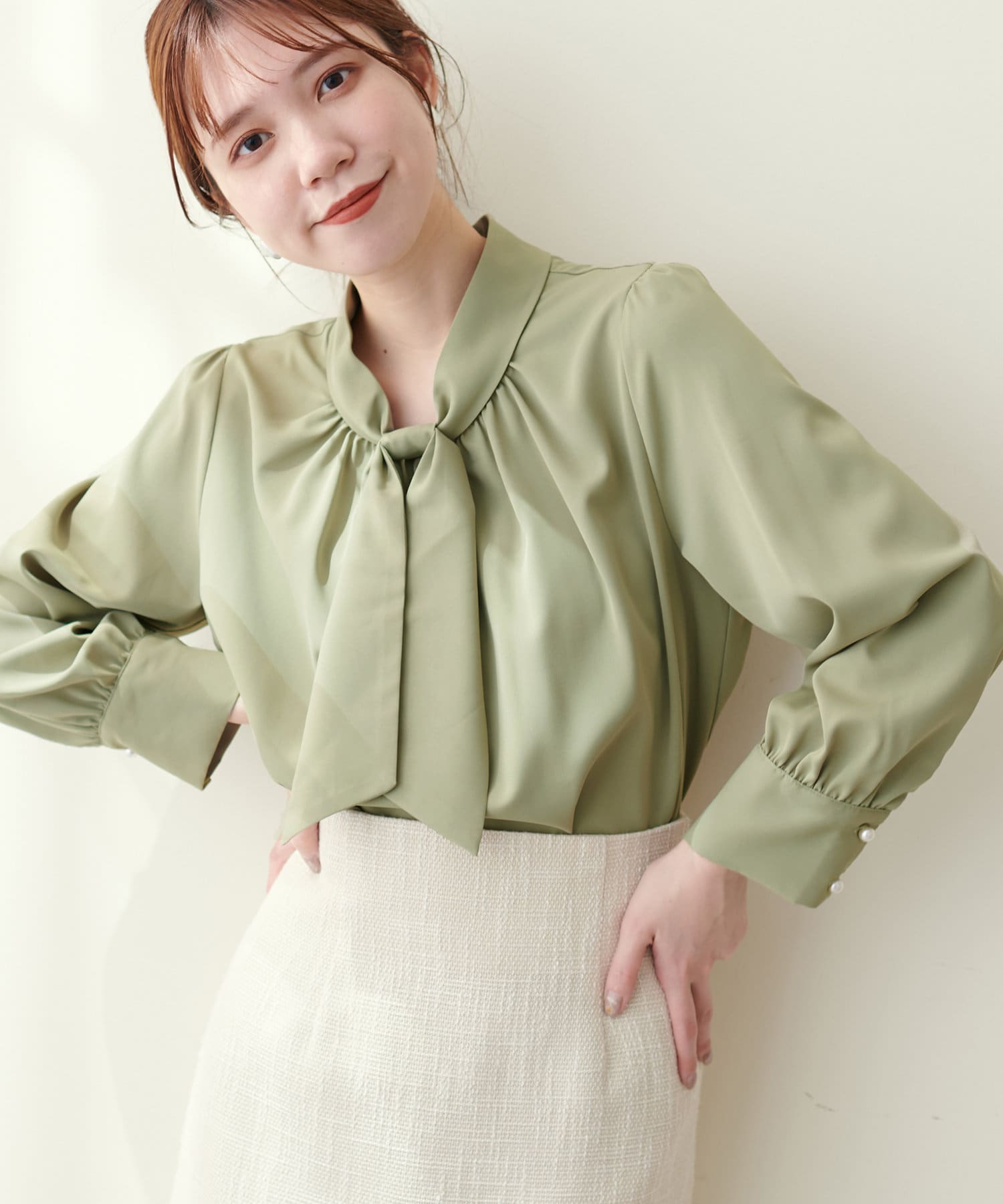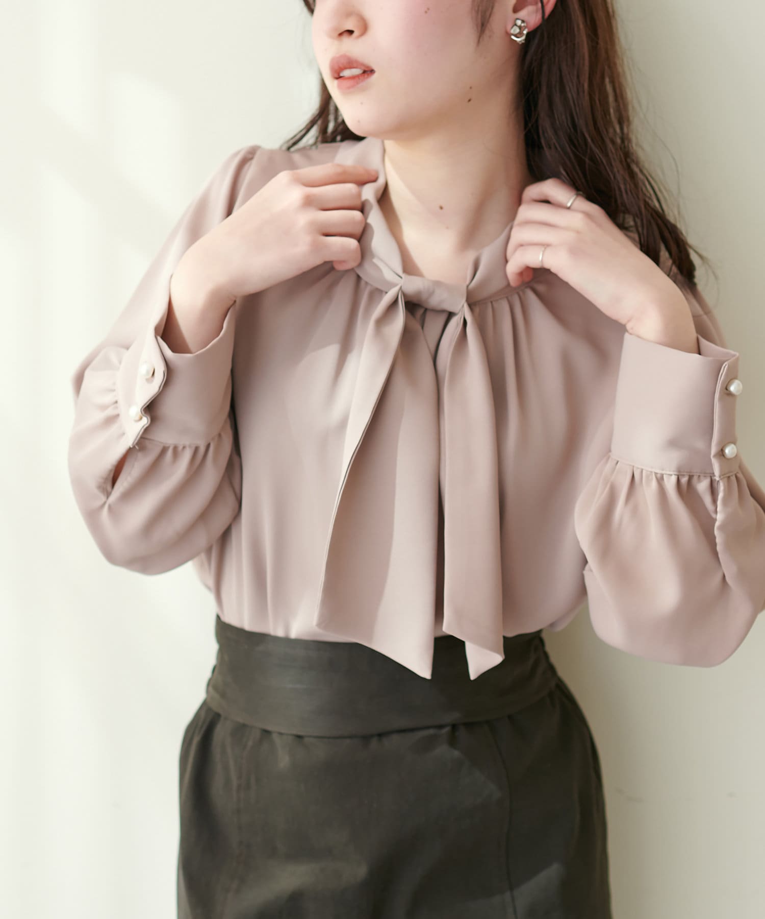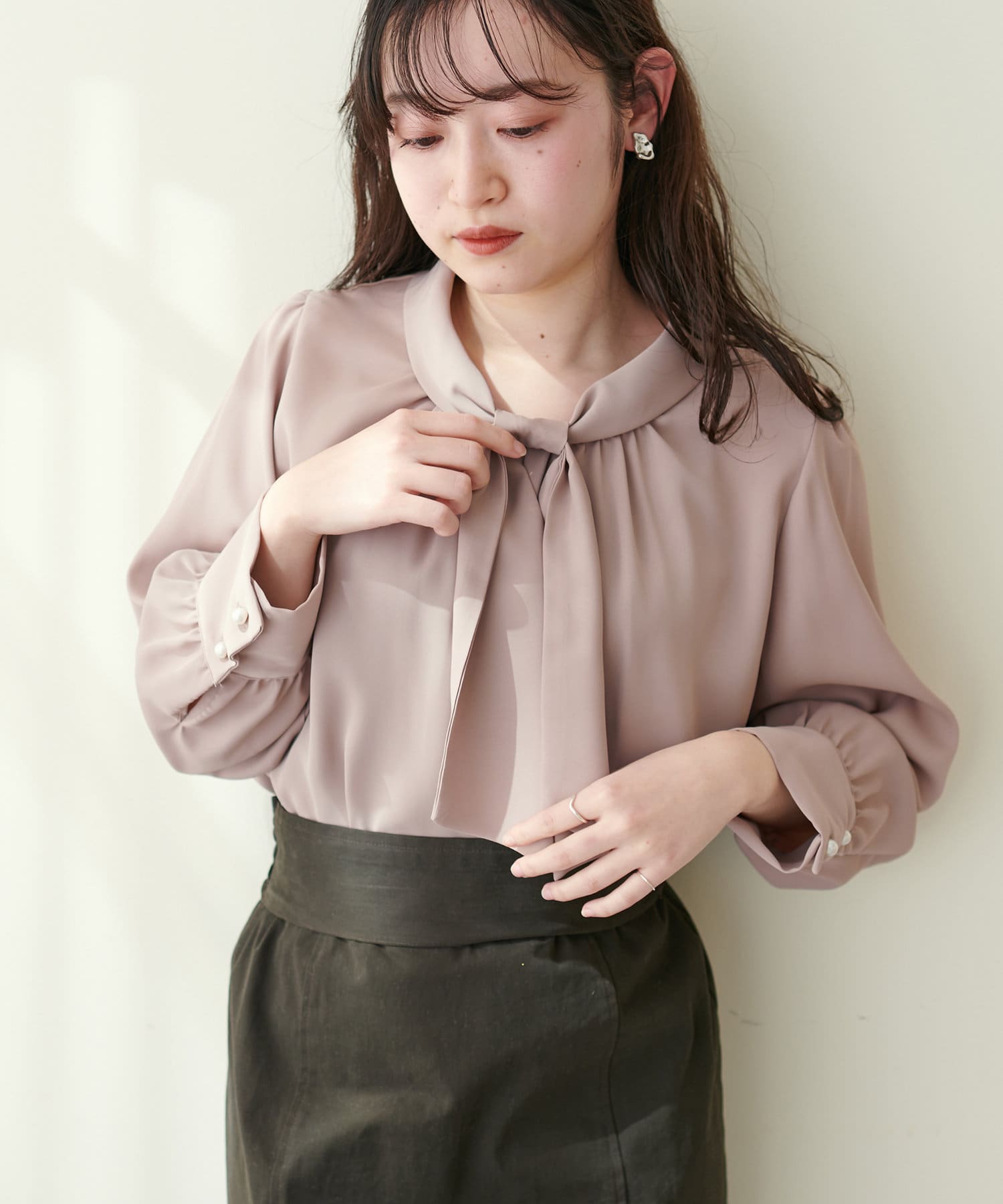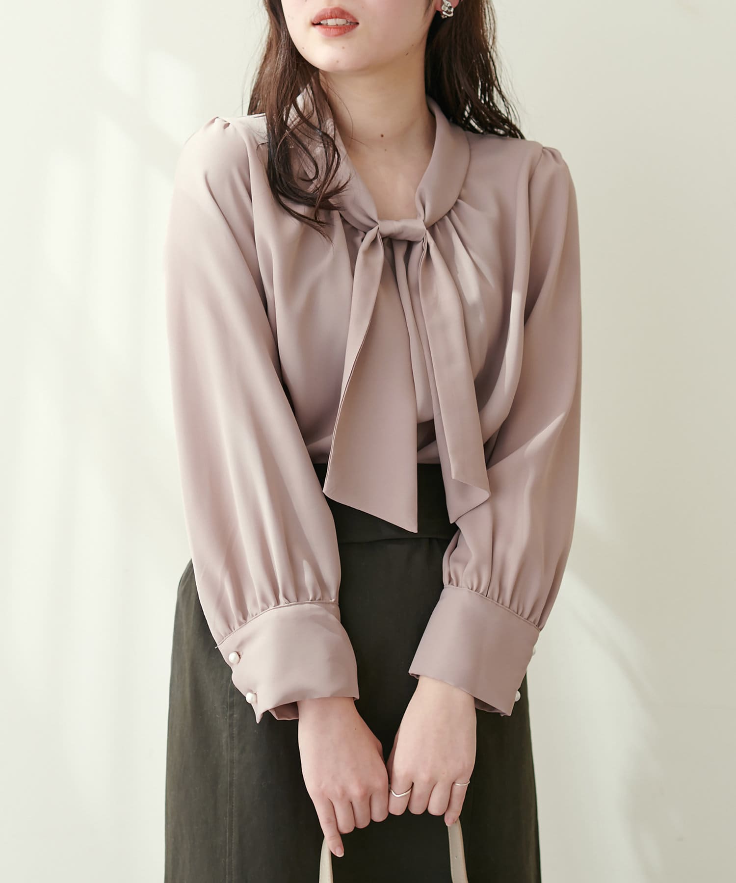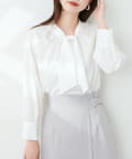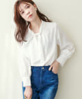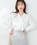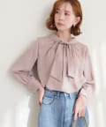 351310100 袖口パールノット結びボータイブラウス