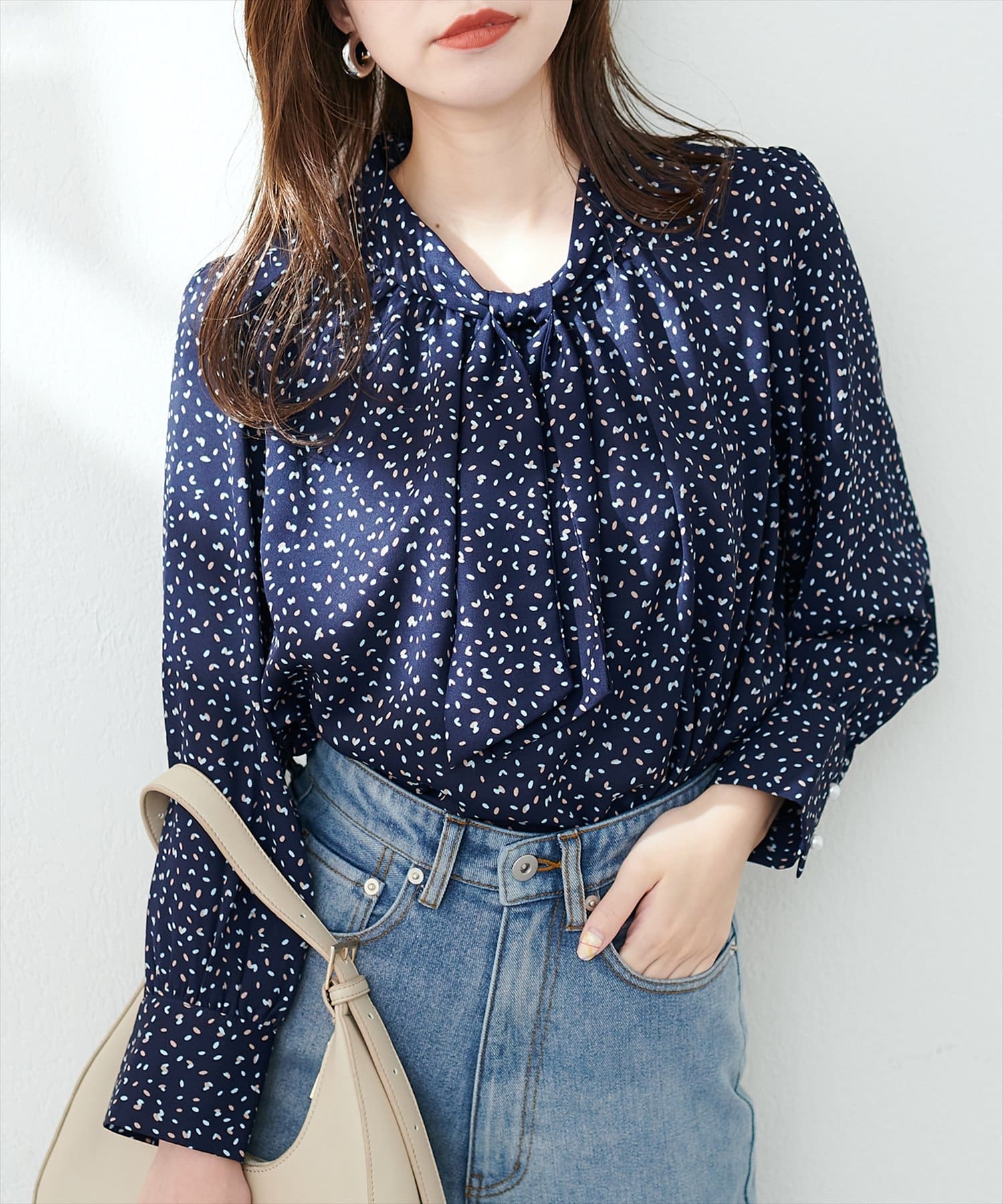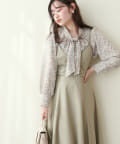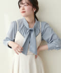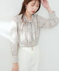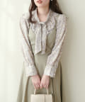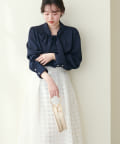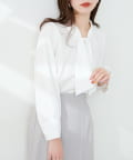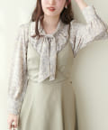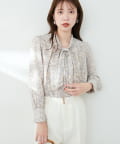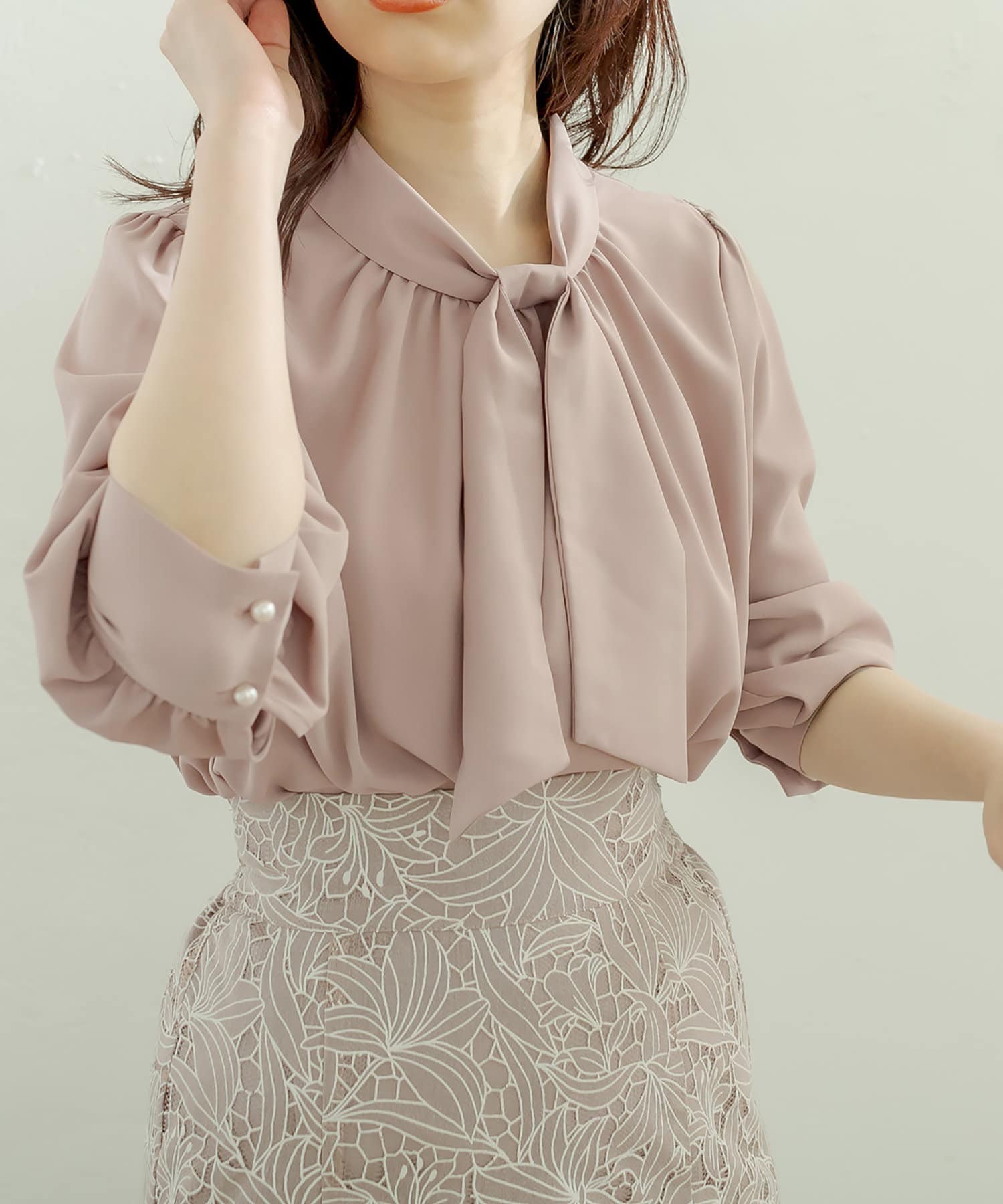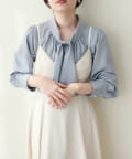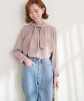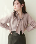 0322040220 袖口パールノット結びボータイブラウス