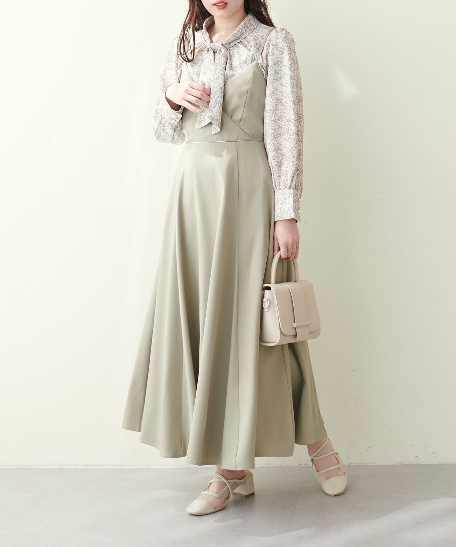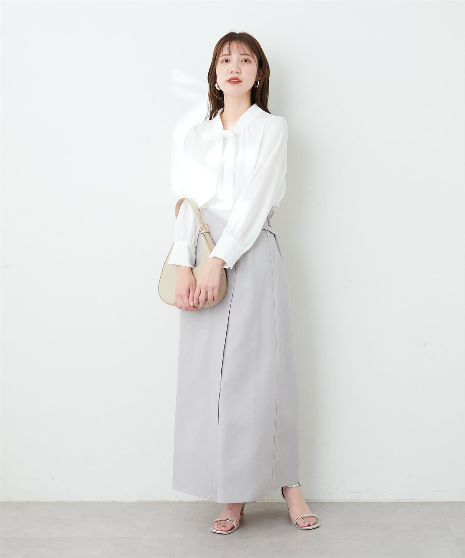 マーメイドシルエットやフレアラインのスカートにウエストインして頂くと、