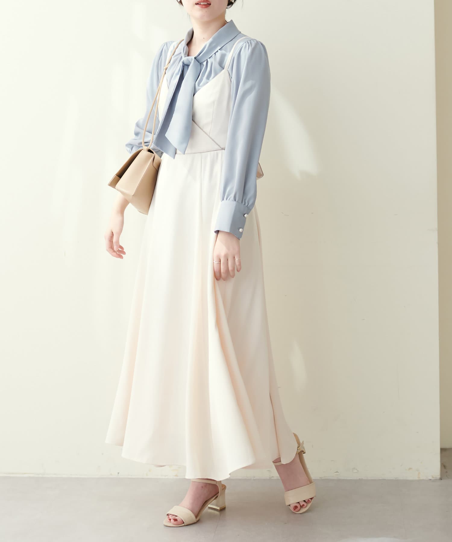 フロントのノット結びボータイがアクセントになり、