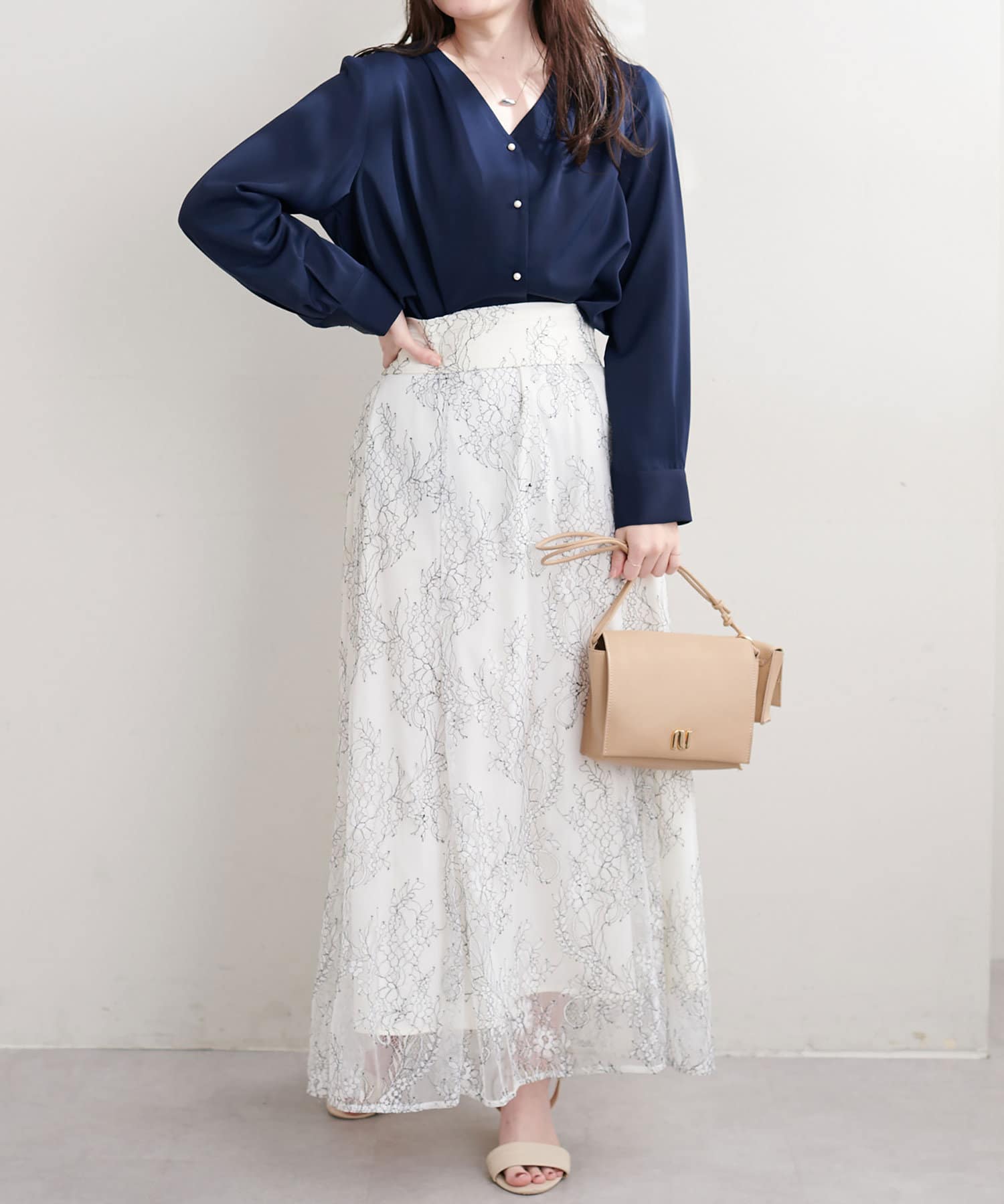 マーメイドシルエットやフレアラインのスカートにウエストインして、