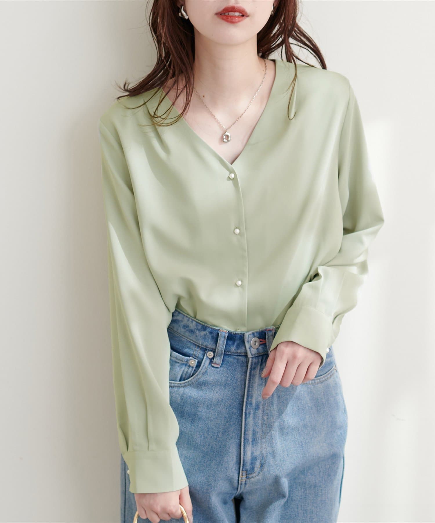 #パール #ブラウス #長袖ブラウス #キレイめ #オフィス