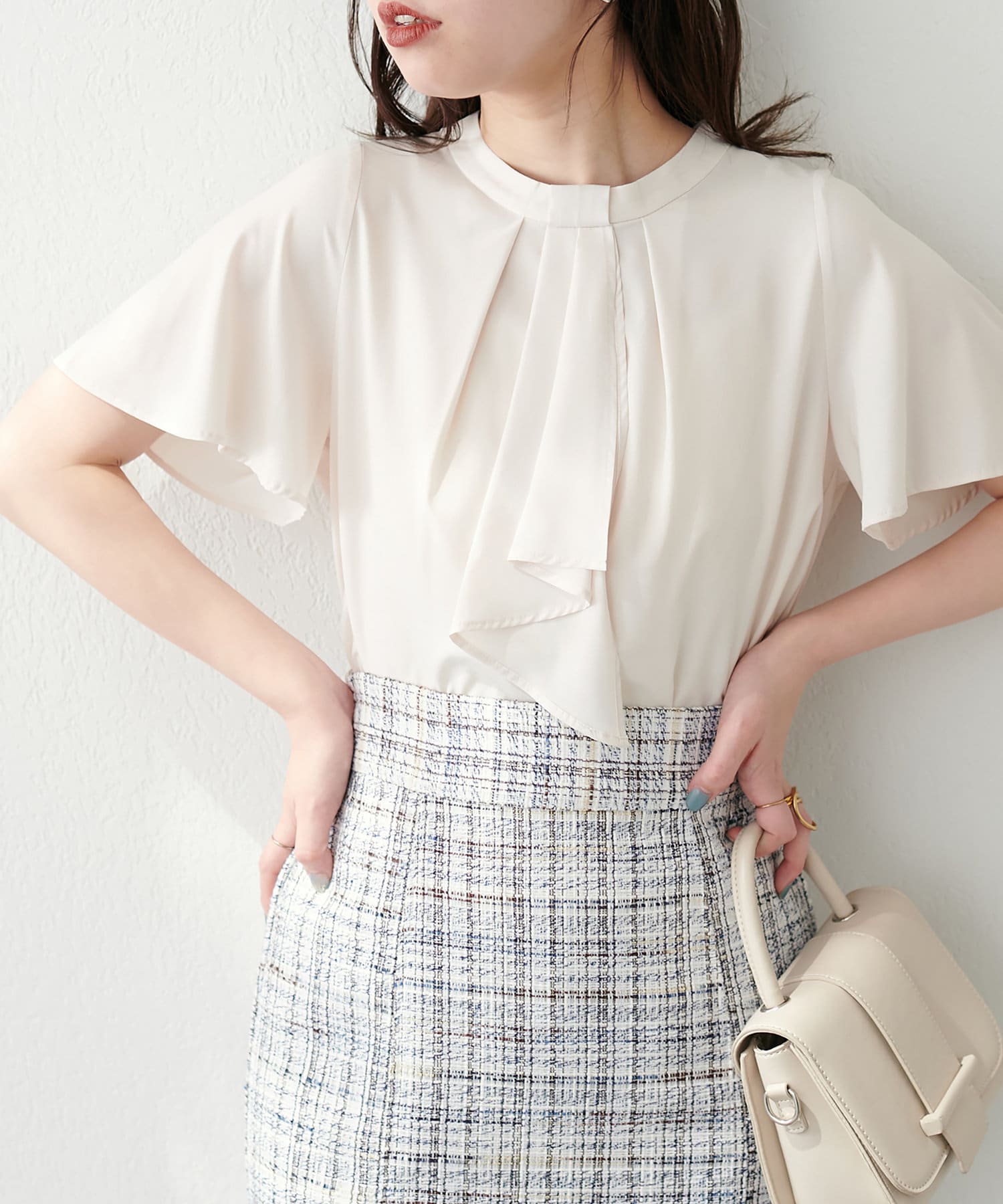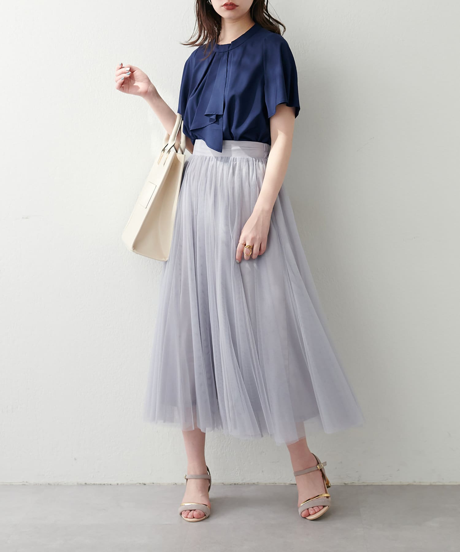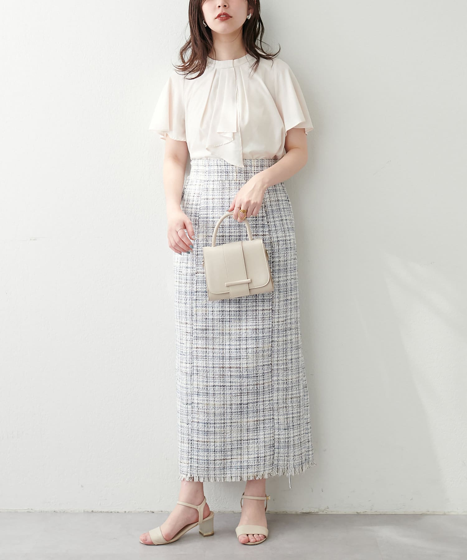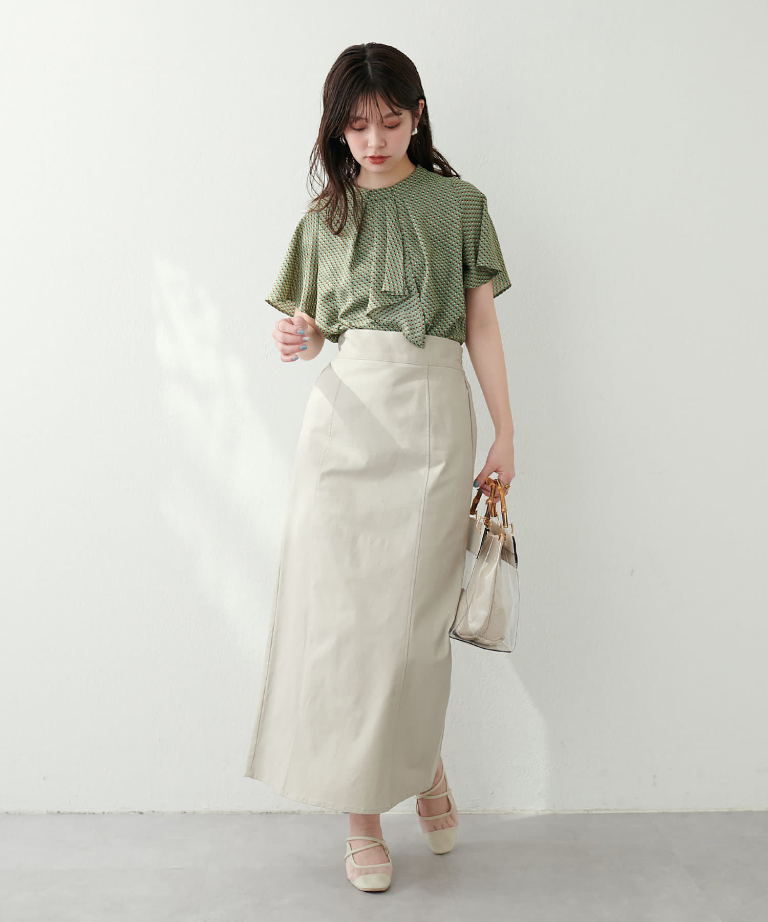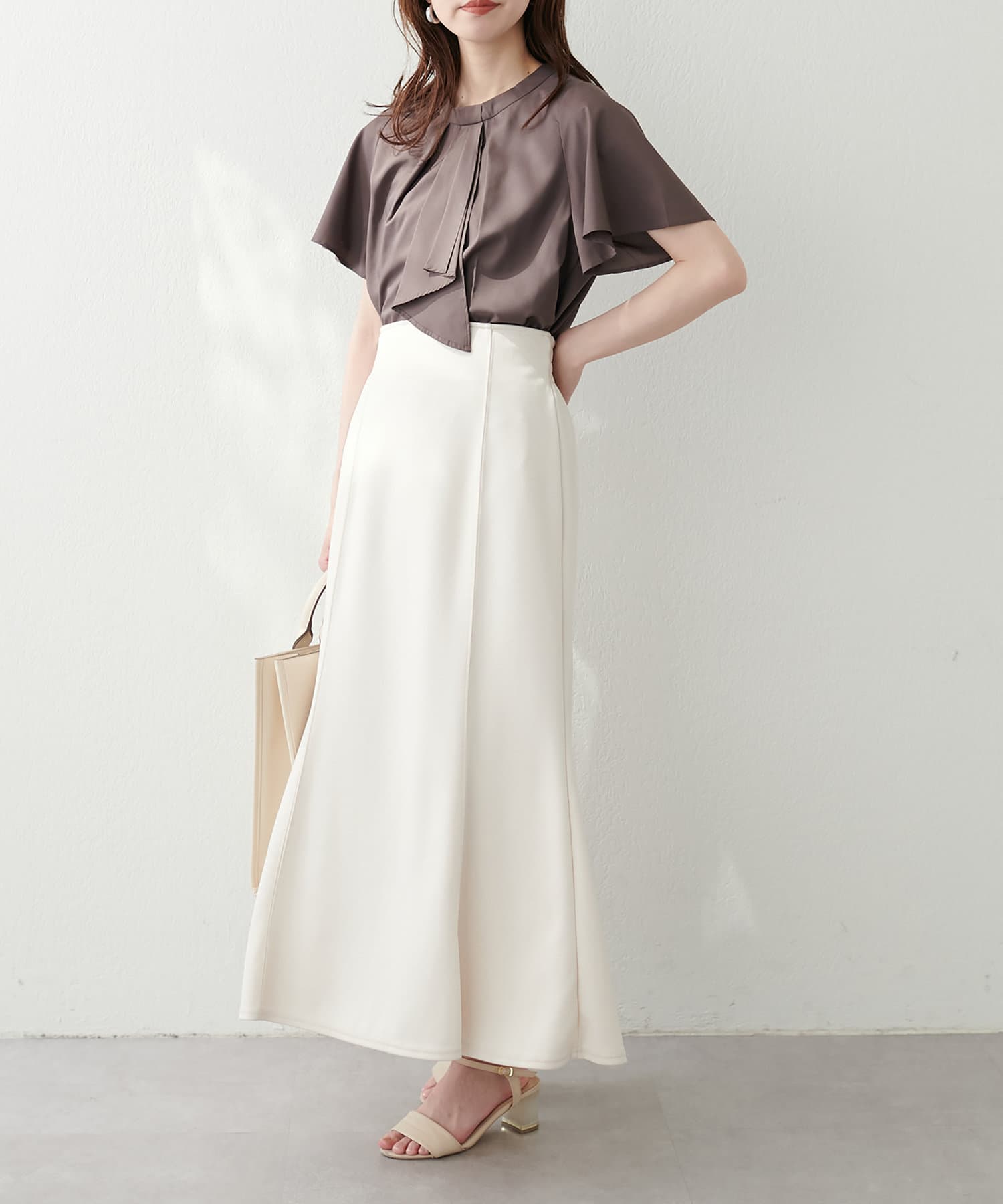 マーメイドスカートやトレンドのIラインのスカートにウエストインして頂くと、