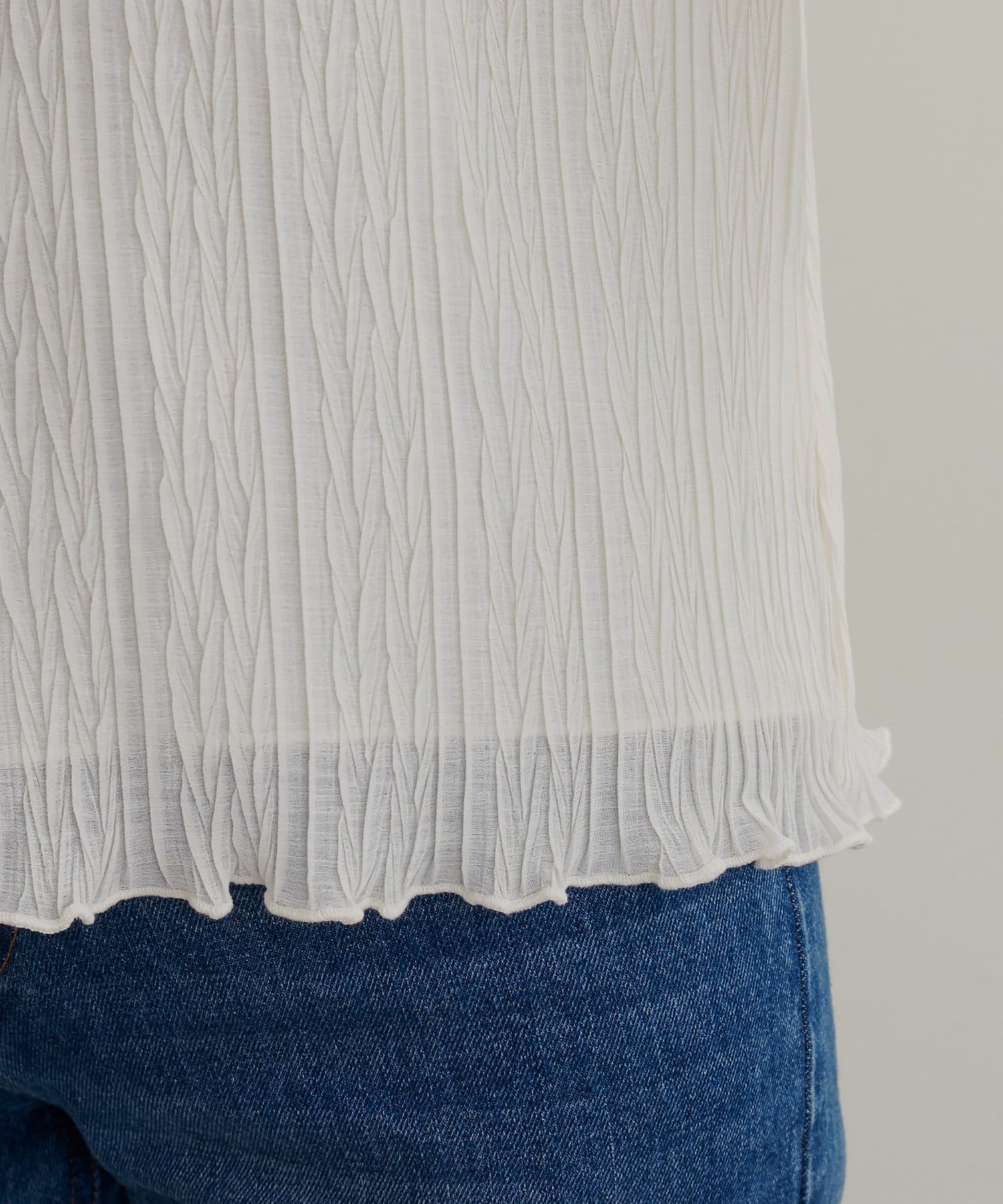 ややシアー感のある生地を採用し、華奢なキャミソールやタンクトップ合わせで、