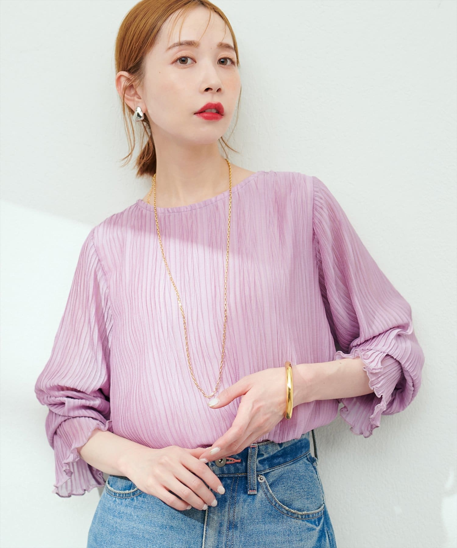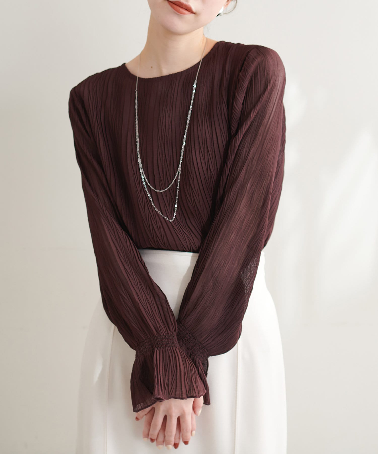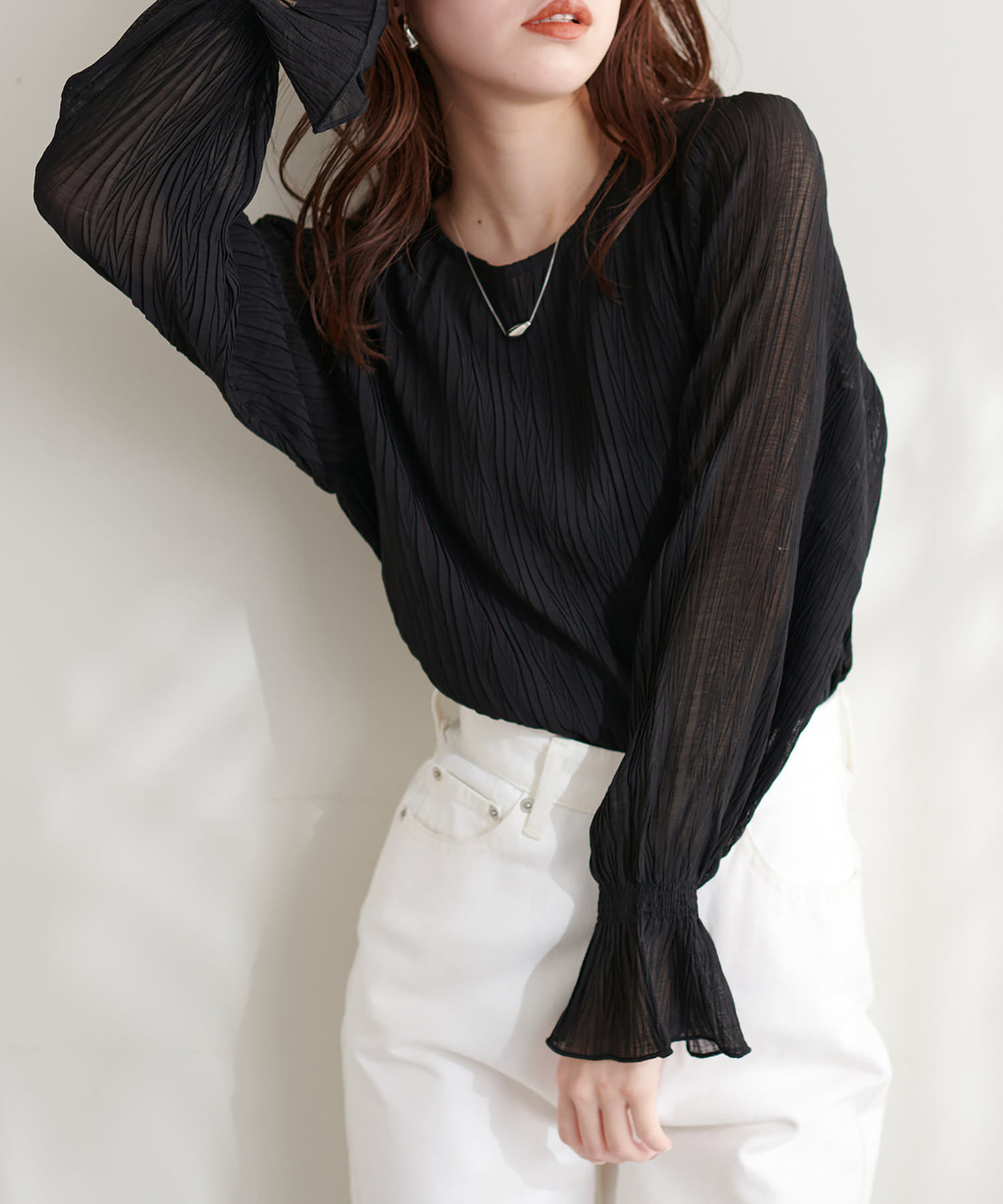 プリーツ素材が柔らかに揺れる大人レディブラウス◎