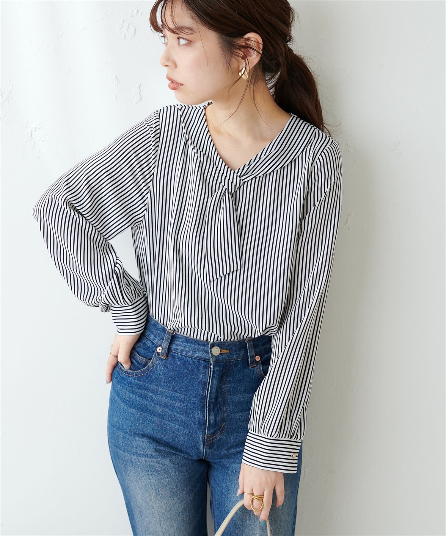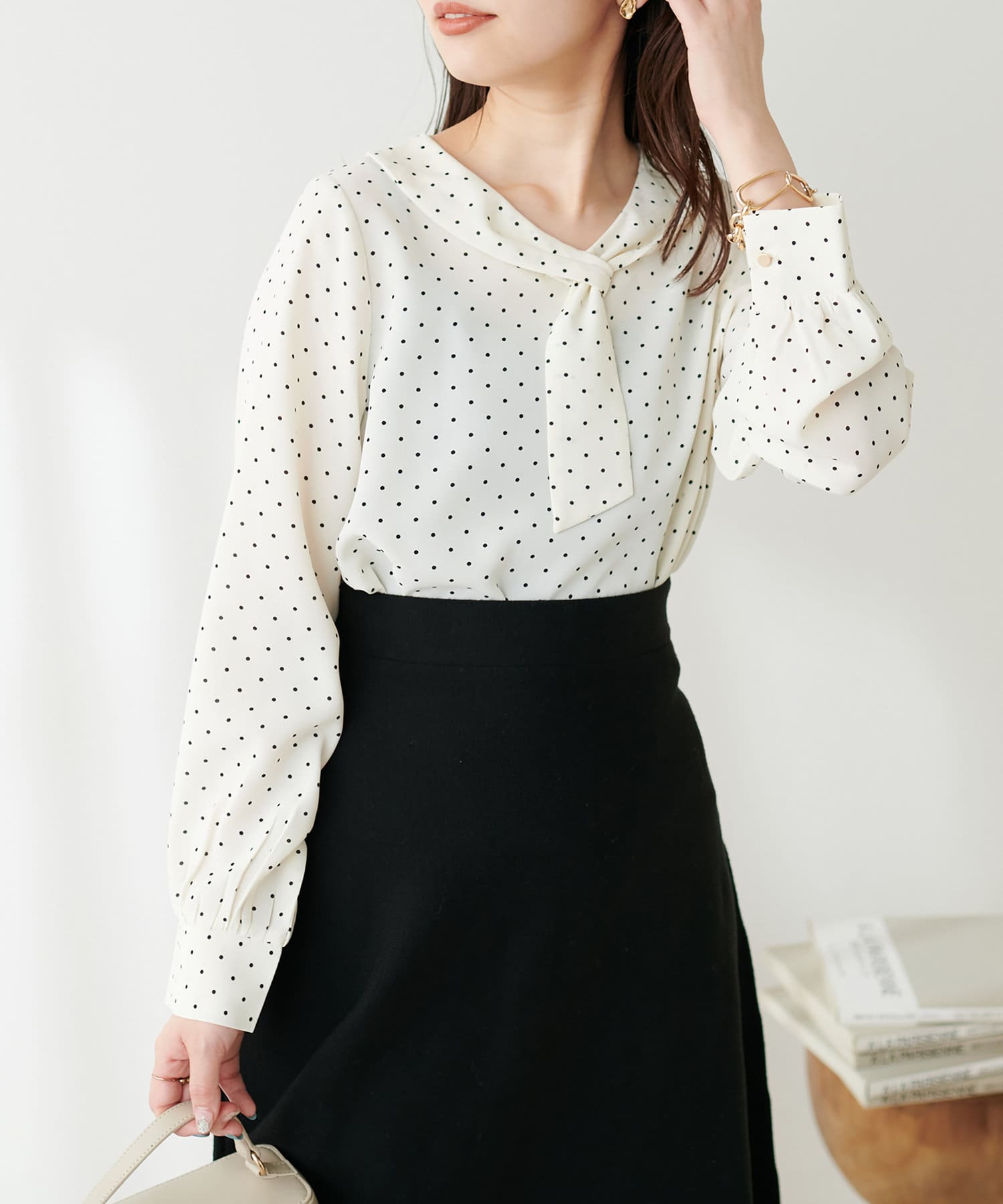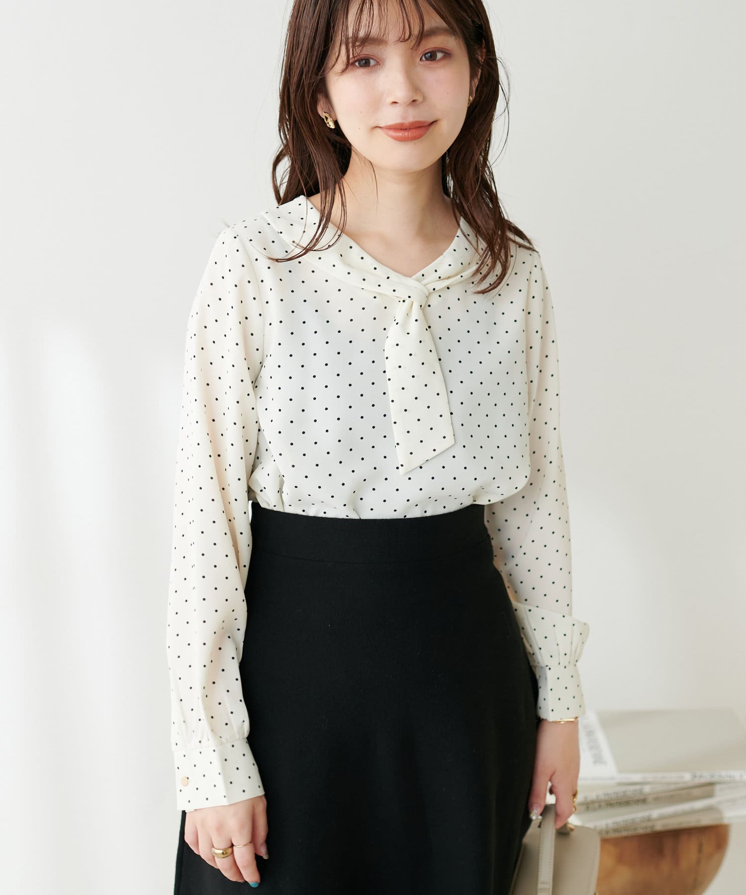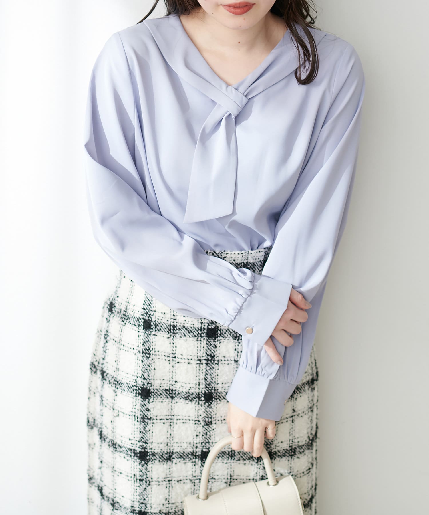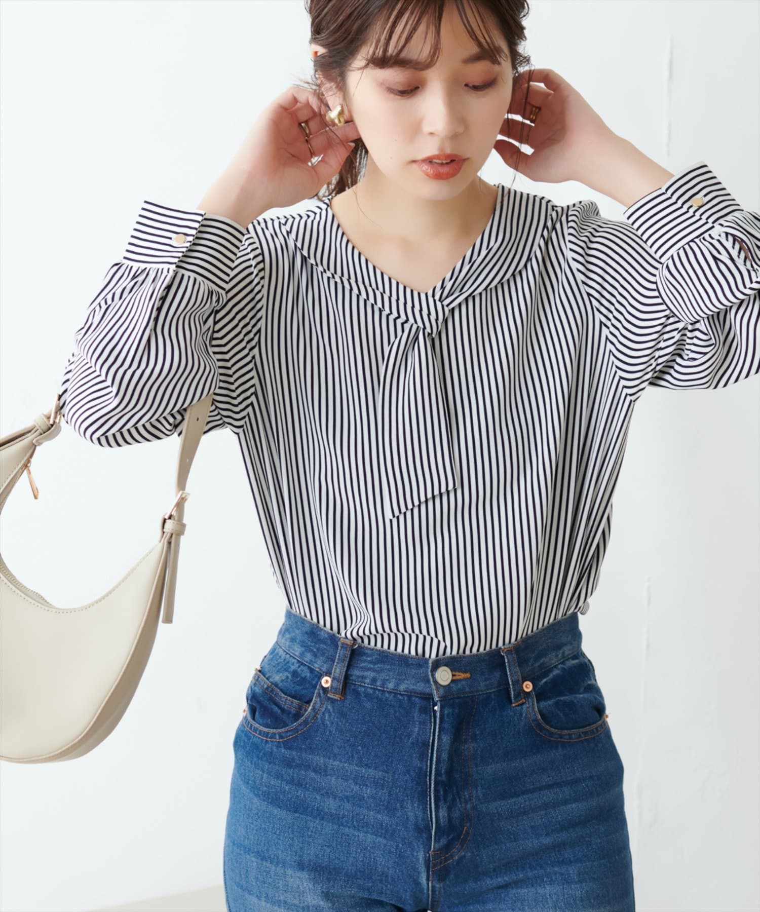 マーメイドシルエットやフレアラインのスカートにウエストインして、大人レディなコーデやオフィスワークにはもちろん、デニムなどカジュアルなアイテムと合わせても◎