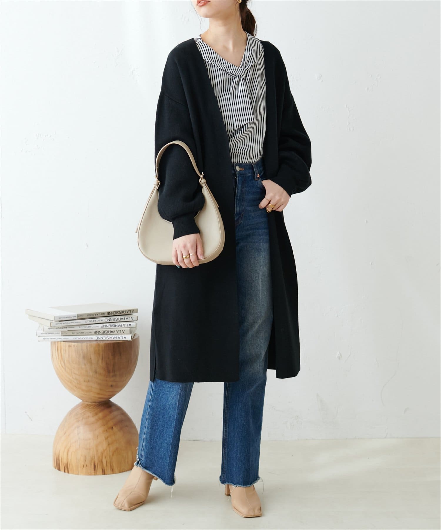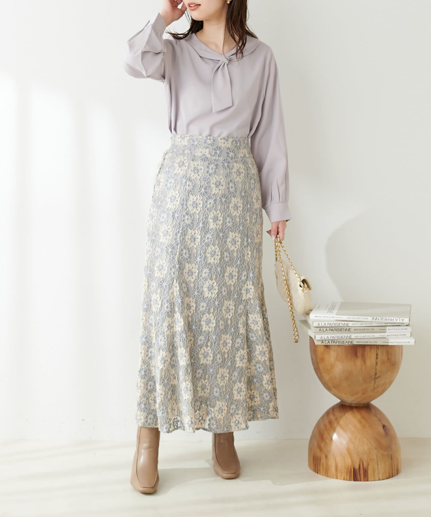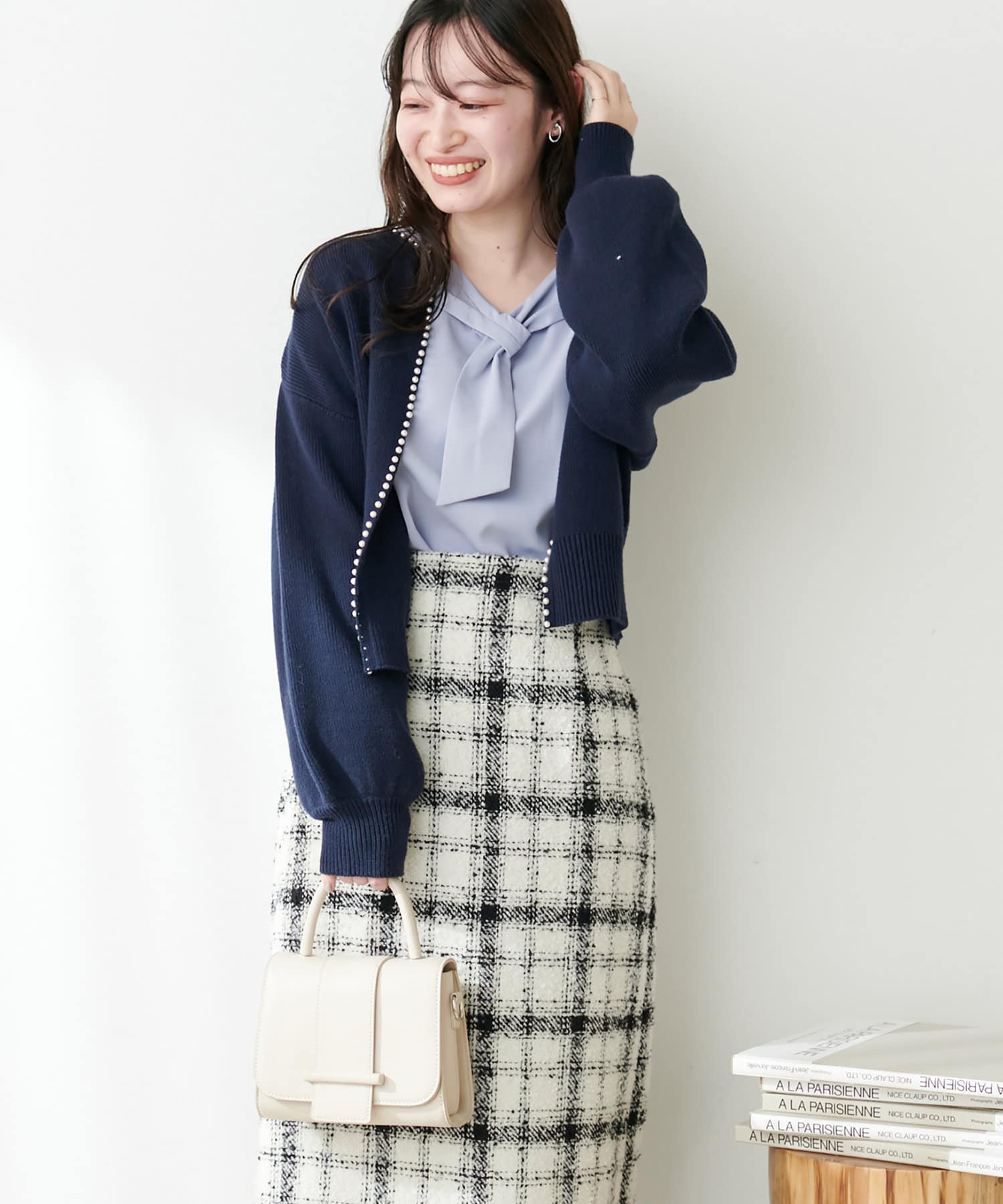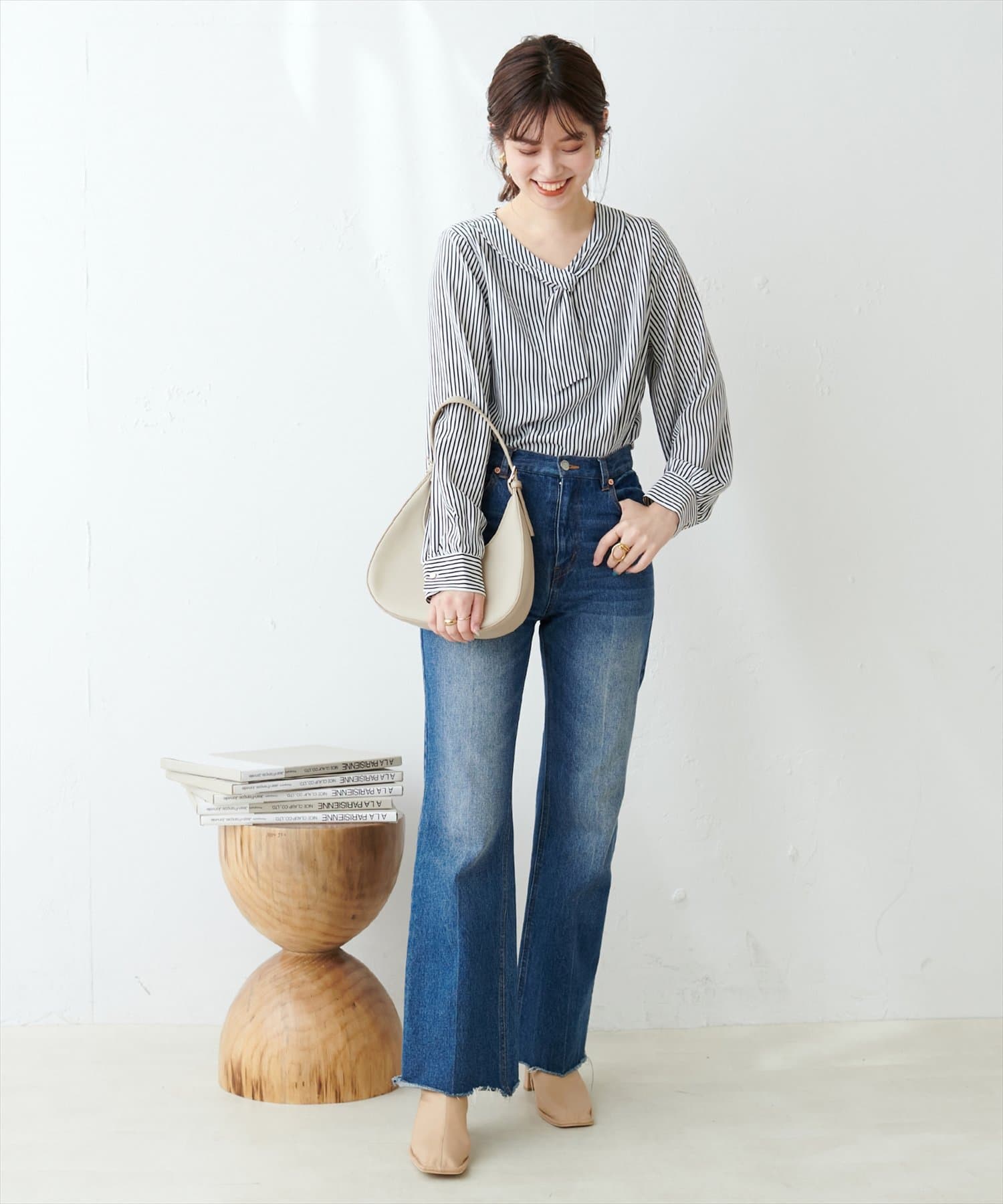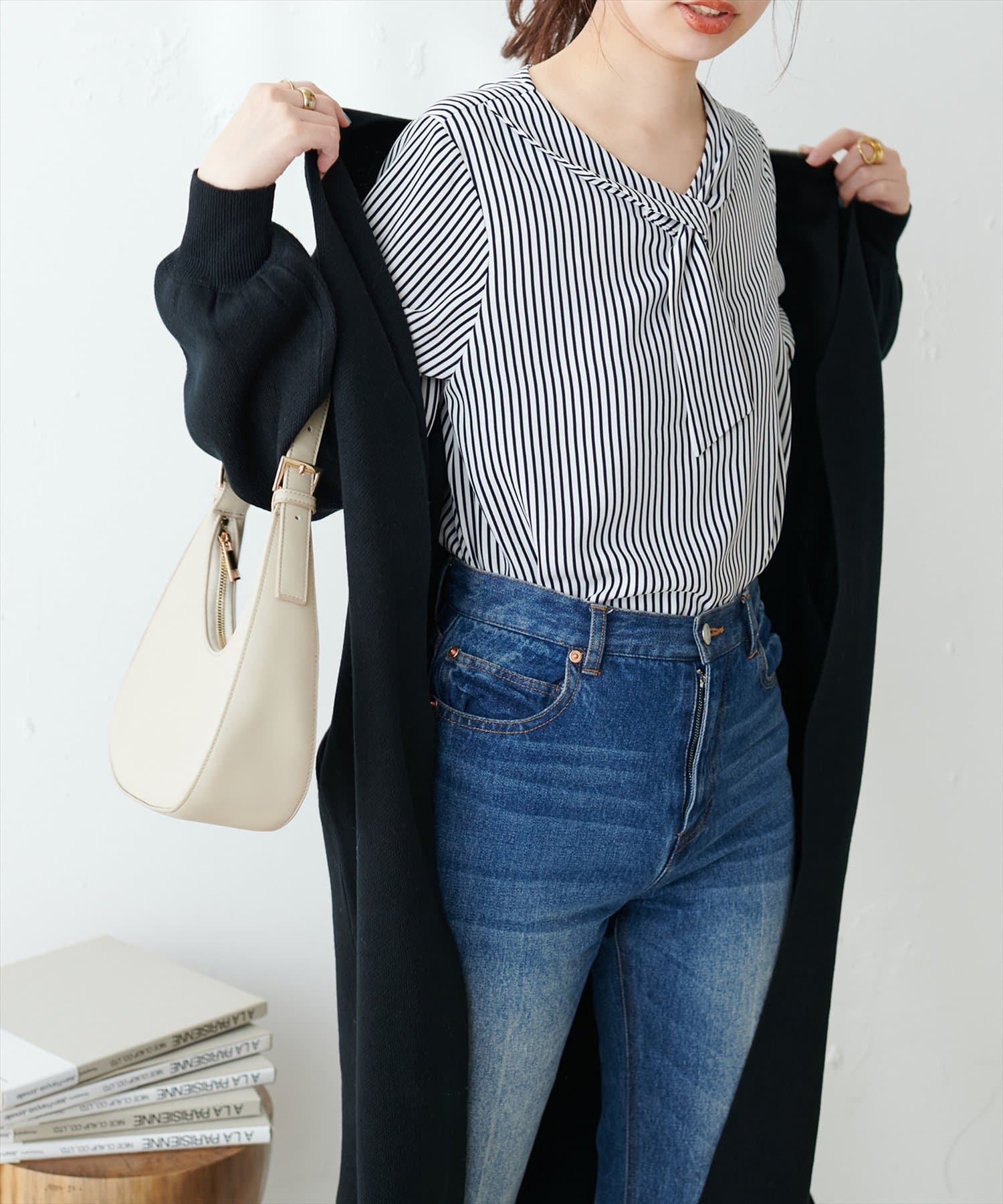 マーメイドシルエットやフレアラインのスカートにウエストインして、大人レディなコーデやオフィスワークにはもちろん、デニムなどカジュアルなアイテムと合わせても◎