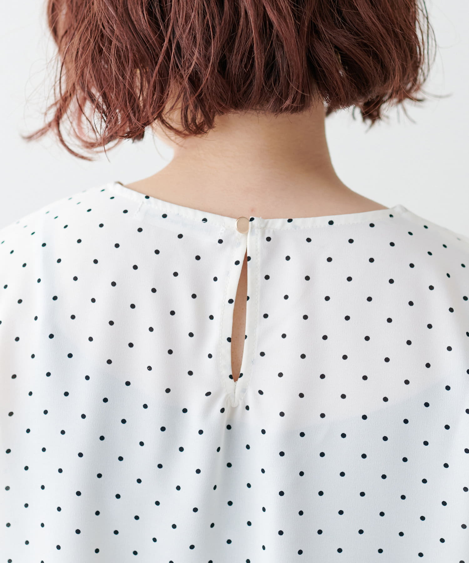 デコルテラインを女性らしくヘルシーに見せてくれる程よい開き具合のネックラインで、お仕事にもぴったりです。