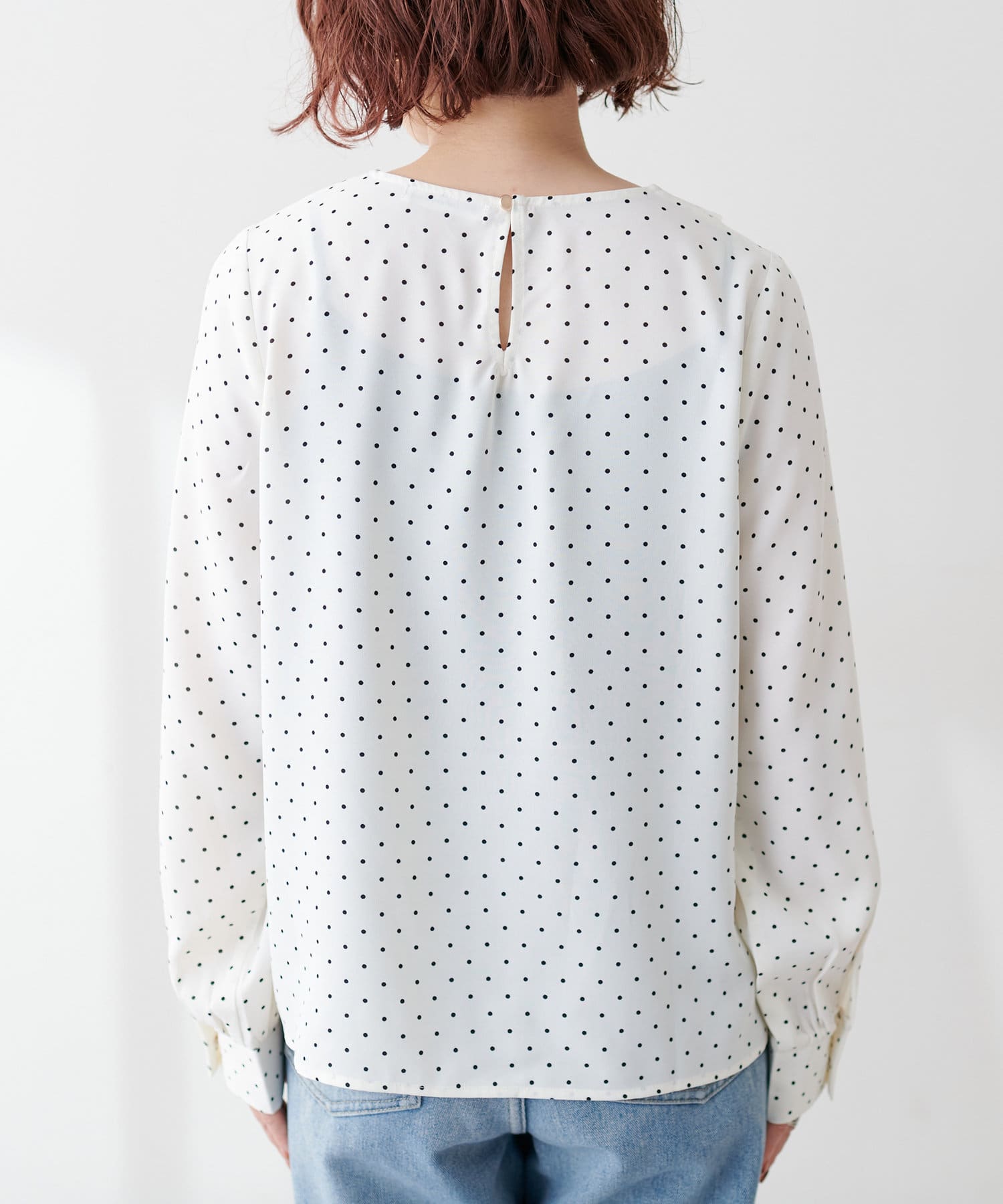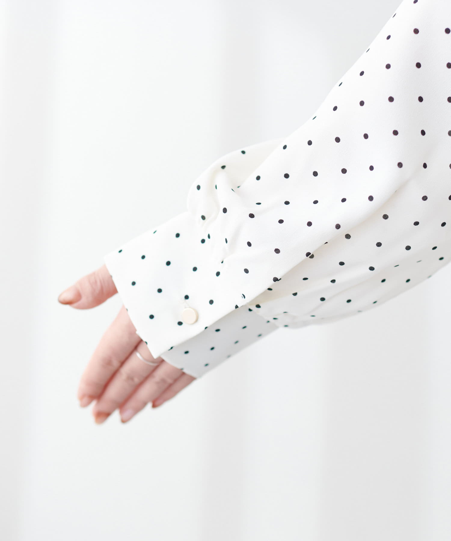 袖口のギャザーとさり気ない金釦が、手元を美しく見せてくれます。