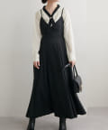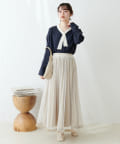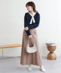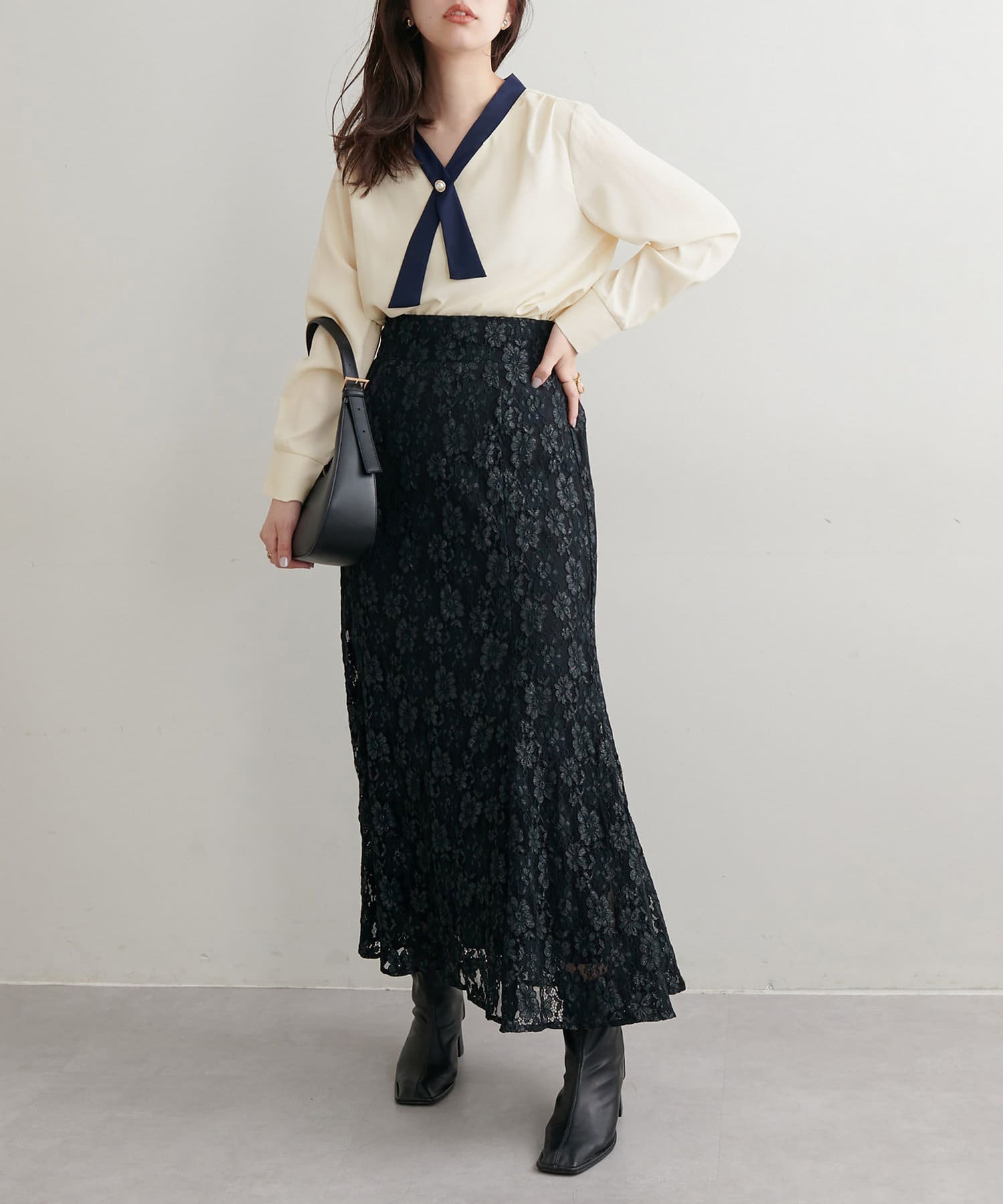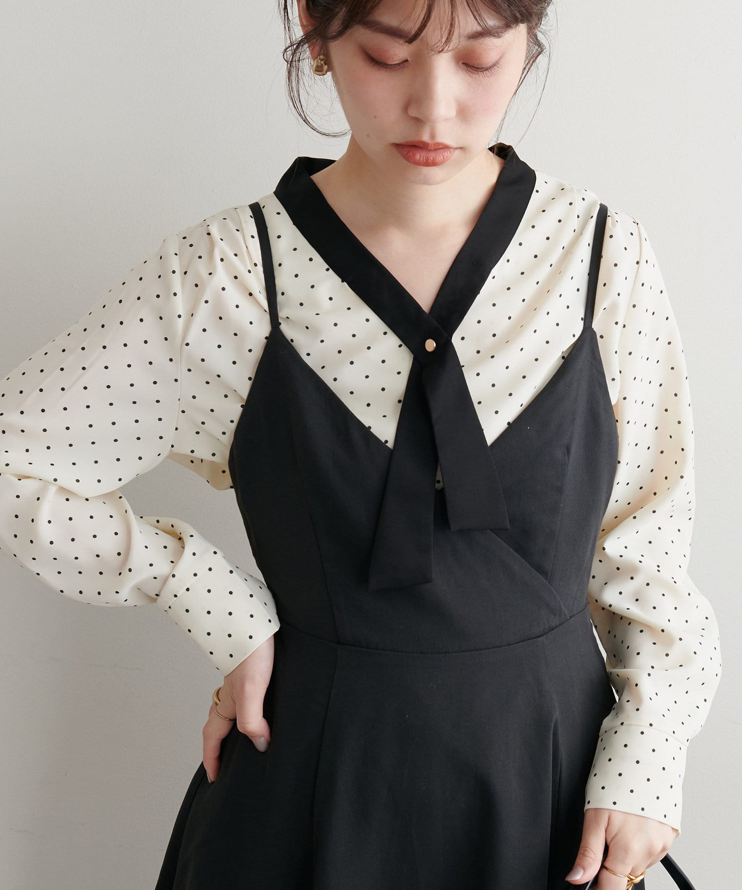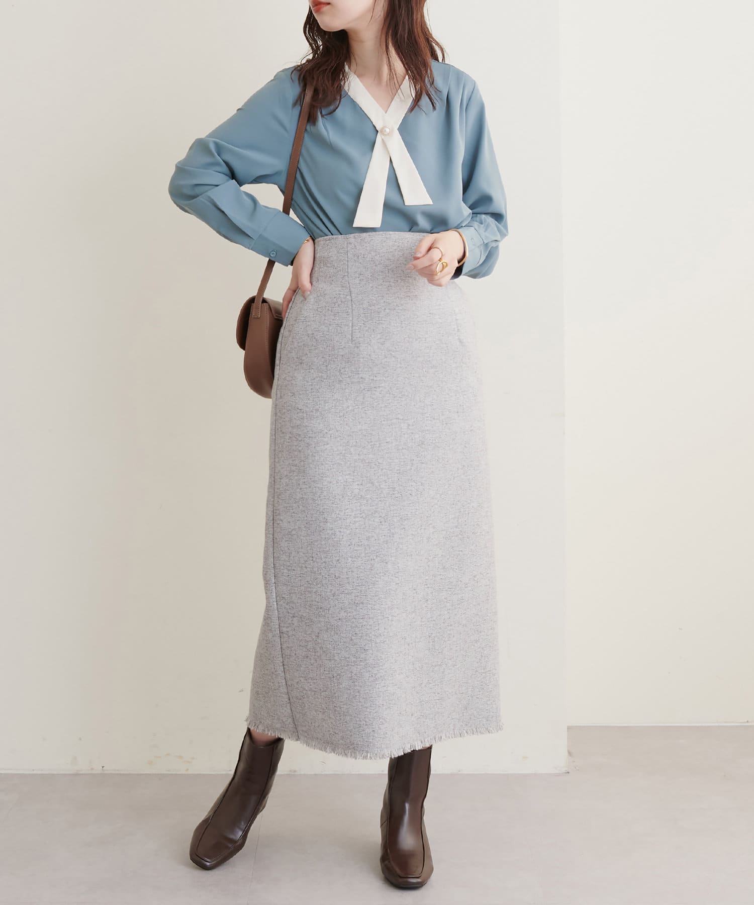 クロスボータイが洗練された印象に仕上げてくれるのでハイウエストのロングスカートやジャンパースカート、
