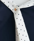 こだわりの胸元で留めるボタンは、取り外しが可能で2WAYなっておりシーンや気分によって変えてお楽しみ頂けます。
