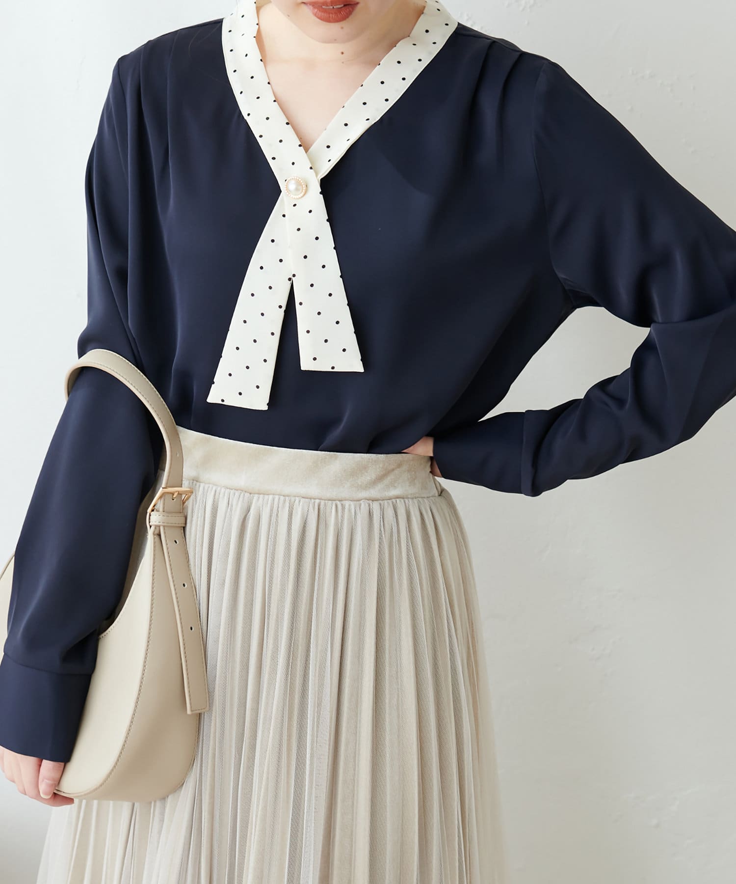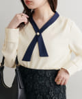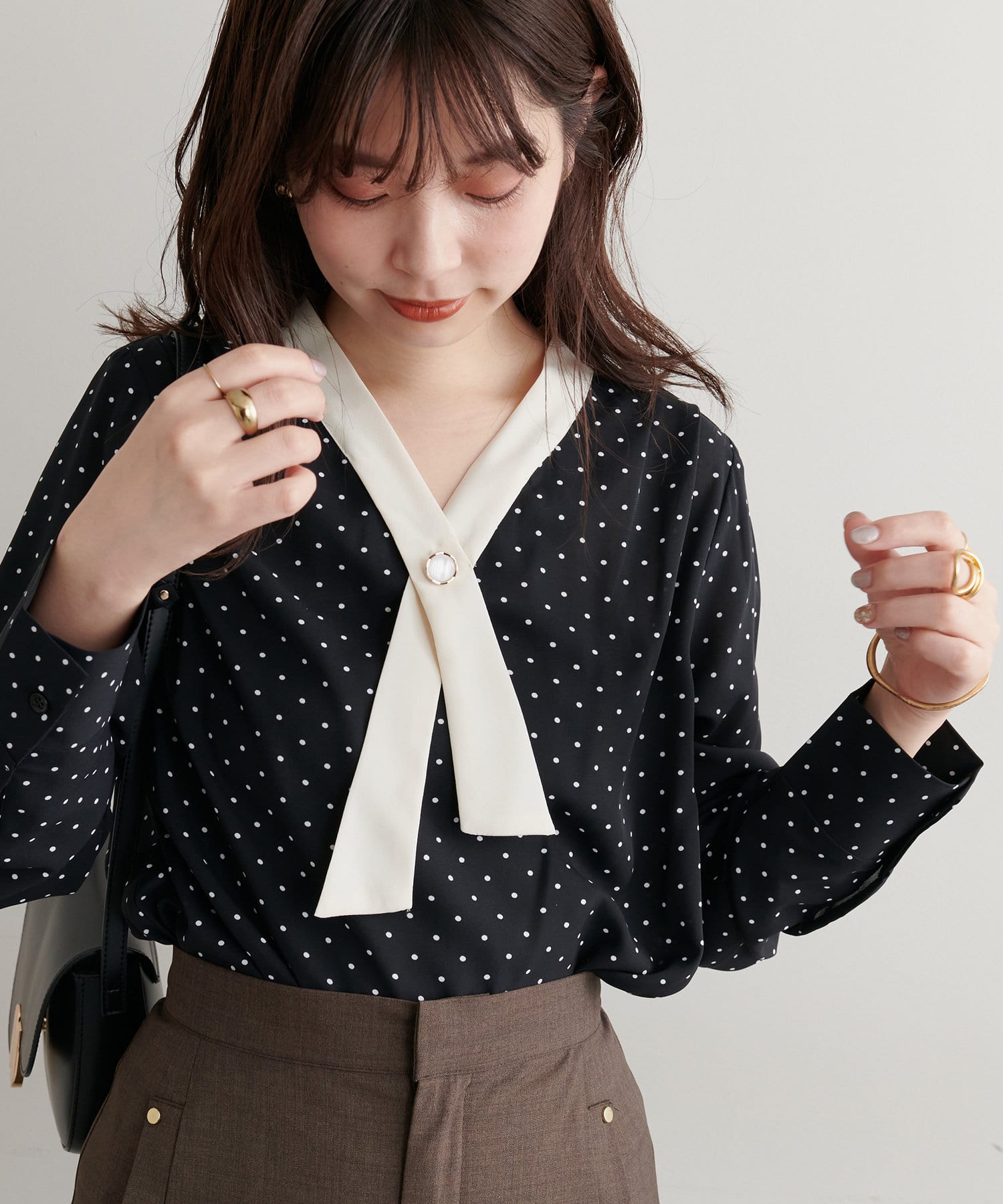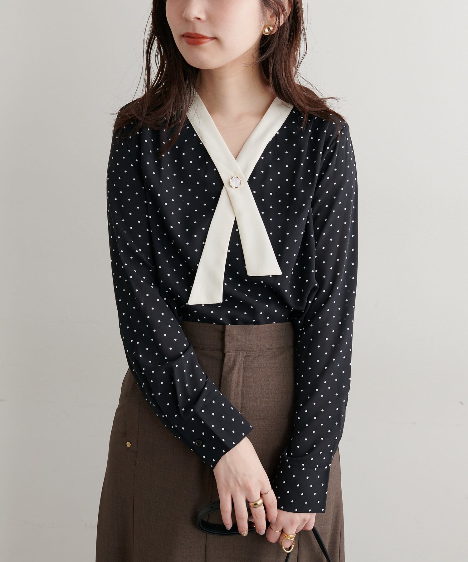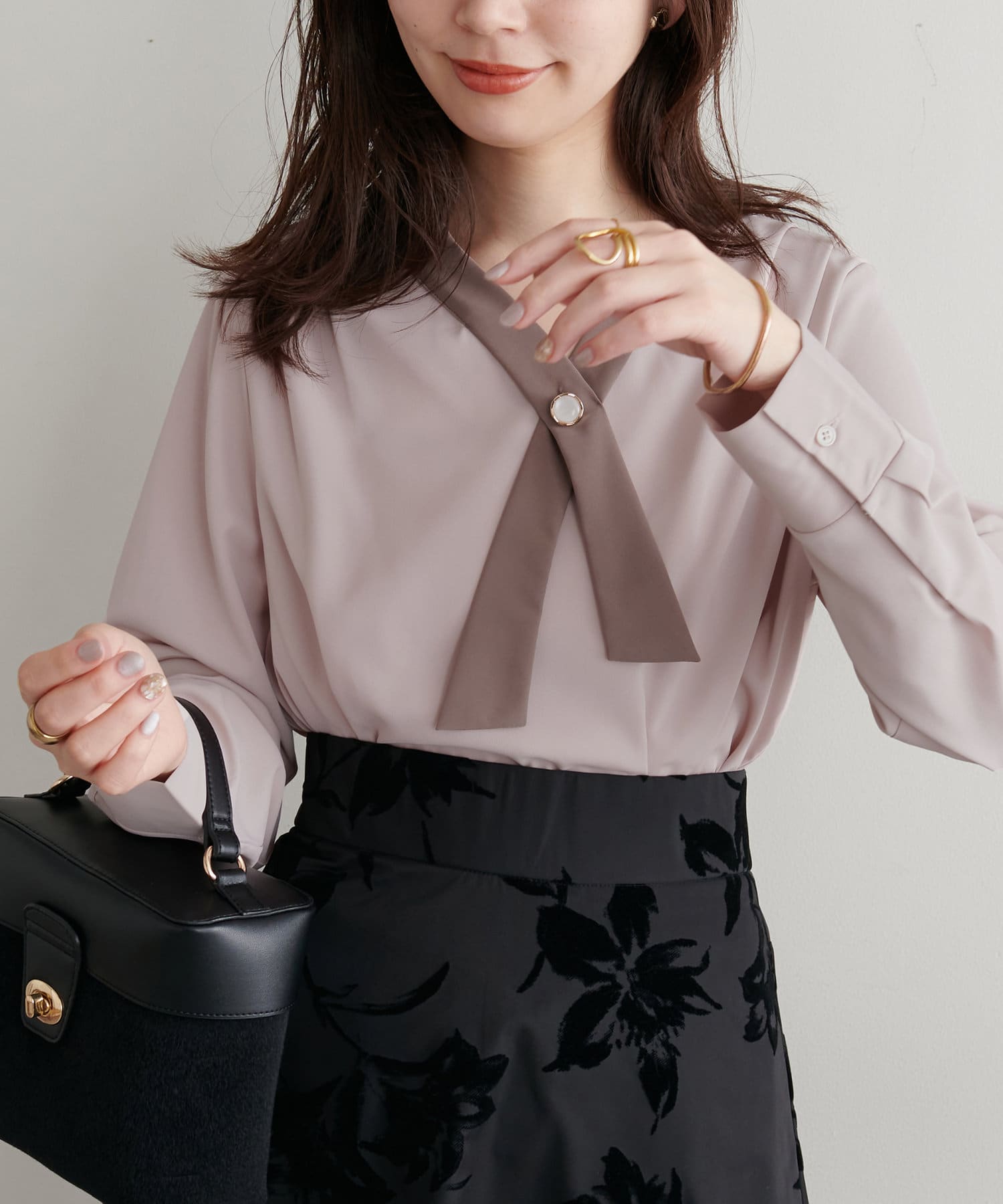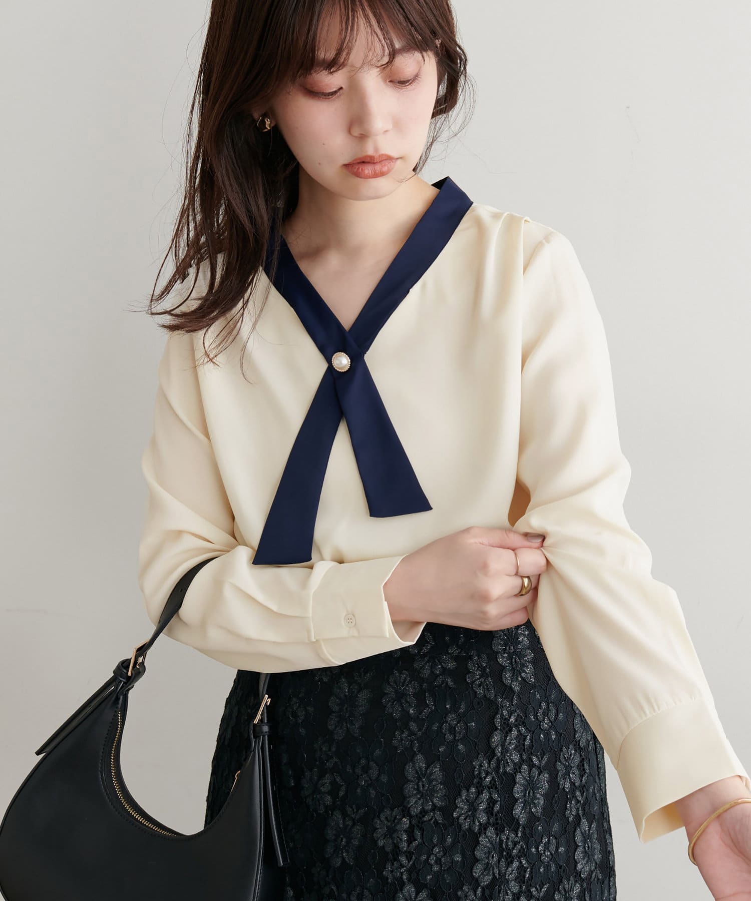0322040590 osonoパールリバー釦クロスボータイブラウス