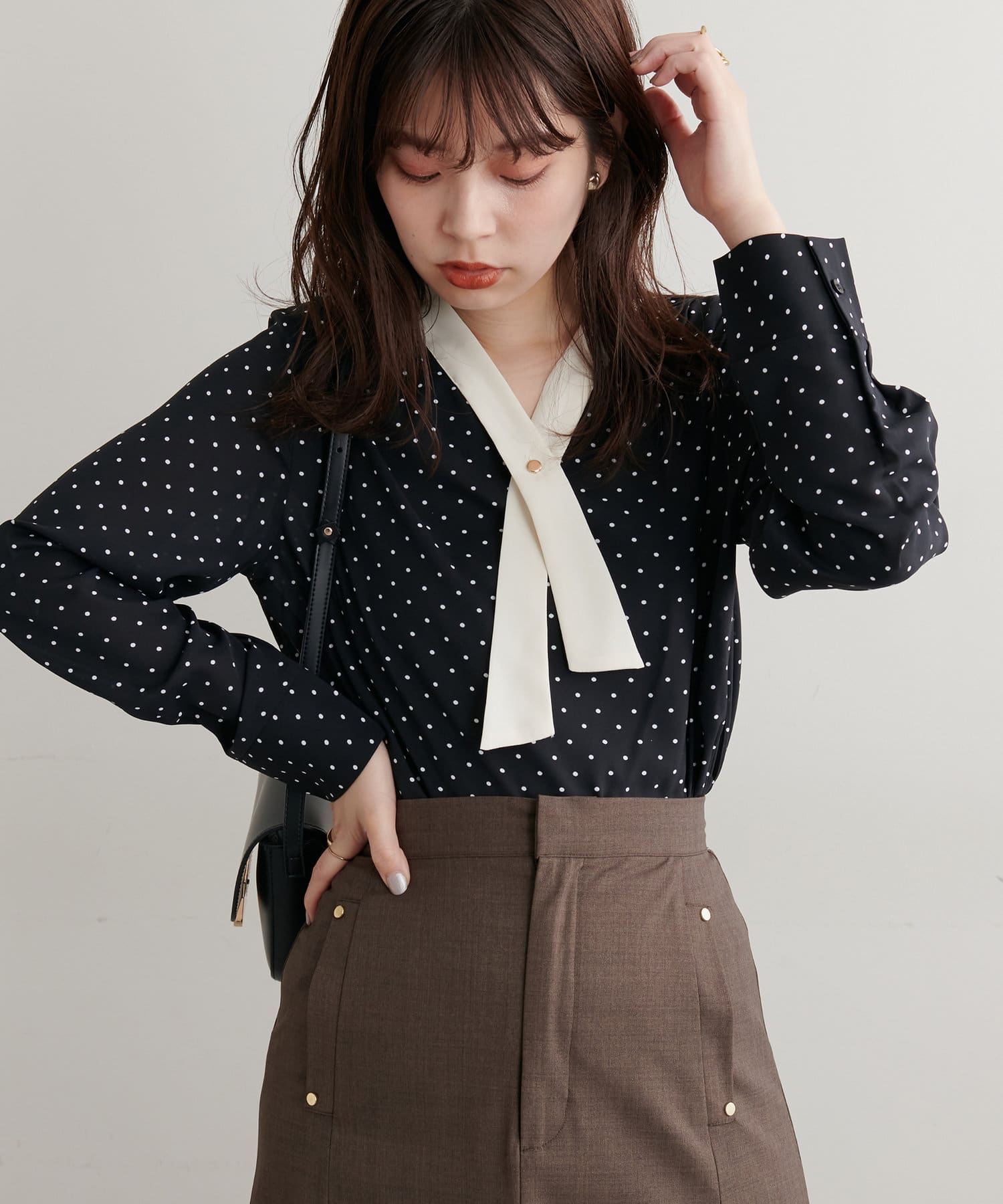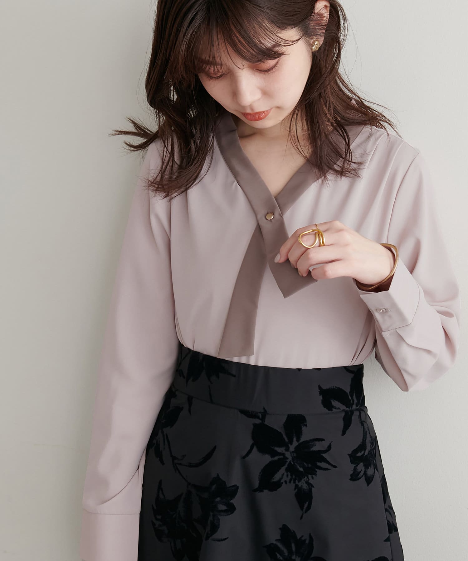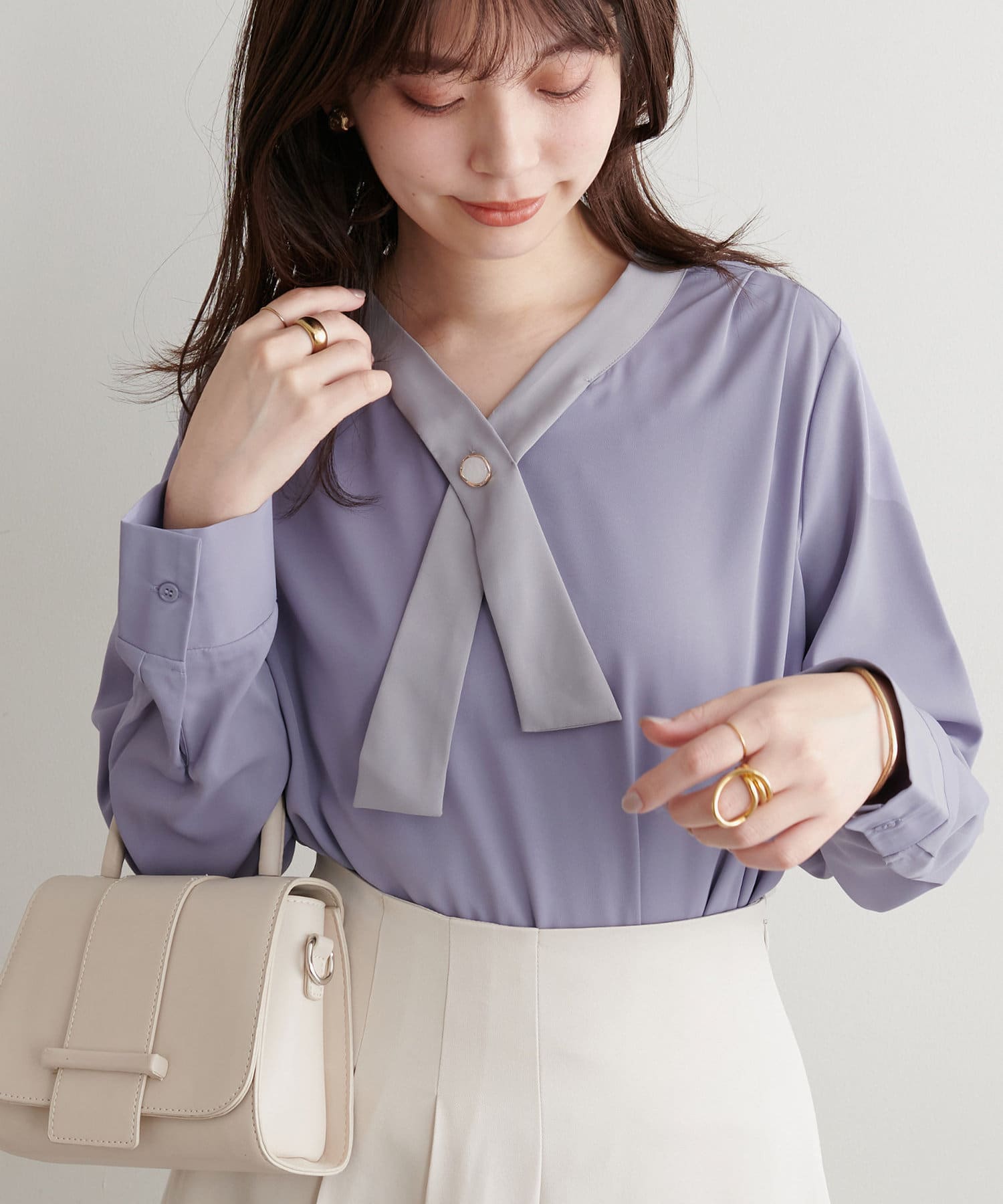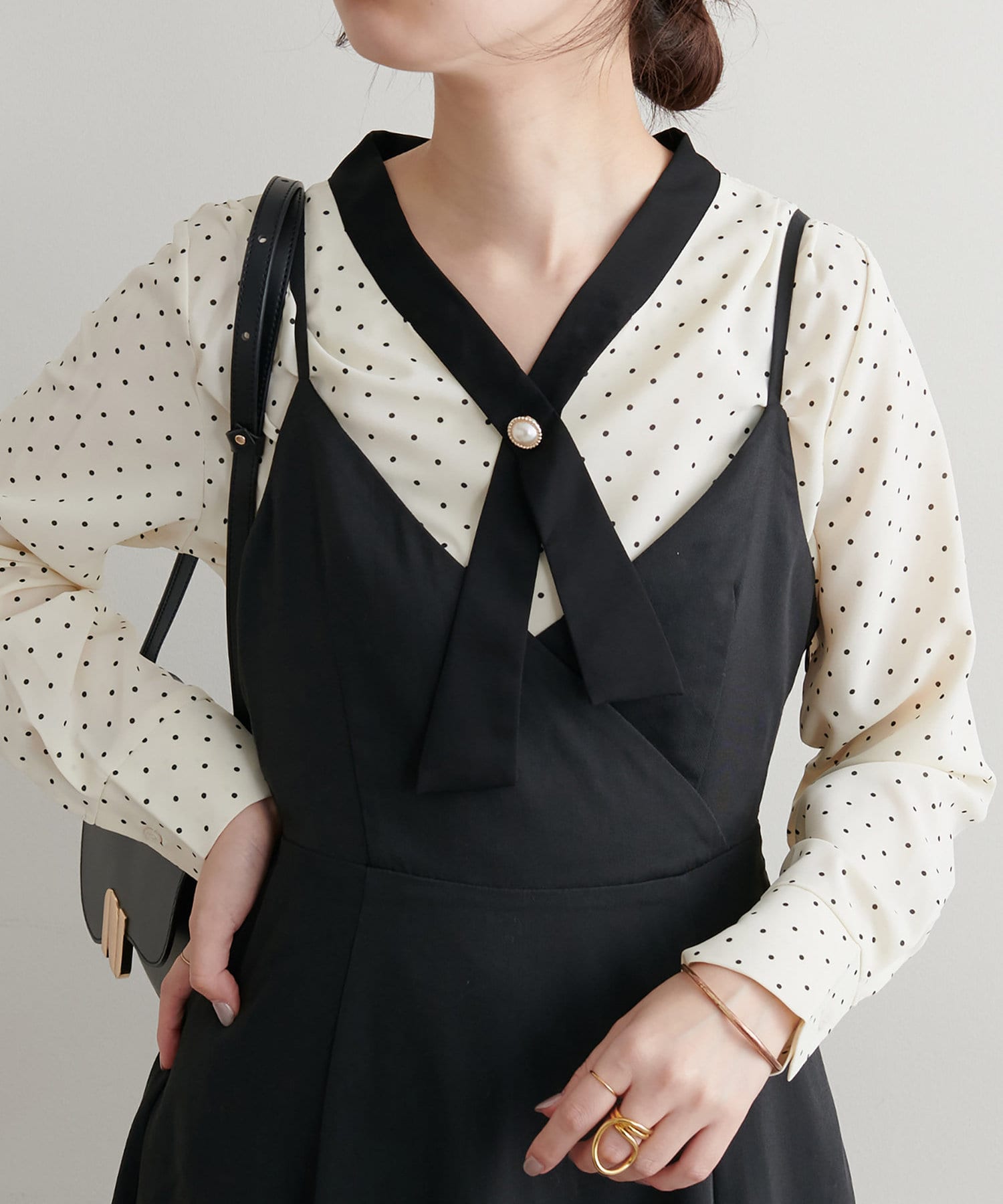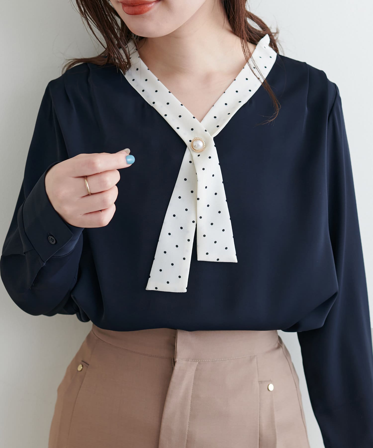 0322040590 osonoパールリバー釦クロスボータイブラウス