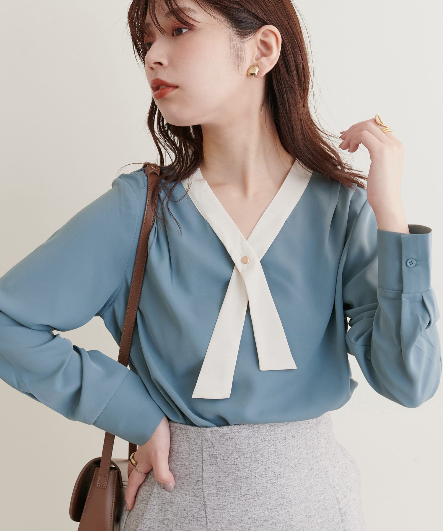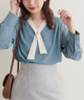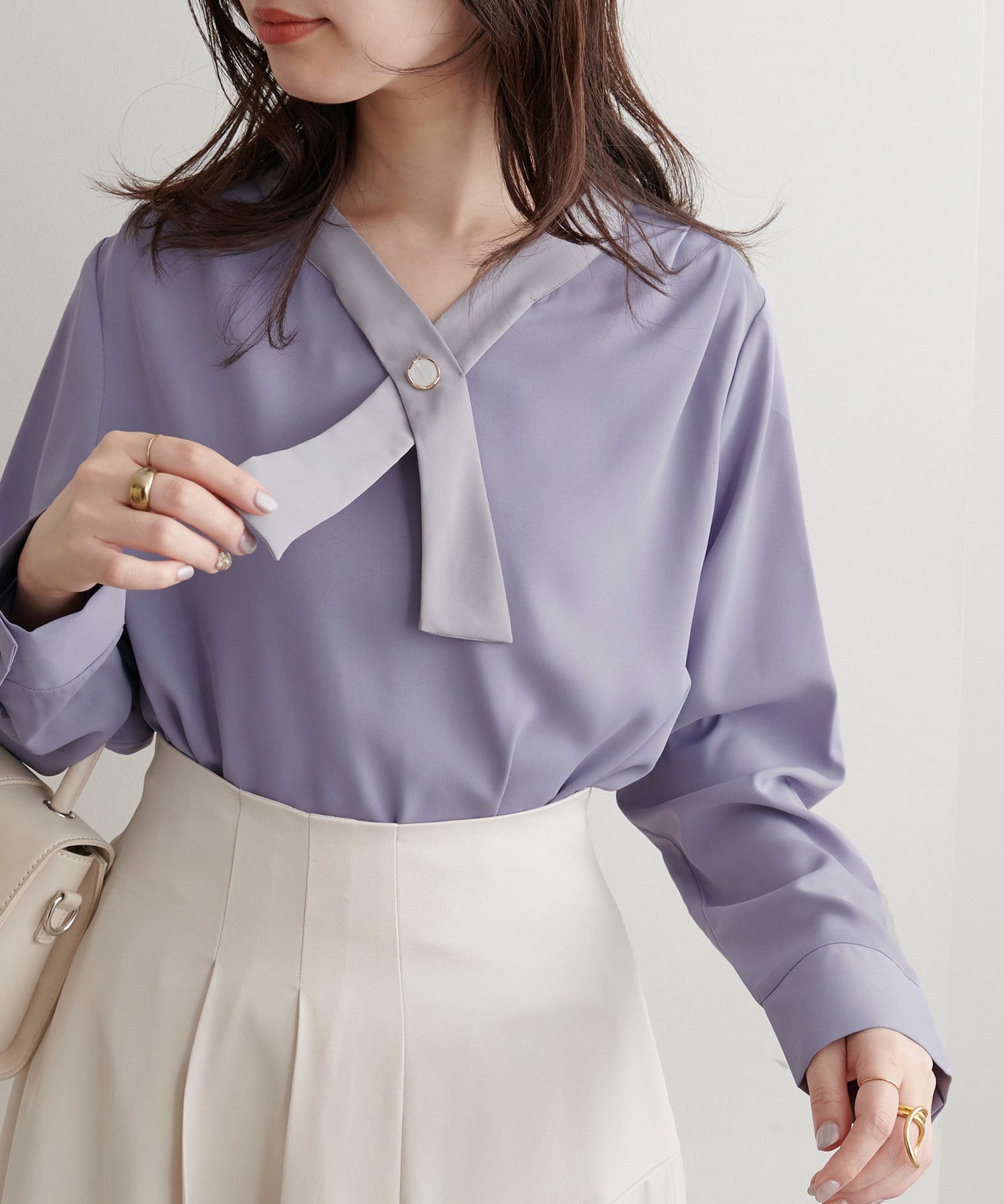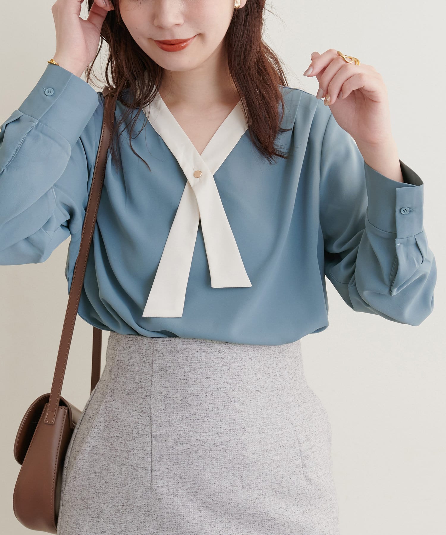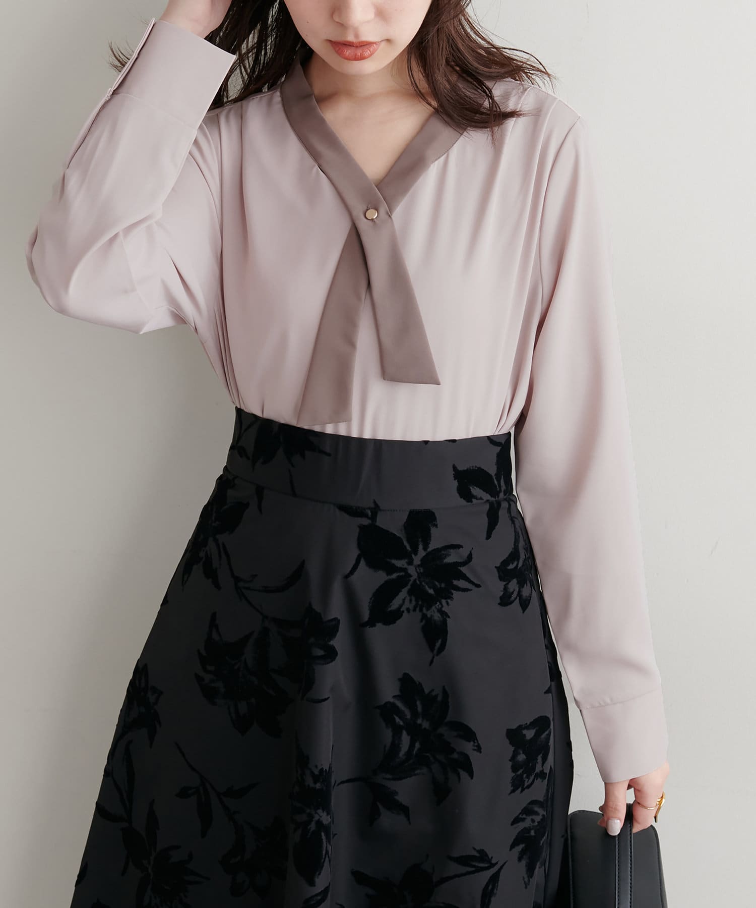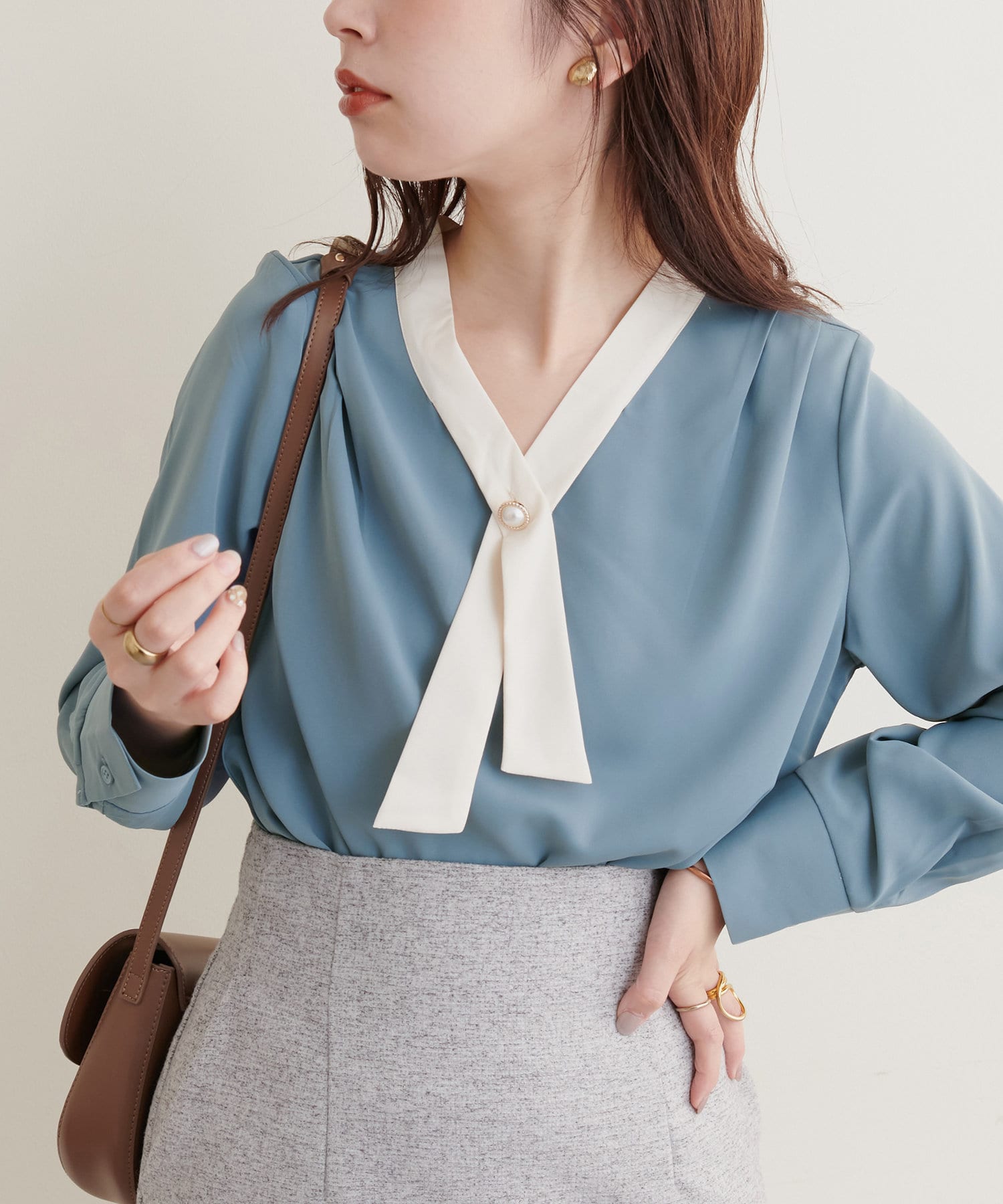 0322040590 osonoパールリバー釦クロスボータイブラウス