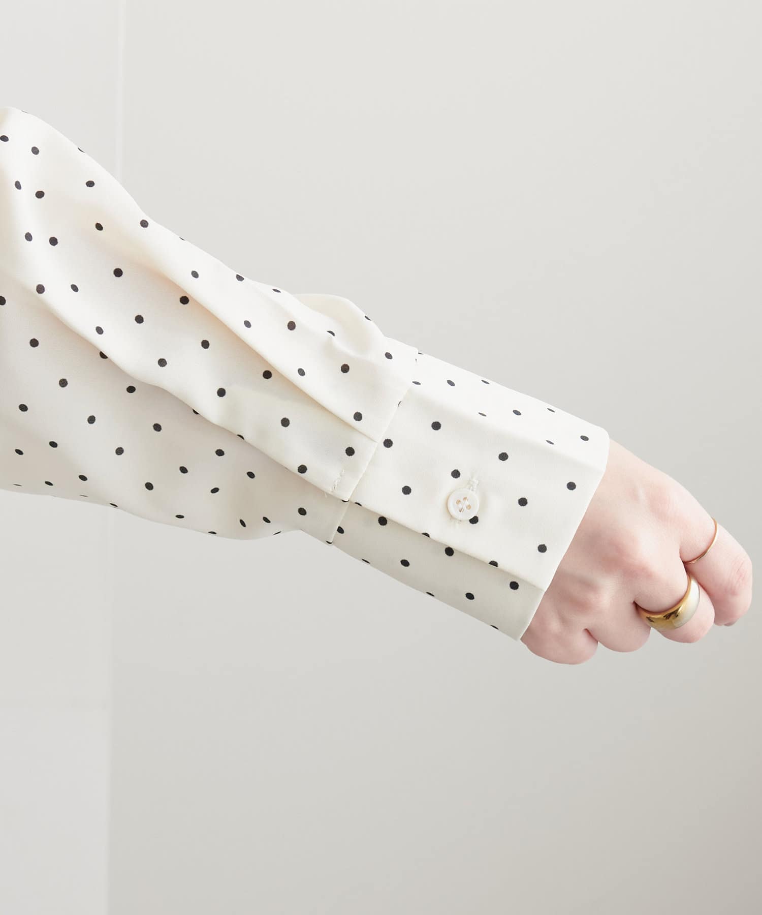 ボタンの一方は、全色共通のマットゴールドボタンでオフィスシーンにも使いやすいデザイン。