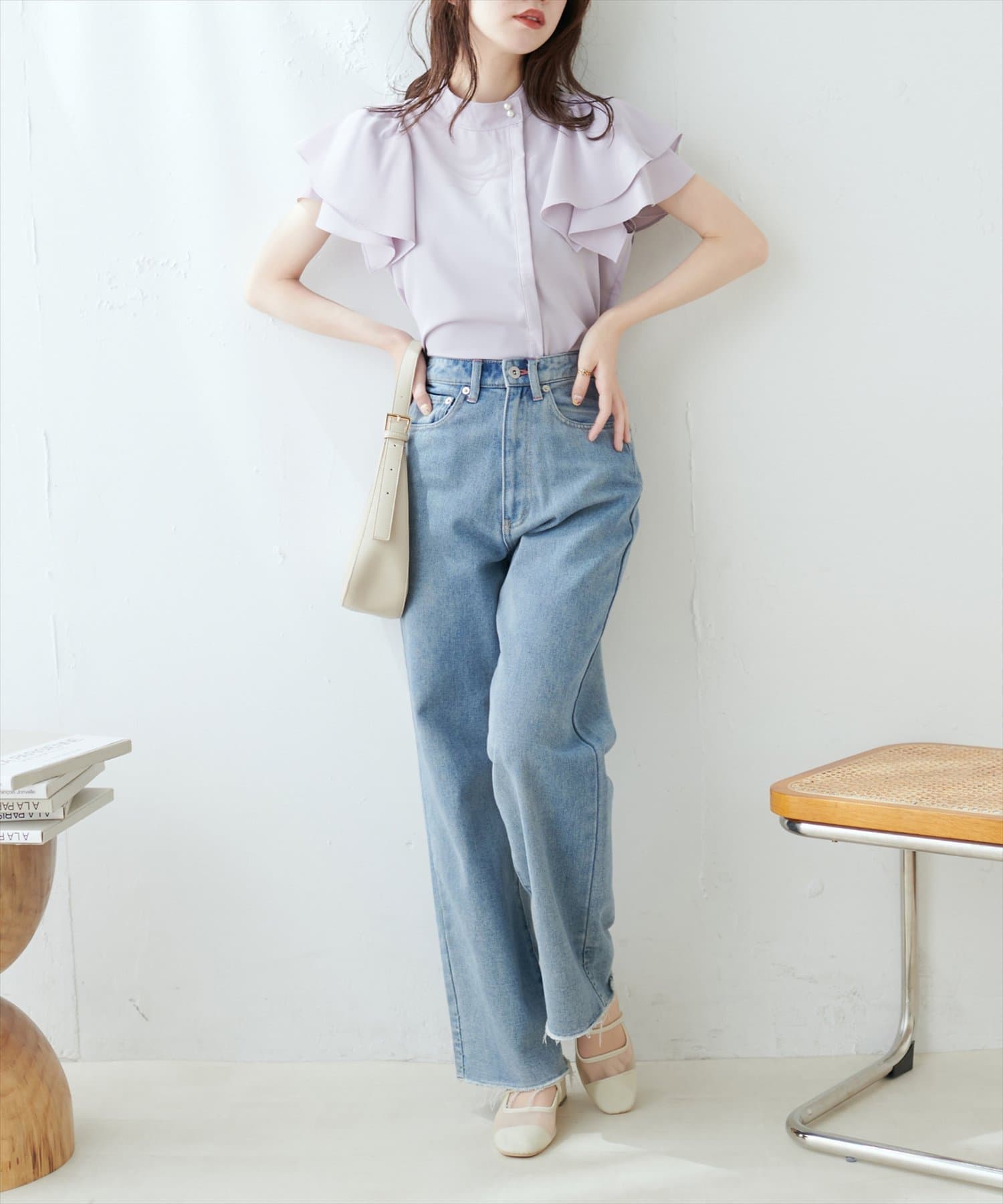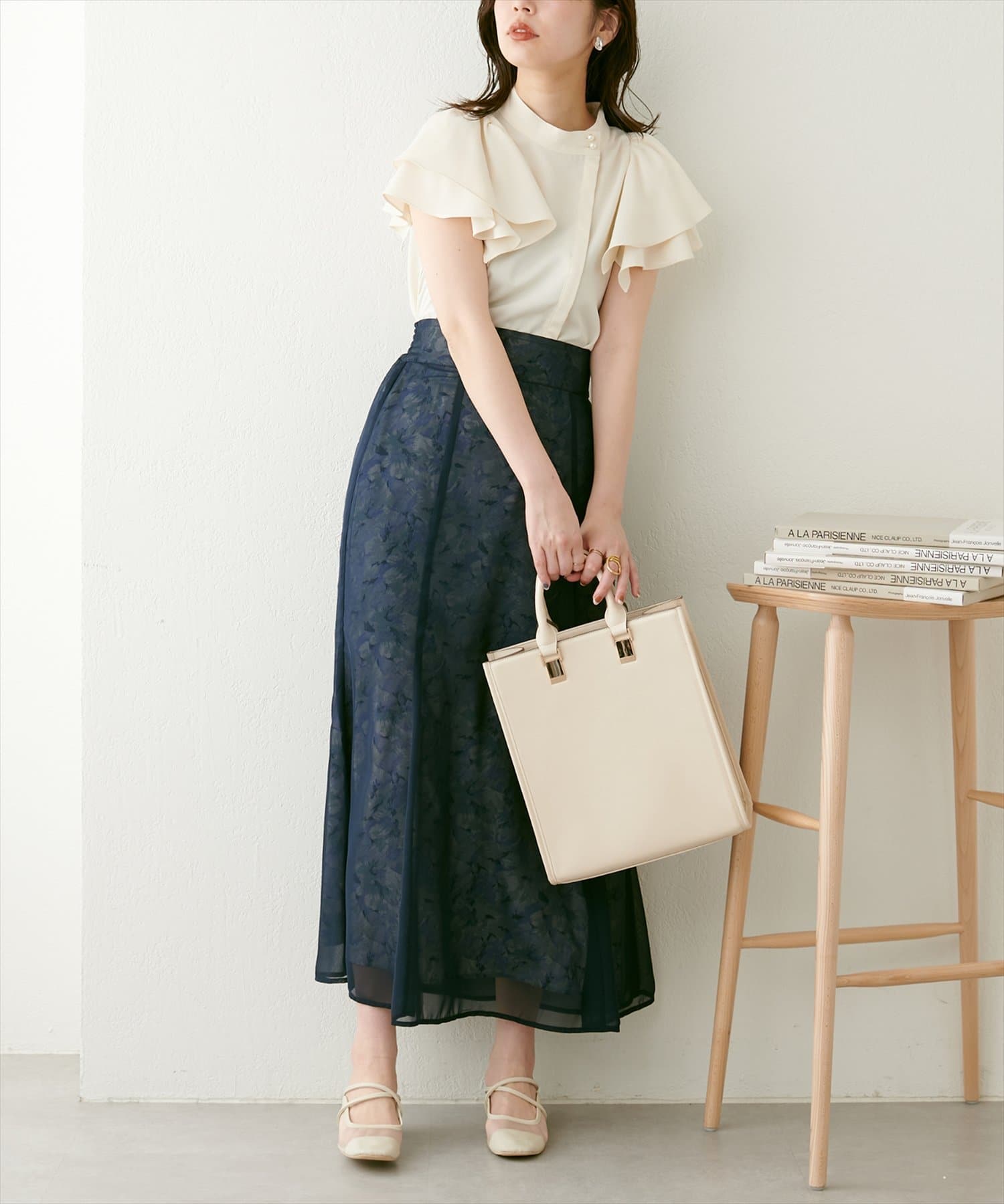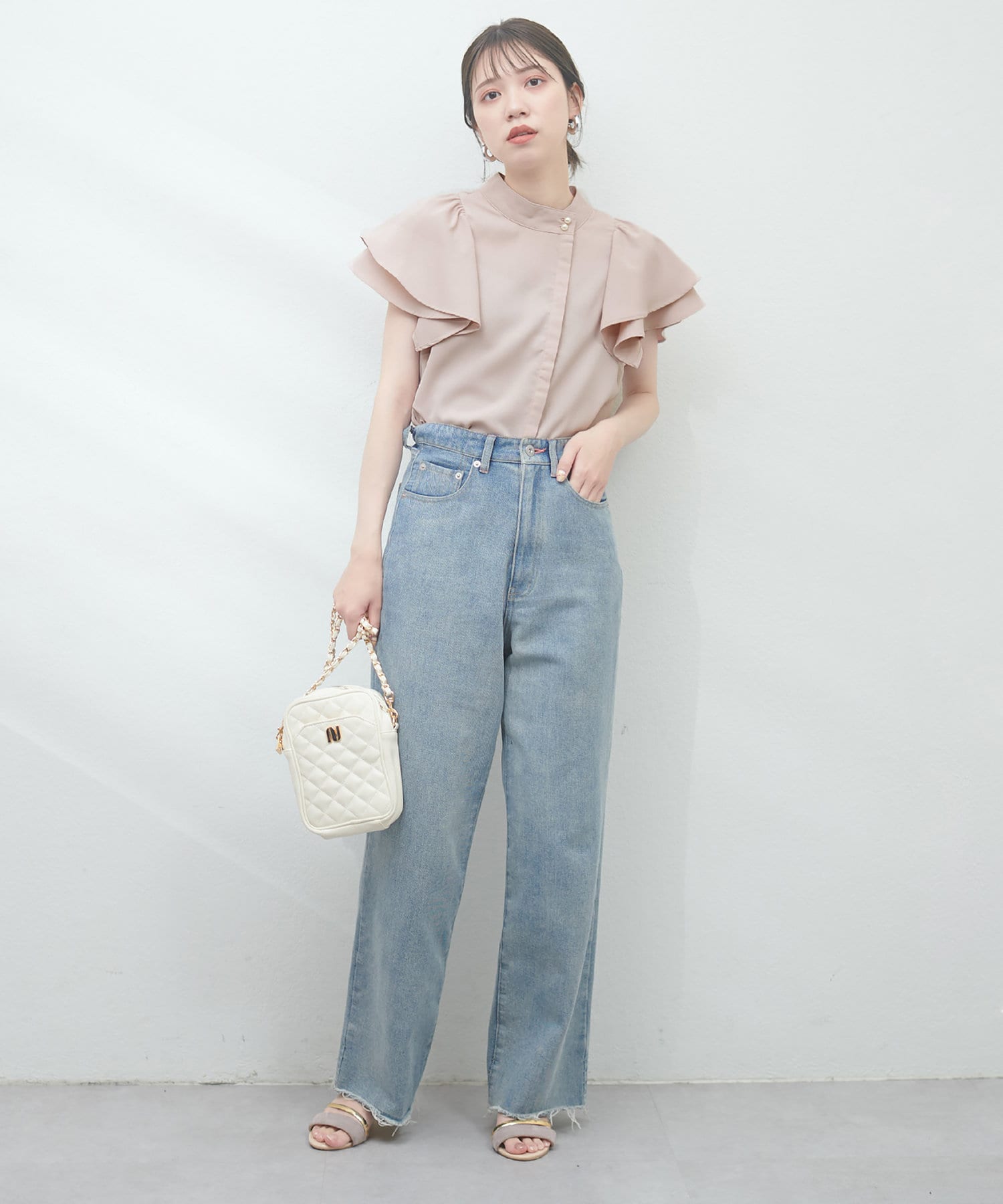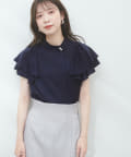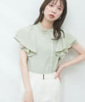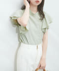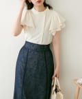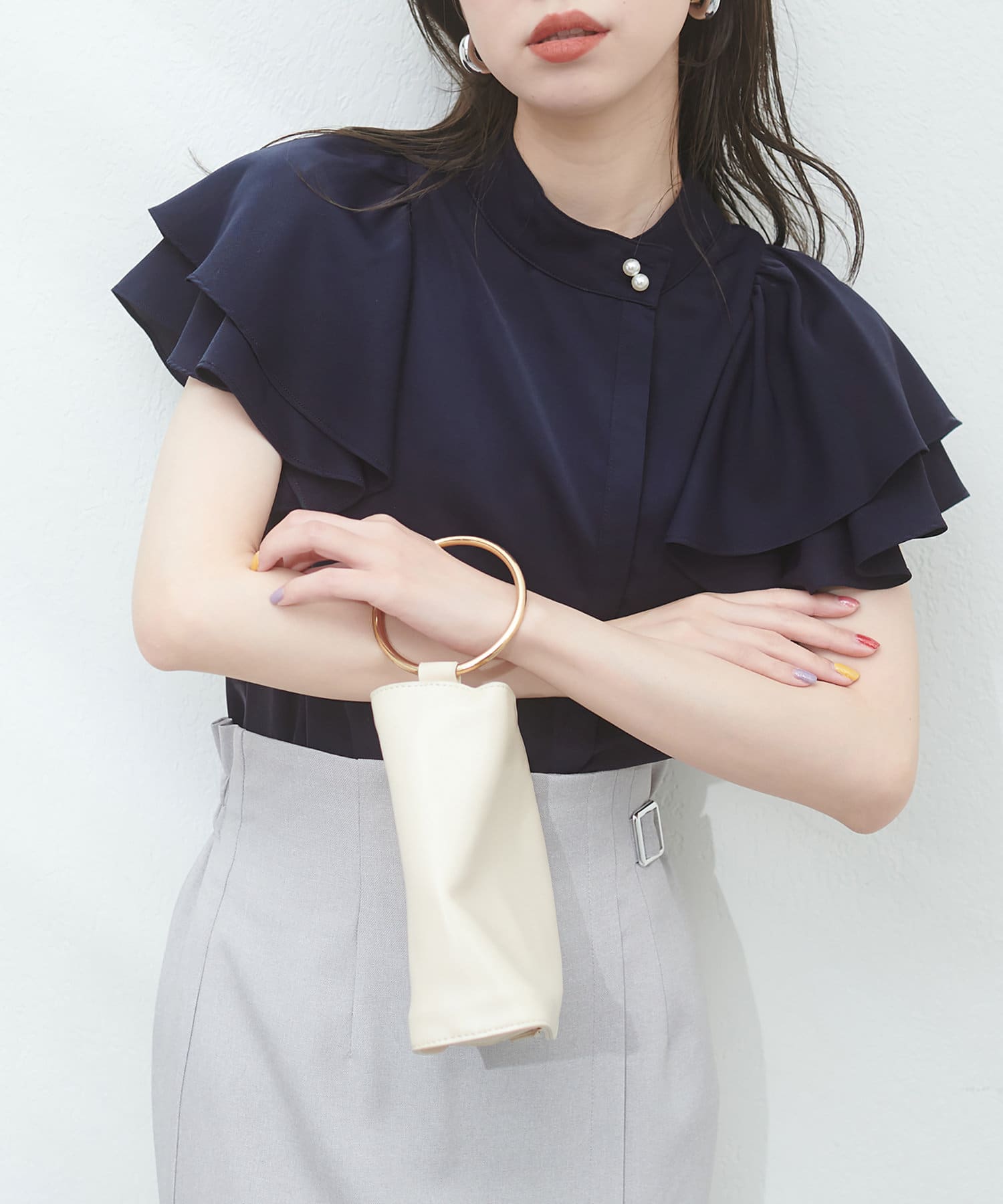 柔らかなラッフルフリルとパール使いが目を惹くブラウス