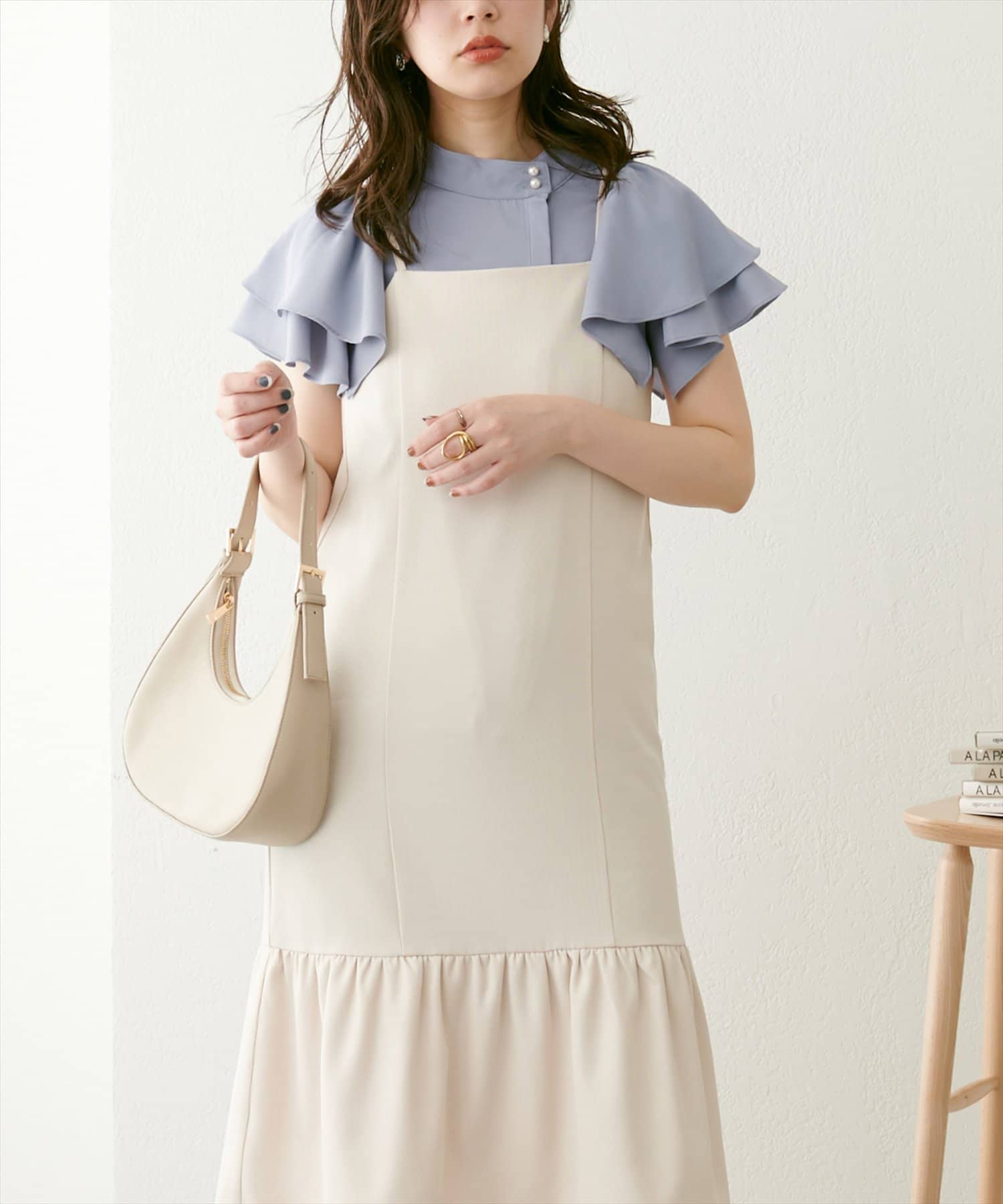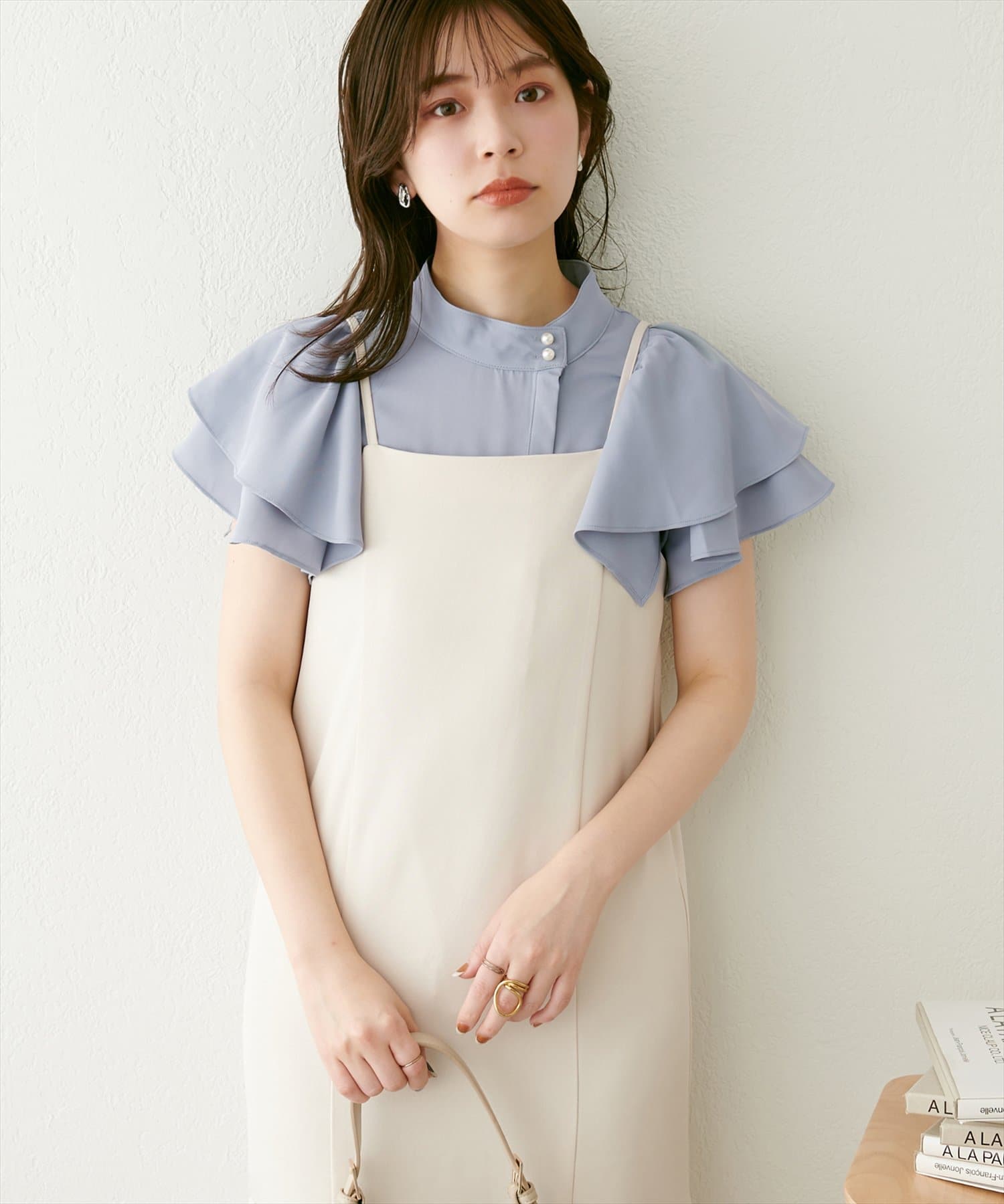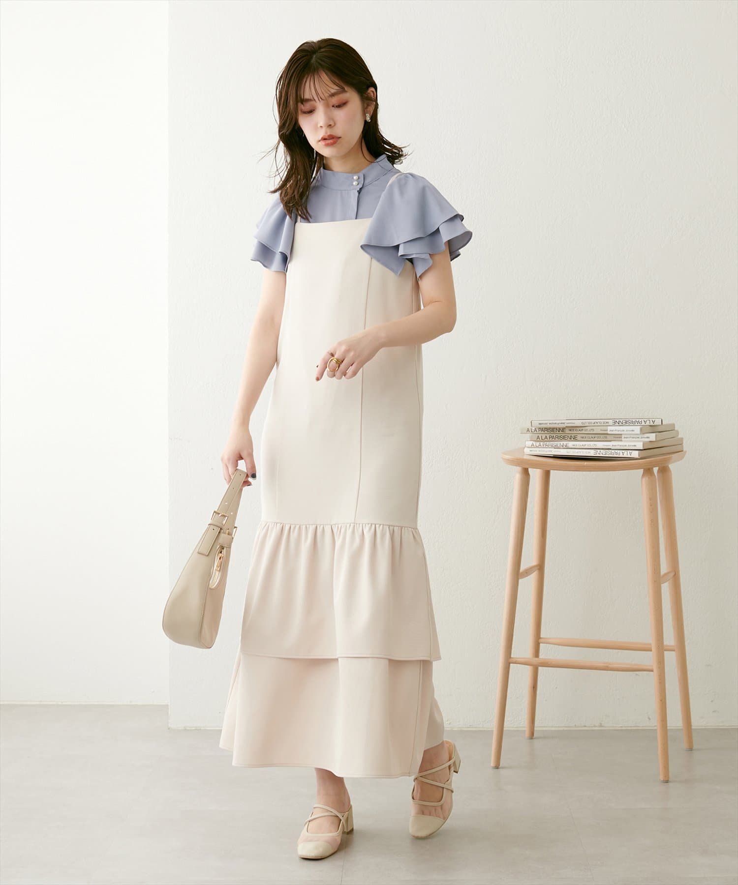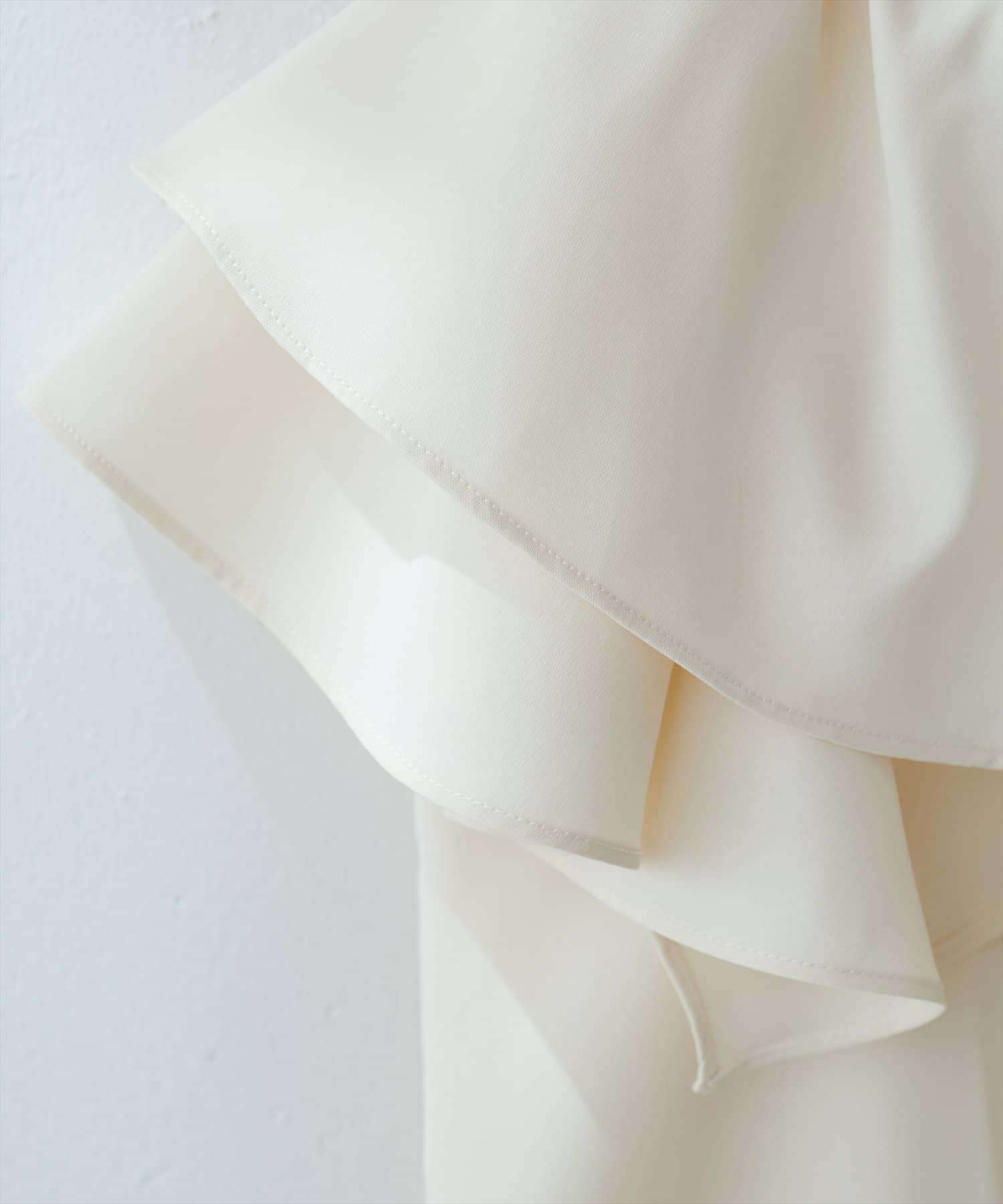 程良い甘さのラッフルフリルを贅沢に2枚仕立てにし、立体感のあるデザインに仕上げた大人レディな1着。