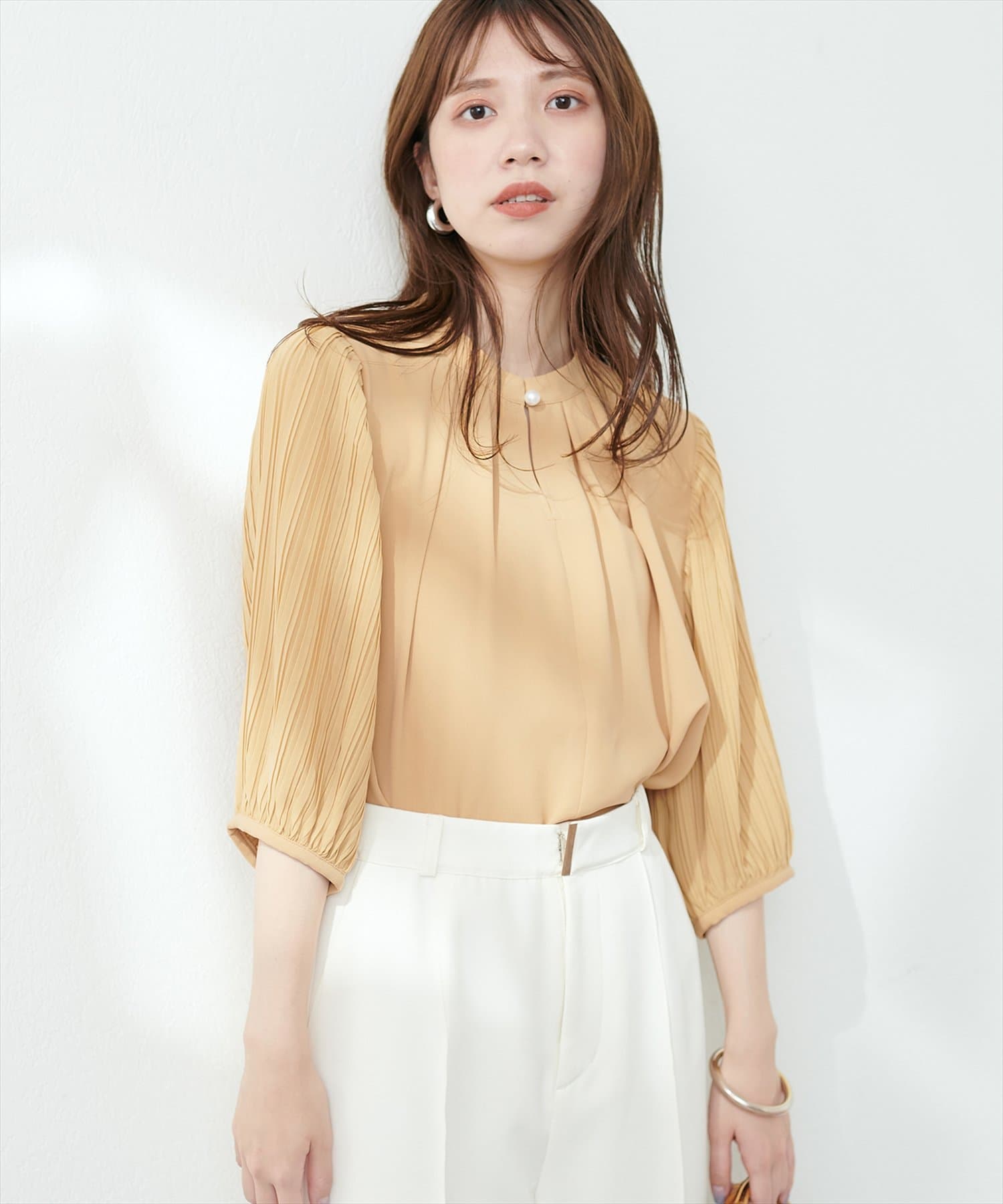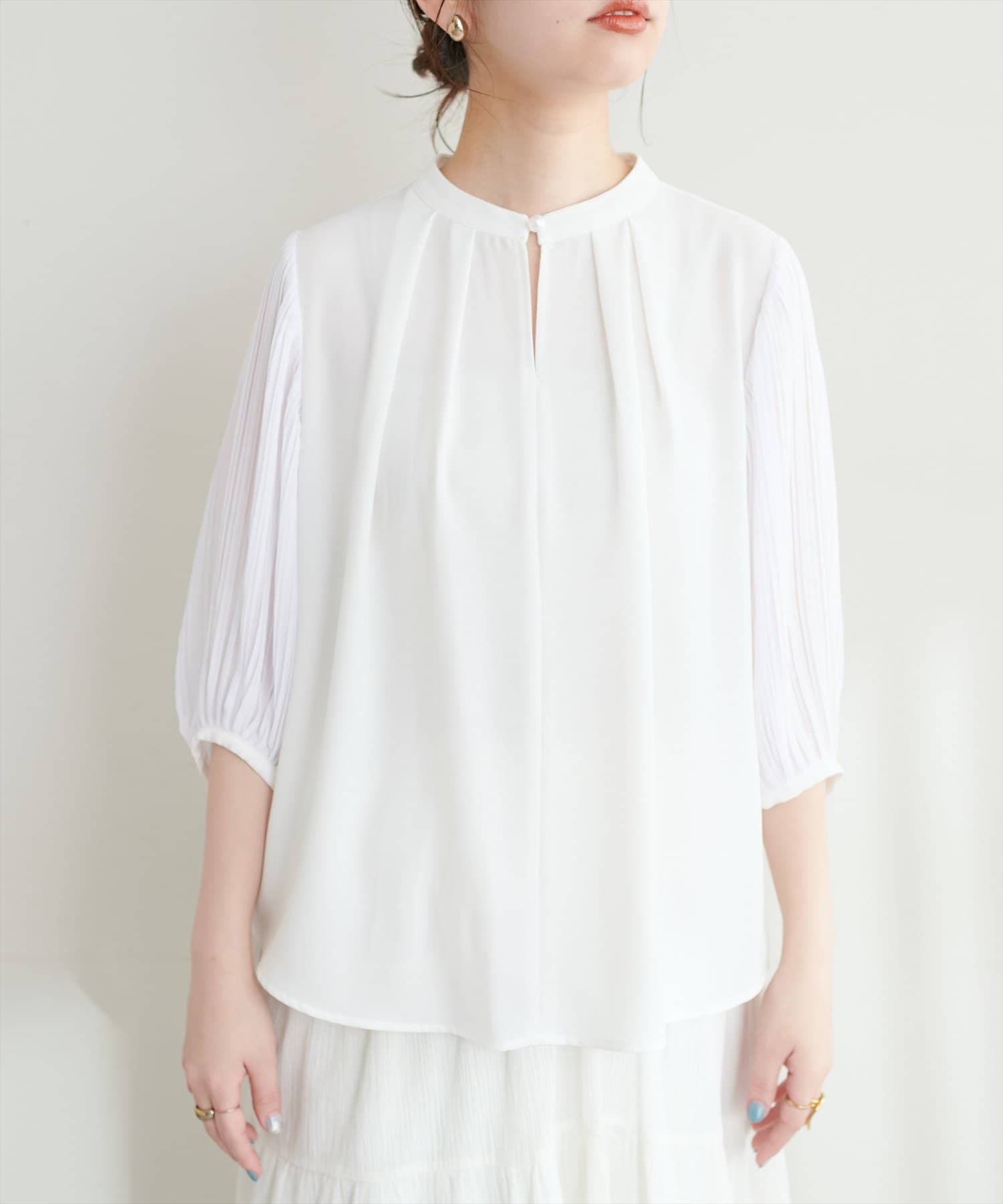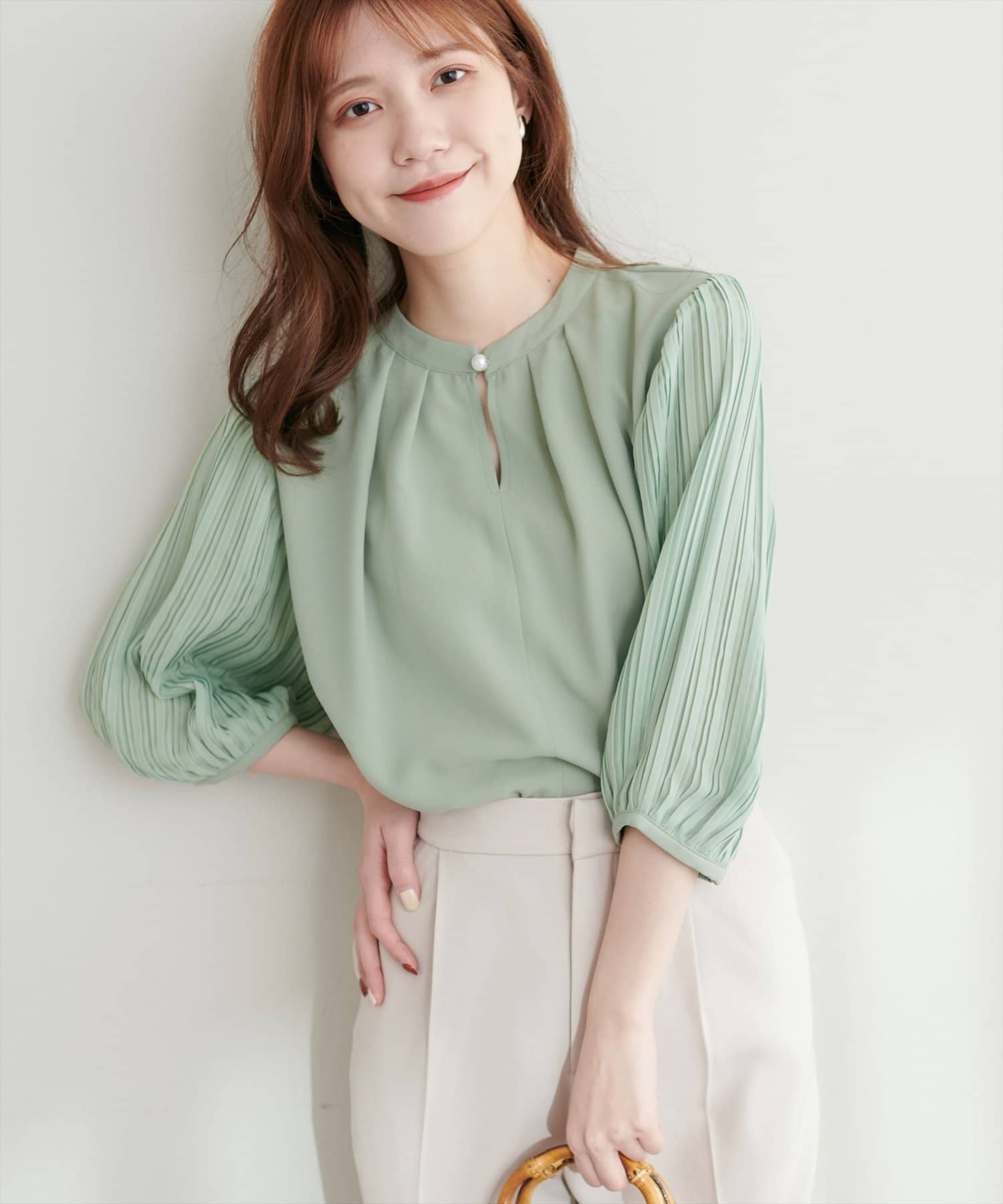 • natural couture(ナチュラルクチュール) 新色追加 / プリーツスリーブきれいめブラウス