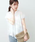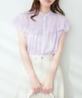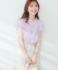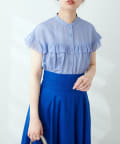 WEB限定/ややシアーストライプフリル切替ブラウス