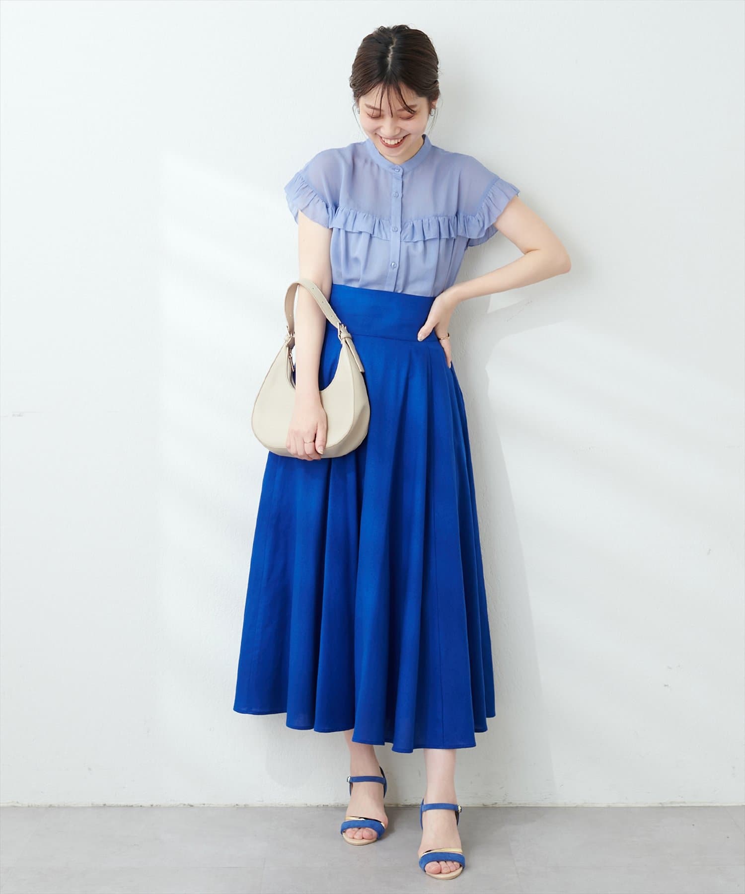 マーメイドシルエットやフレアラインのスカートにウエストインして頂くと、