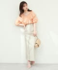 キャミソールに合わせて上の釦を2個開ければ、トレンドライクでヘルシーなコーディネートが完成します。