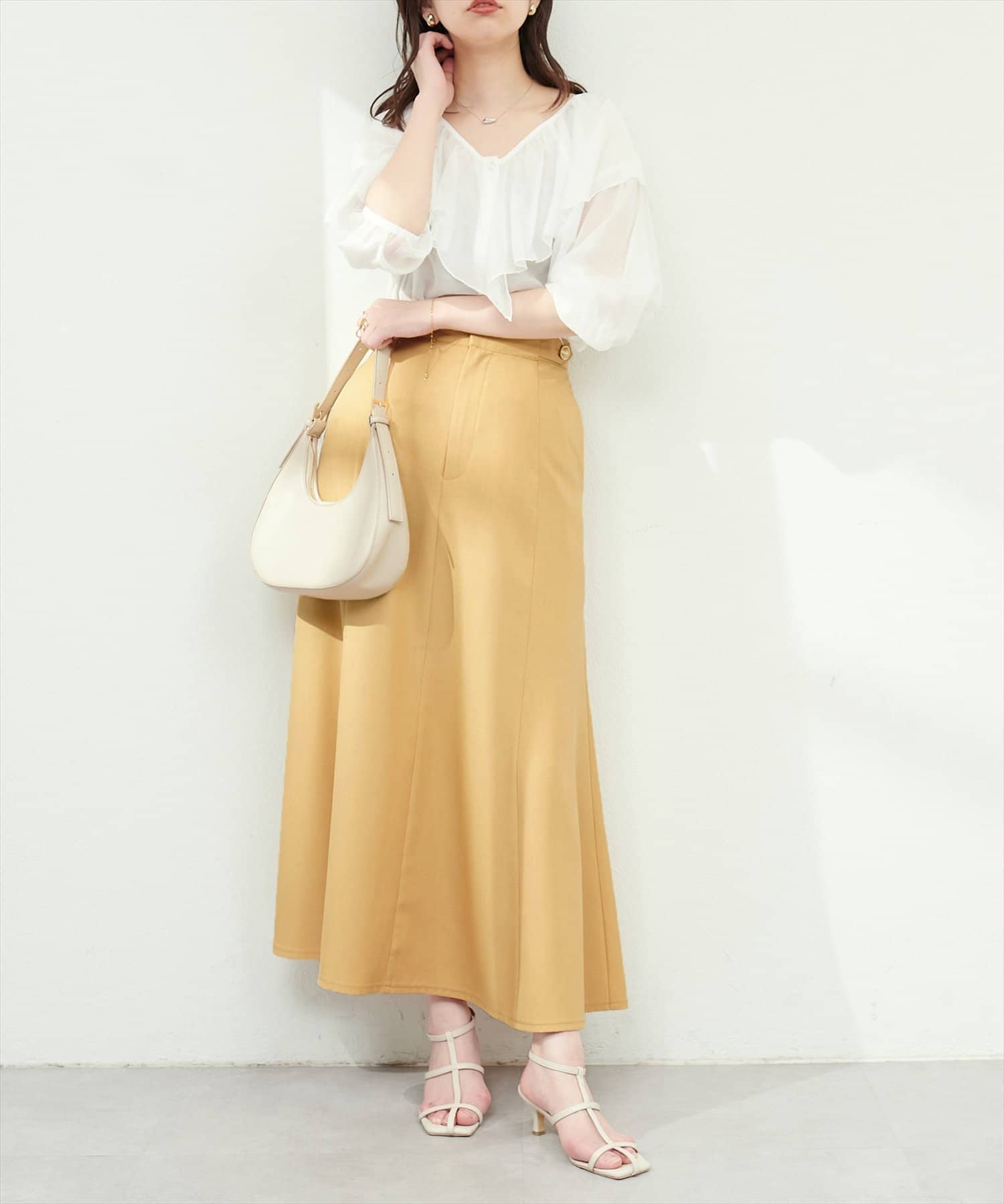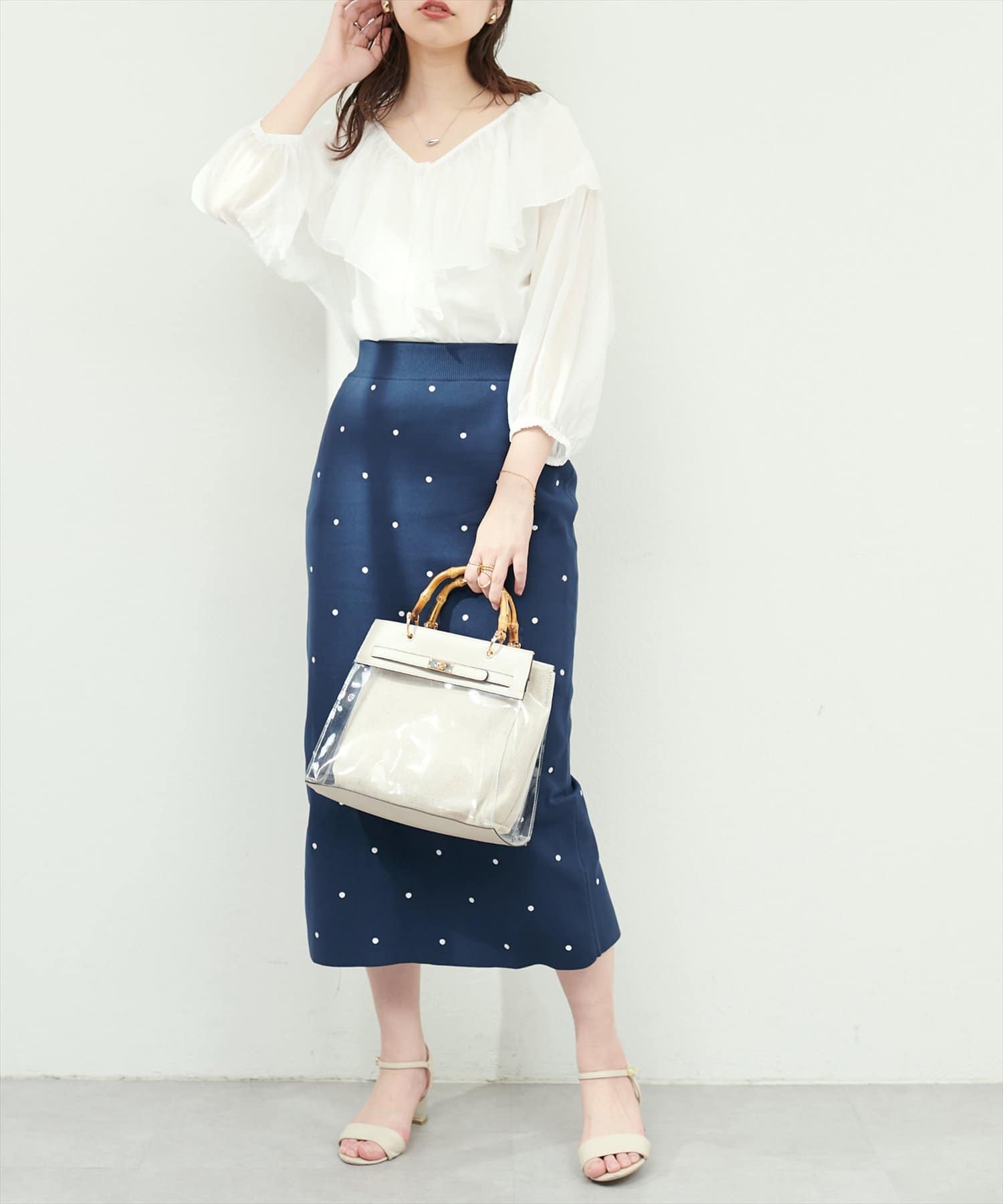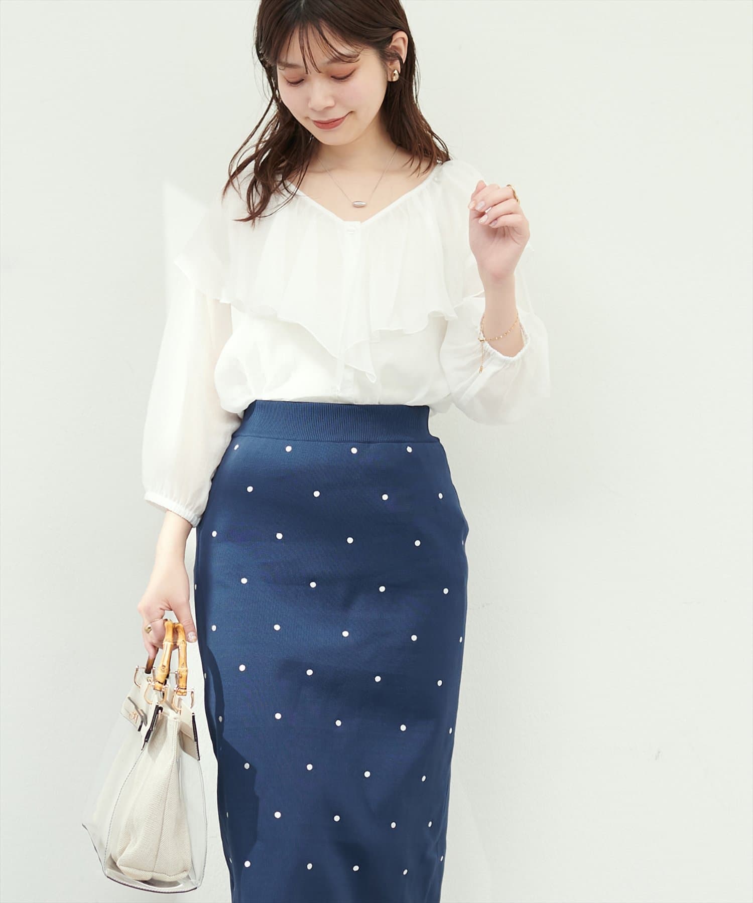 ケープのようにぐるりと一周するフリル襟は、お顔をぱっと明るく見せ、トレンド感もたっぷりです。