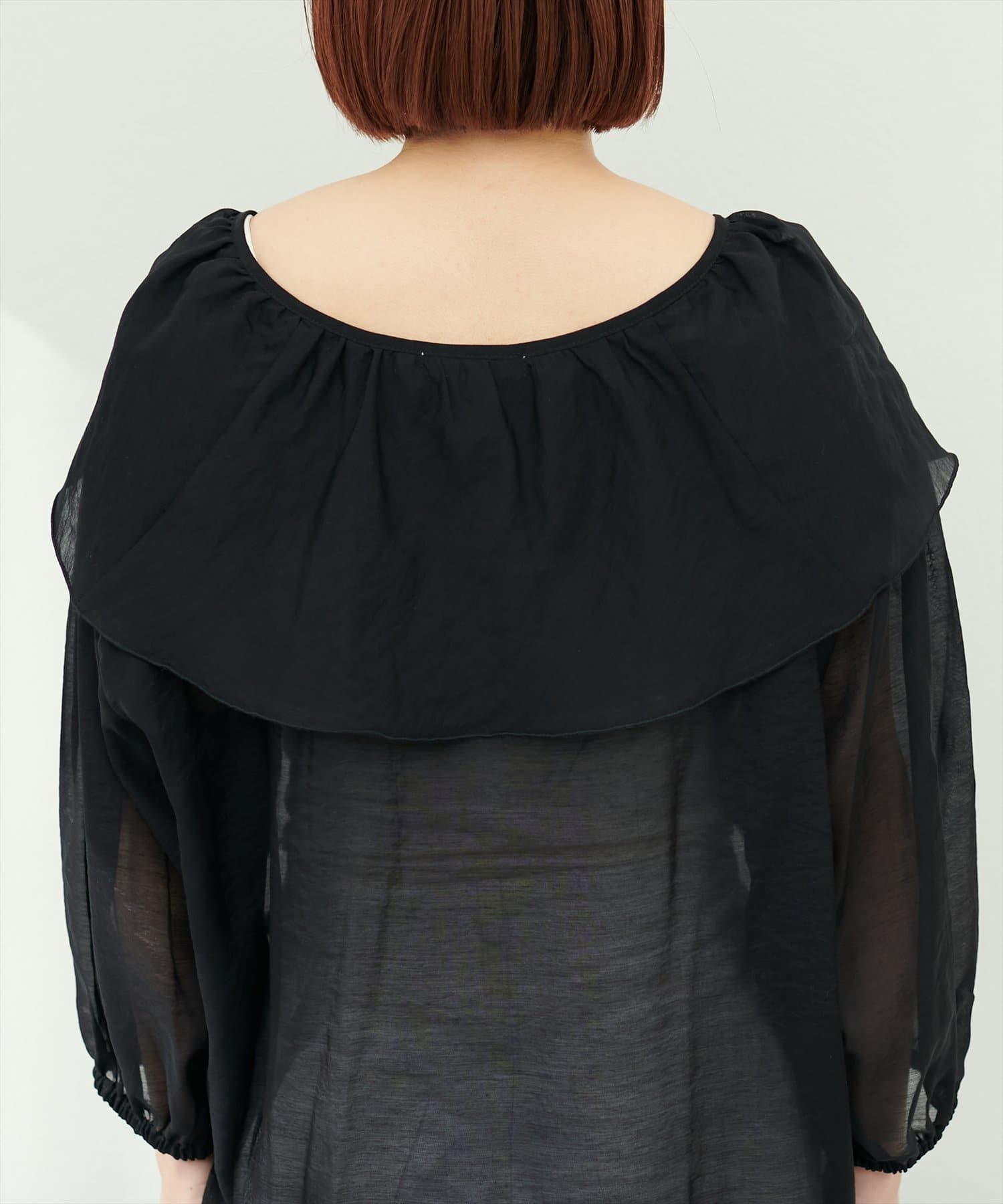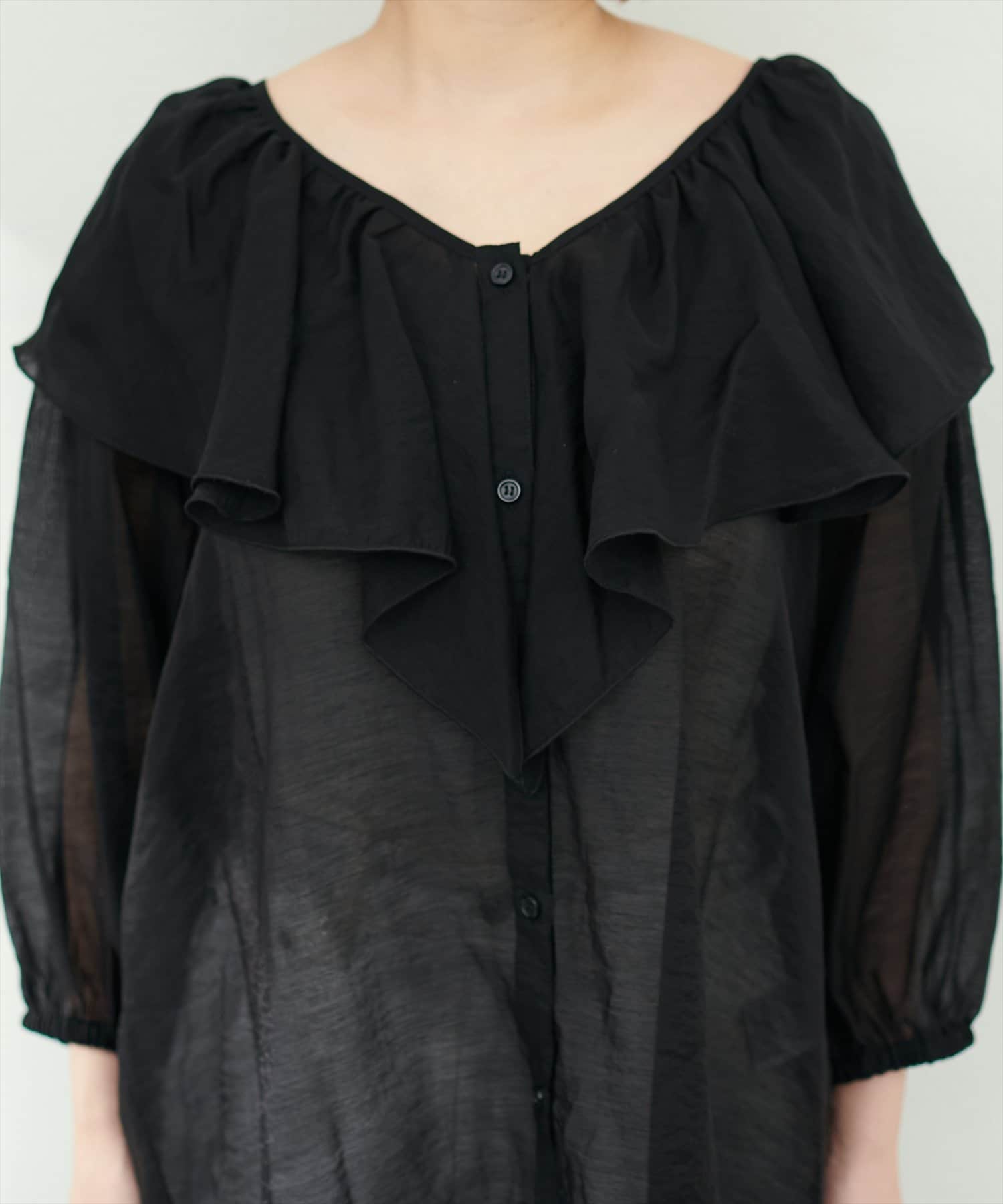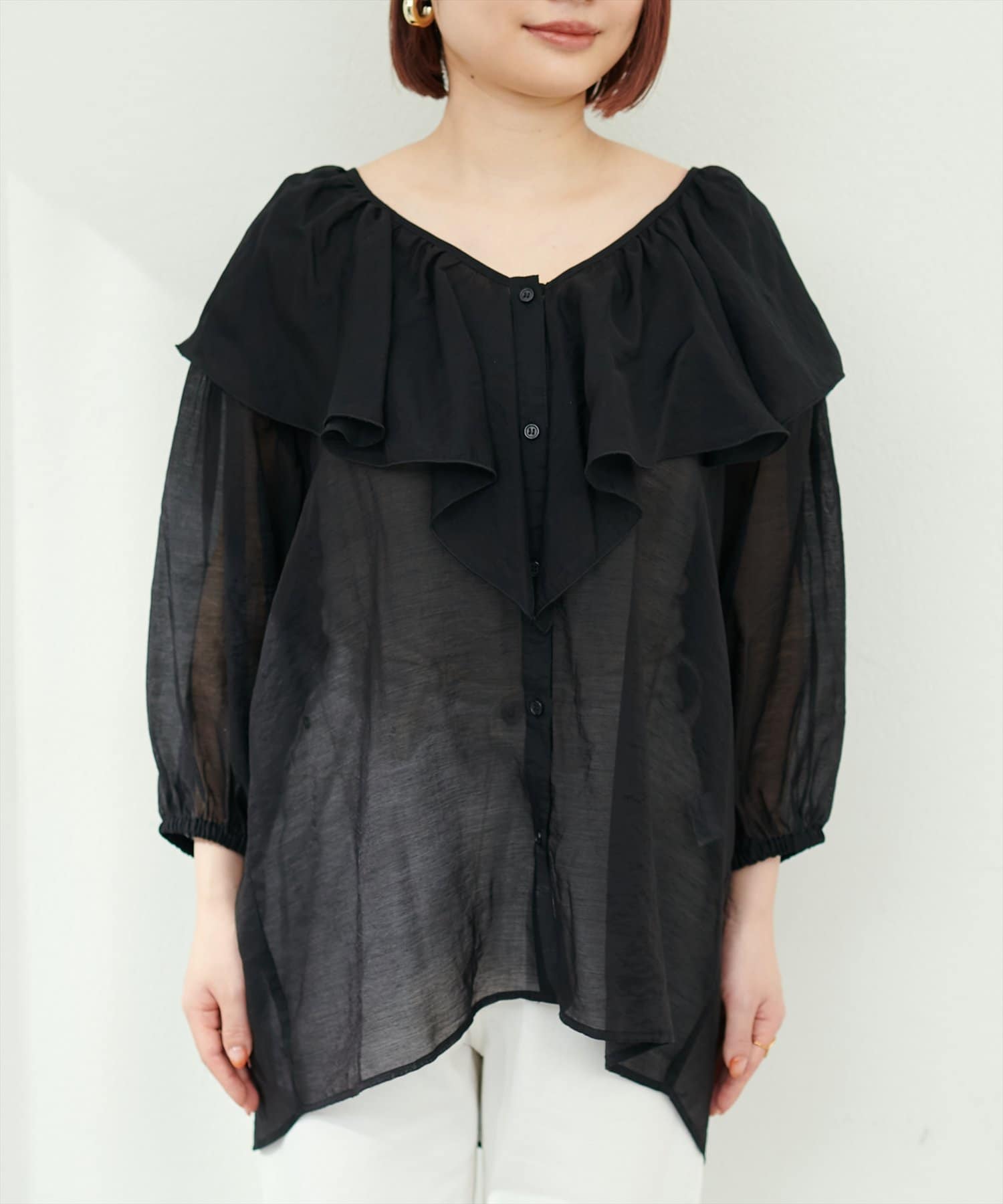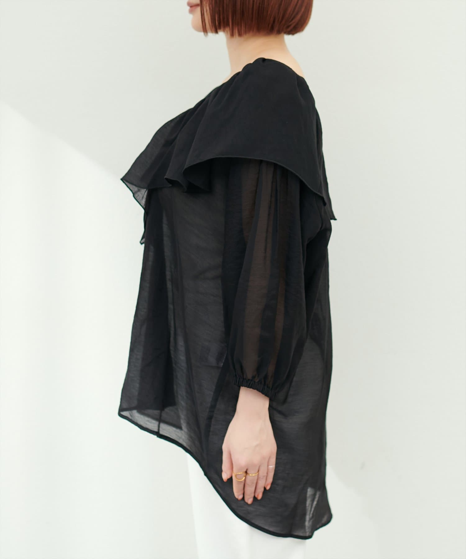 大人なシアー魅せ。ビッグフリル襟ブラウス