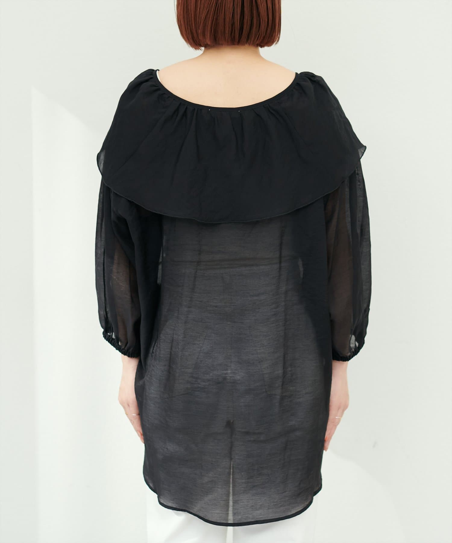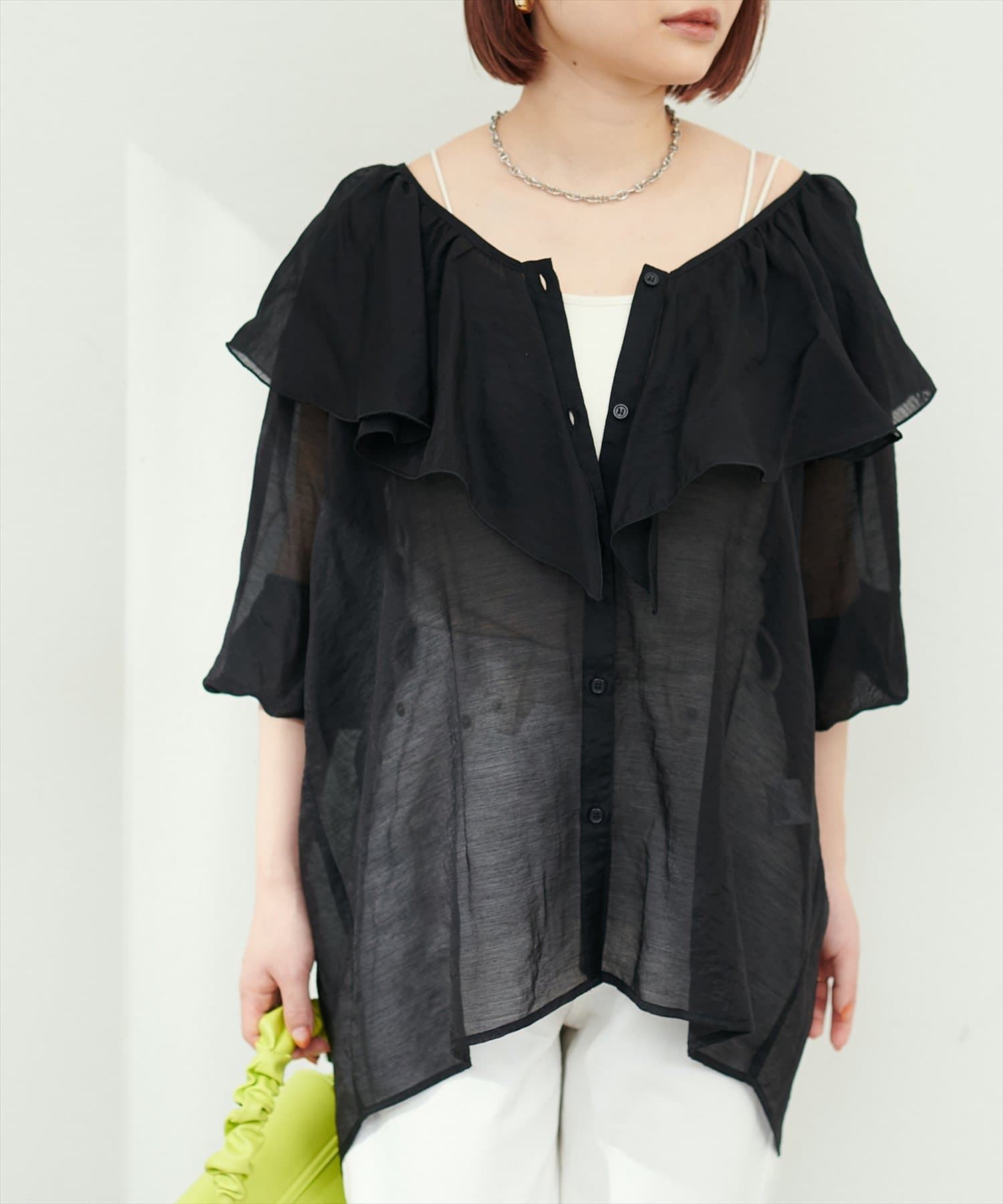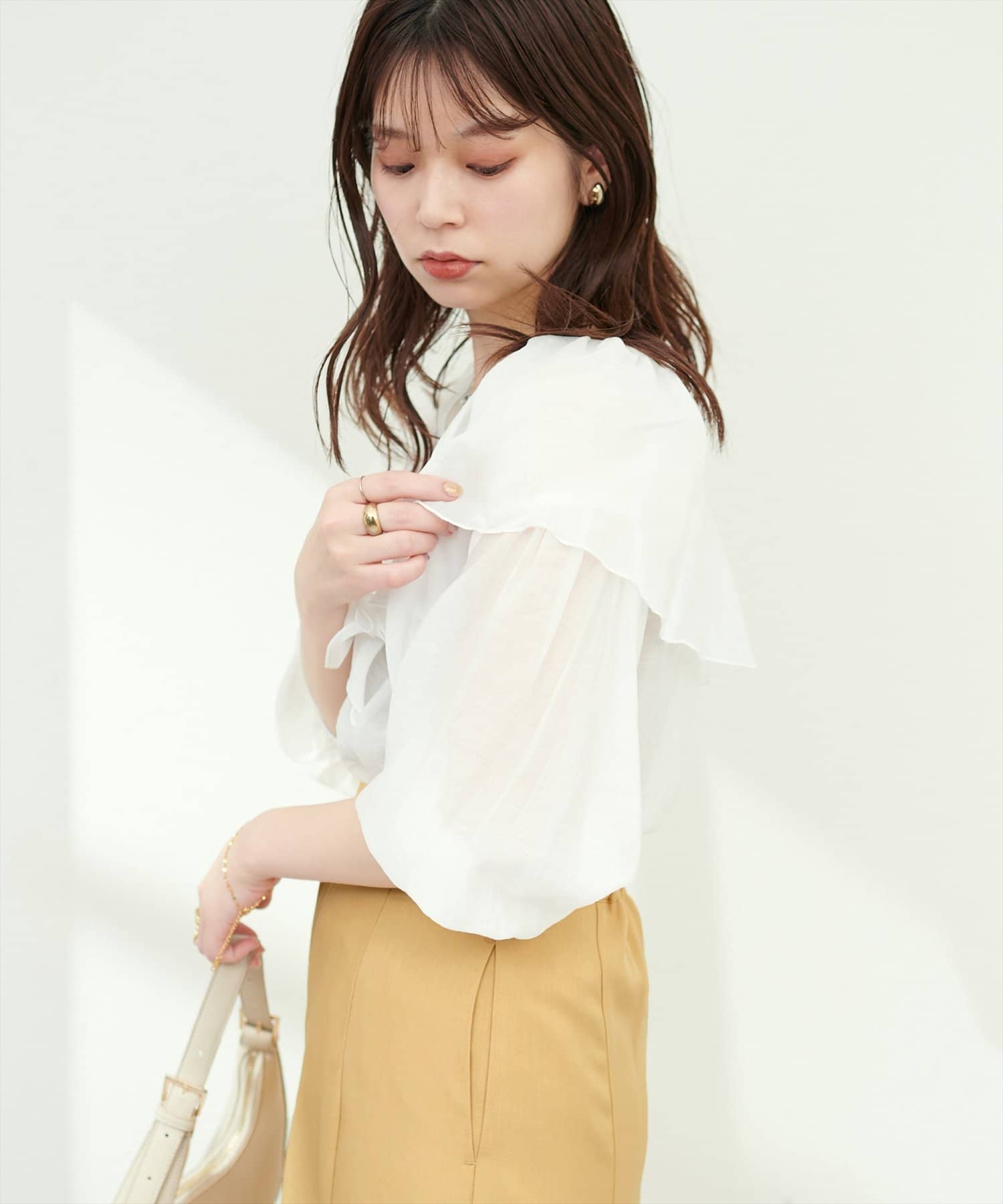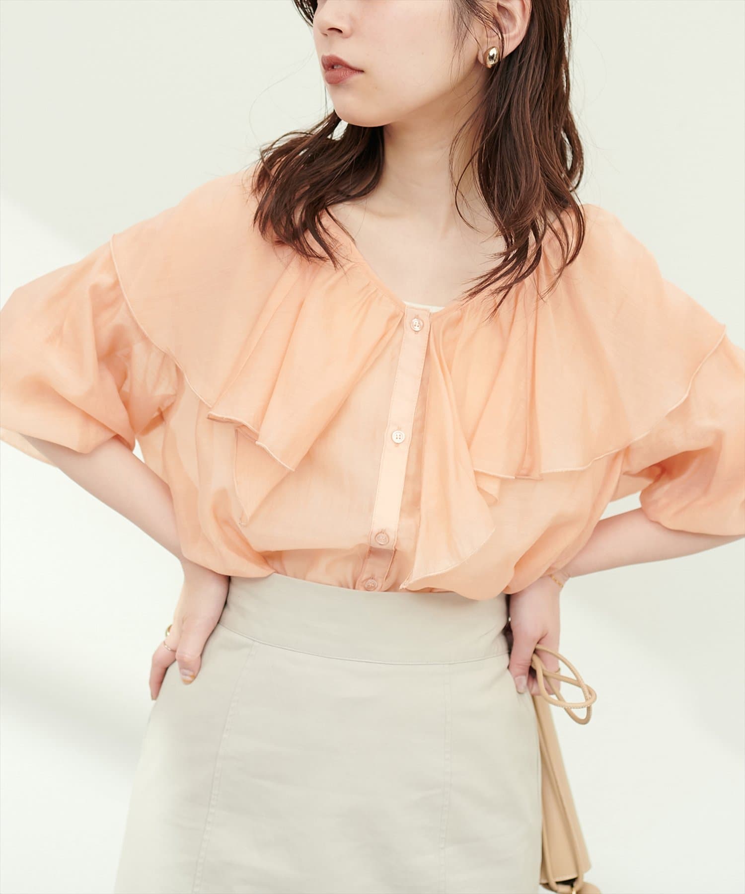 大人なシアー魅せ。ビッグフリル襟ブラウス