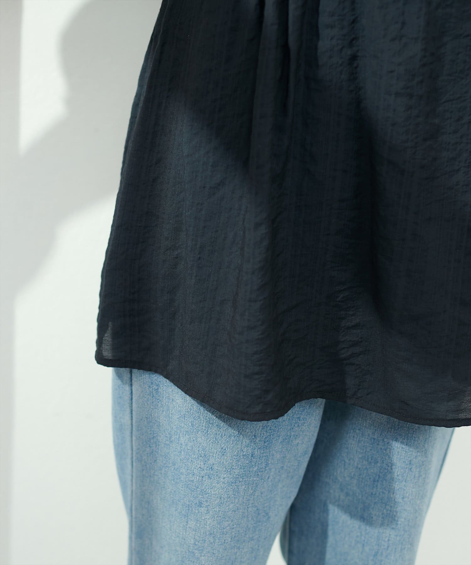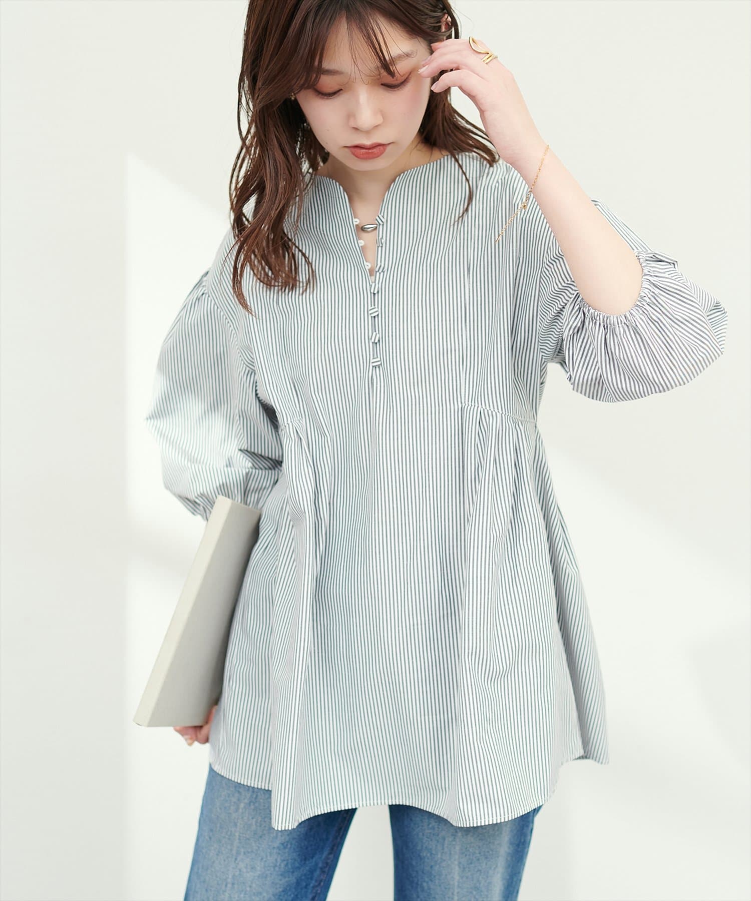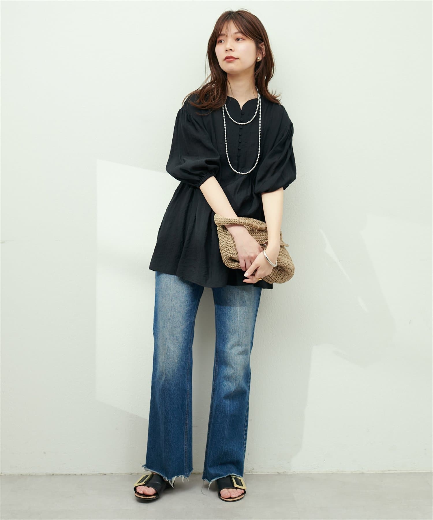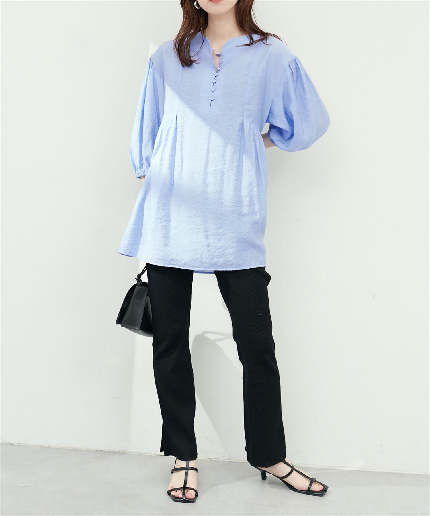 腰回りをカバーしてくれるチュニック丈なので、パンツとの相性が抜群です。