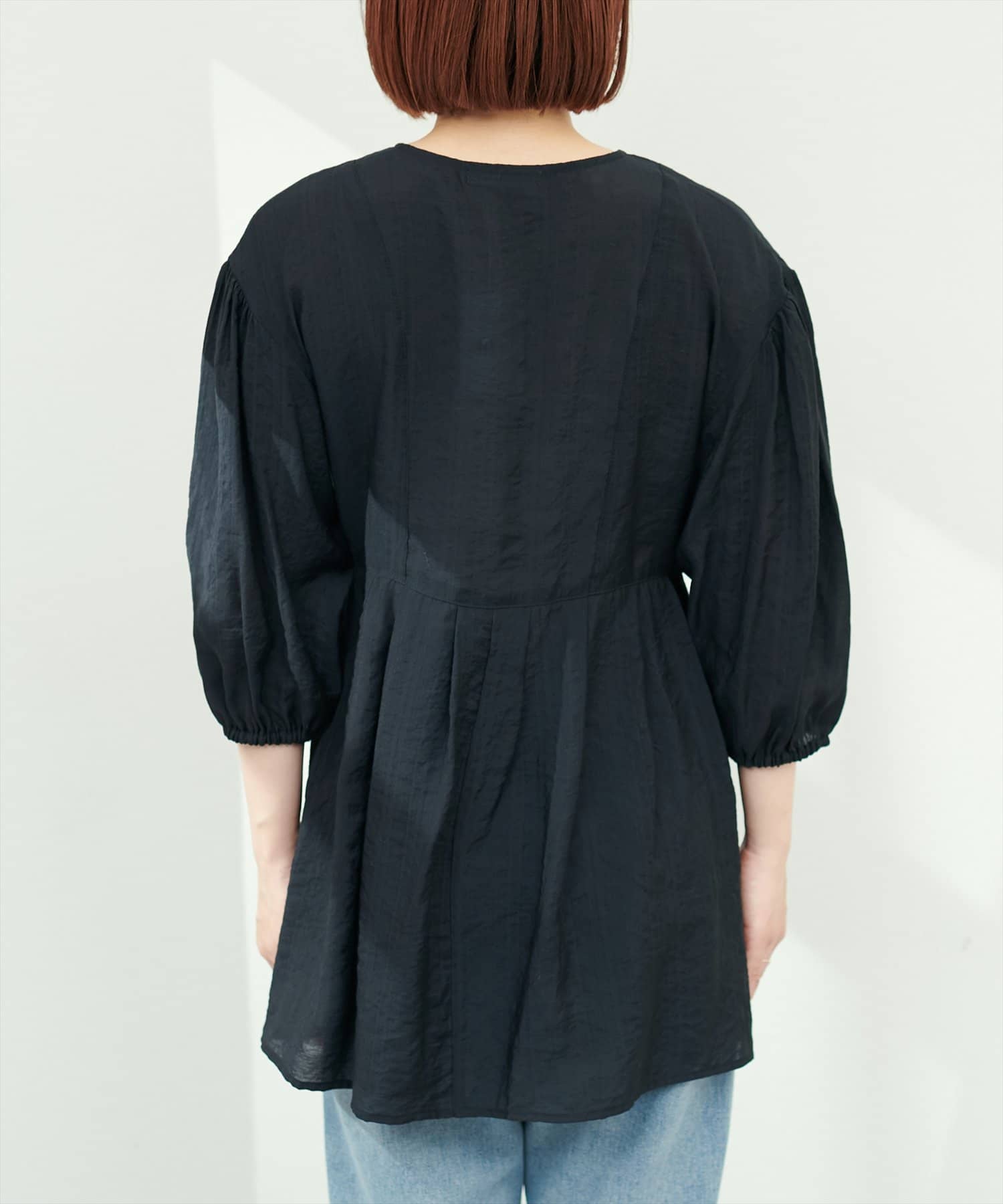 袖丈も肘まで隠れ、気になる二の腕もカバーしてくれます。