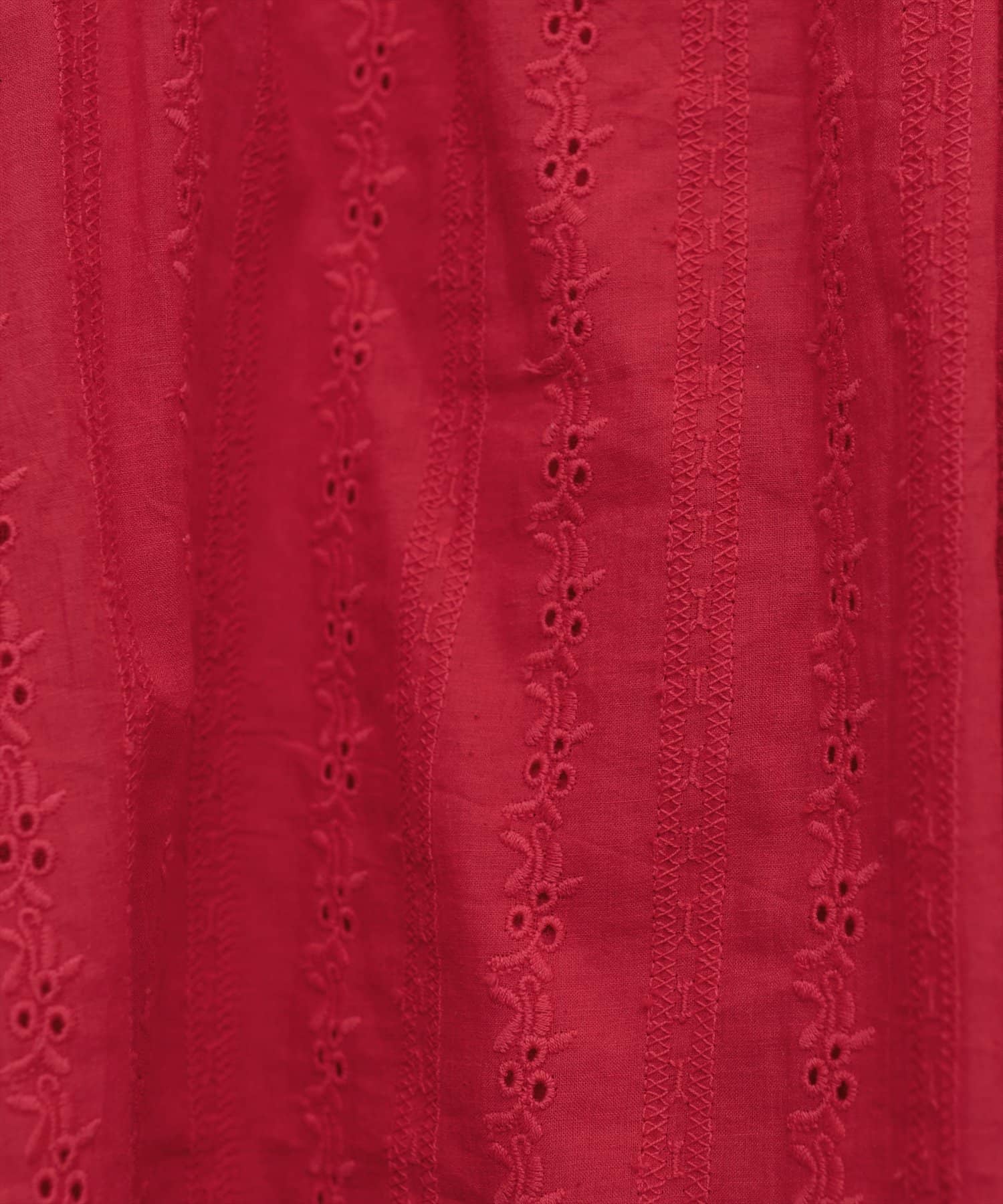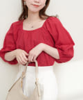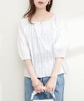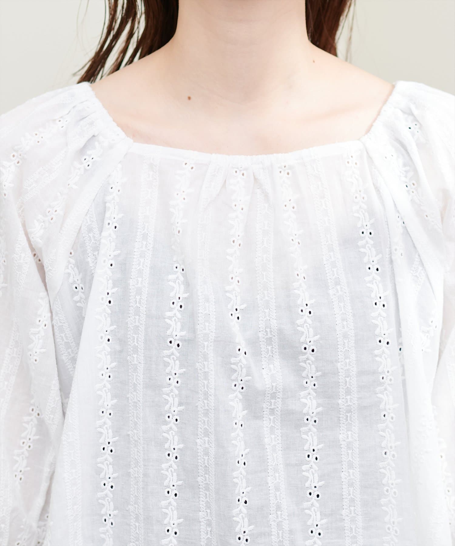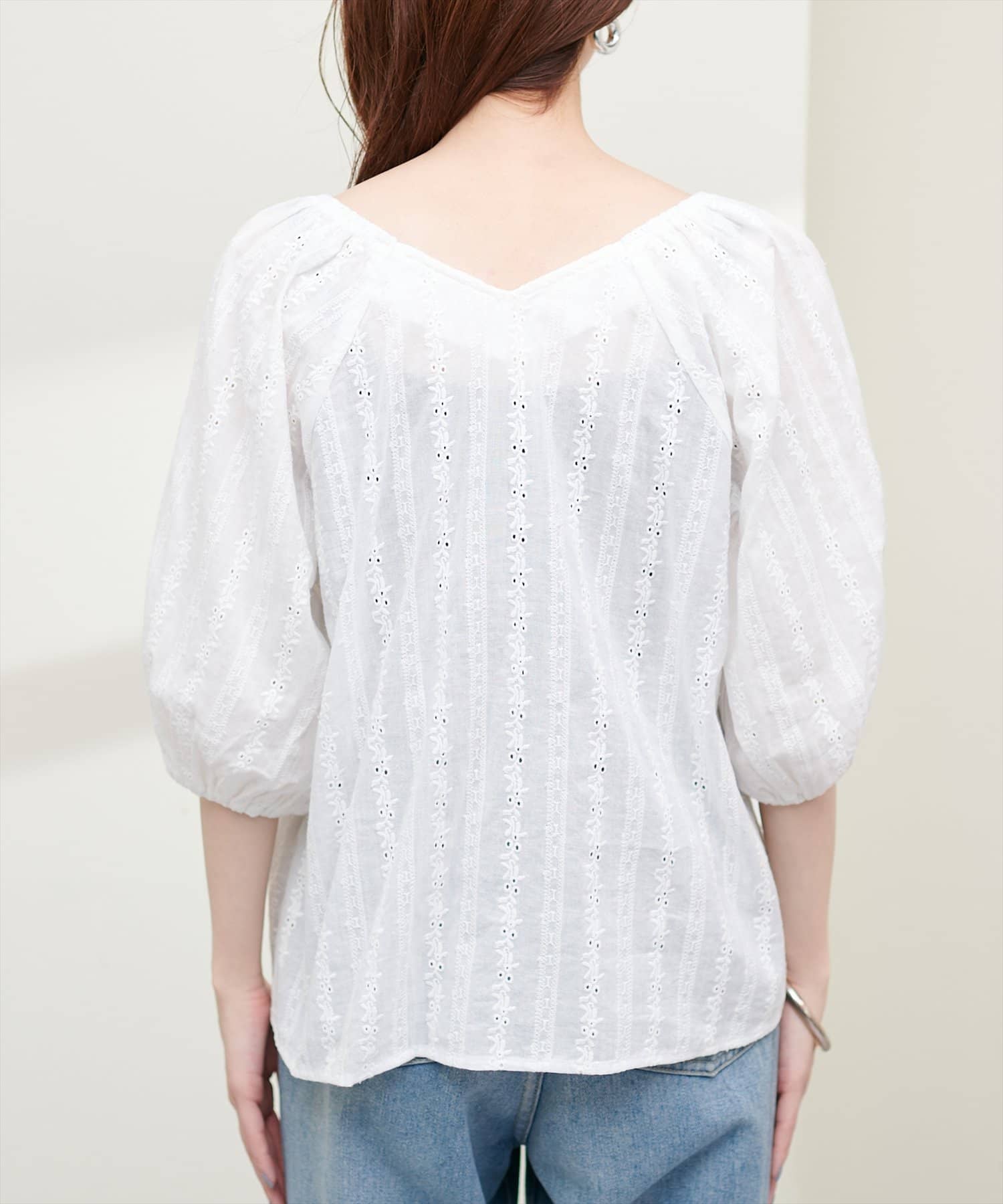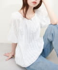 トレンドのボリューム袖に、コットン100%のレースを使用した華やかな1枚。