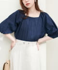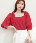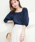 ネックラインはスクエアデザインで、デコルテ周りを美しく見せてくれます。